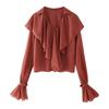 Camisa de manga larga con volantes y rayas de Amazon para mujer, disponible en stock transfronterizo, para primavera 2024, para Europa y América.