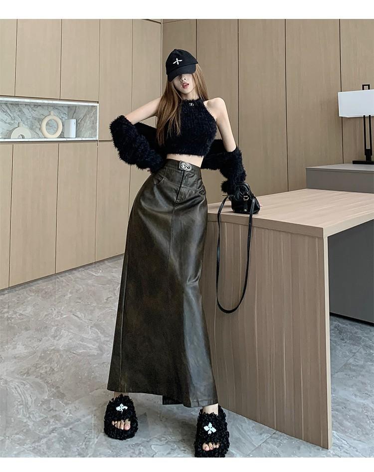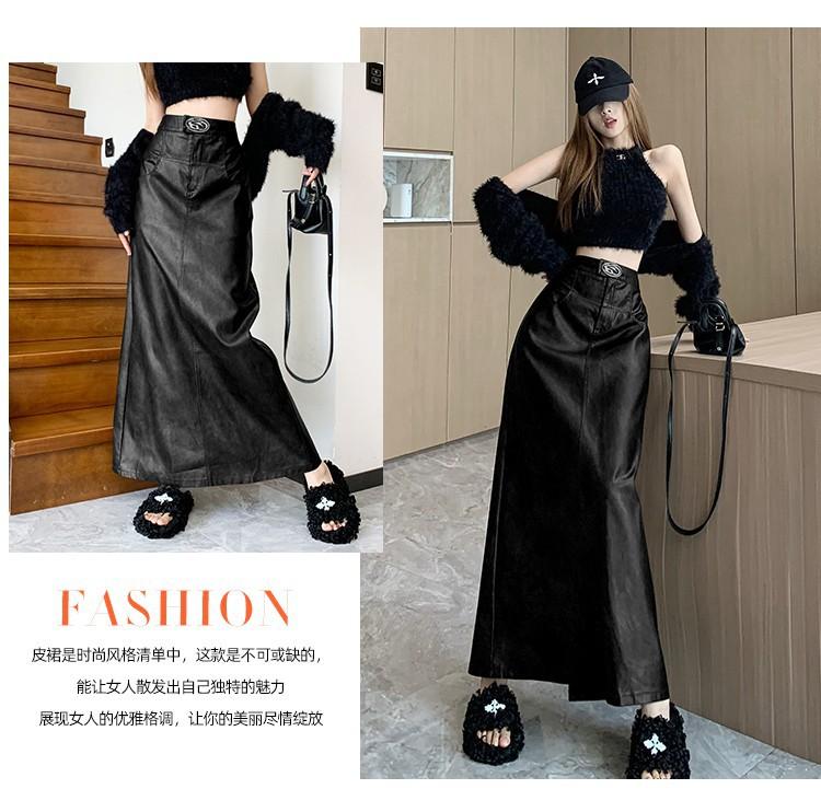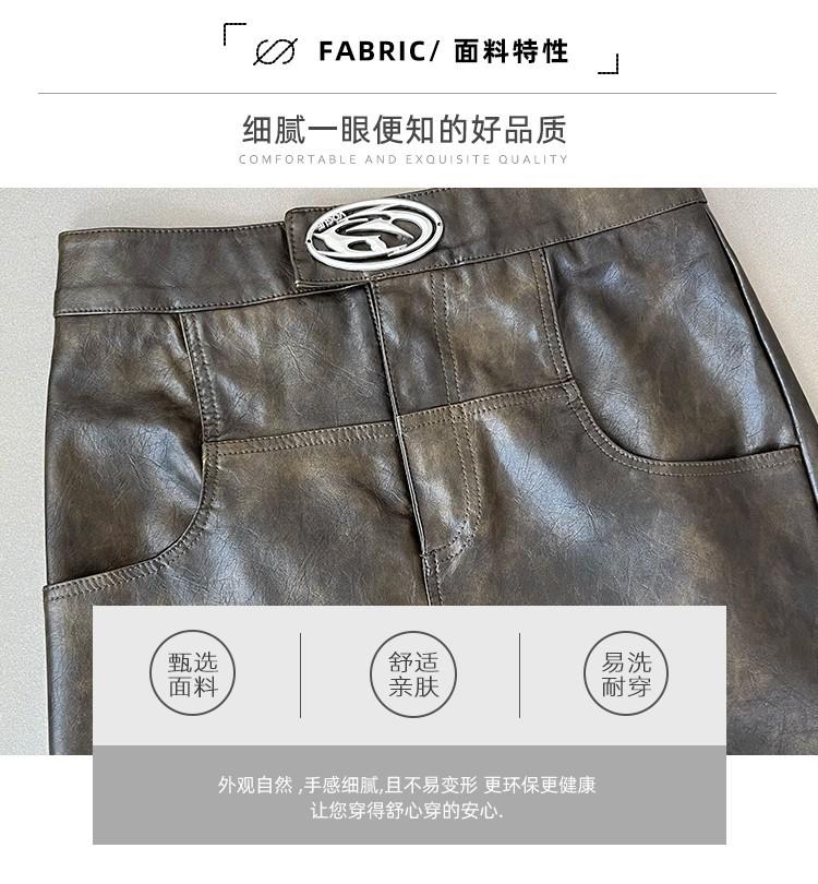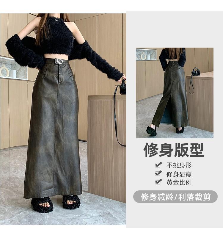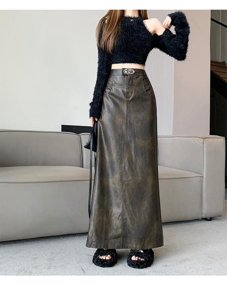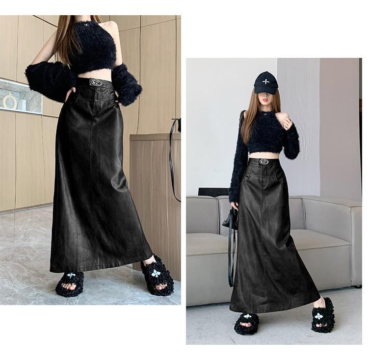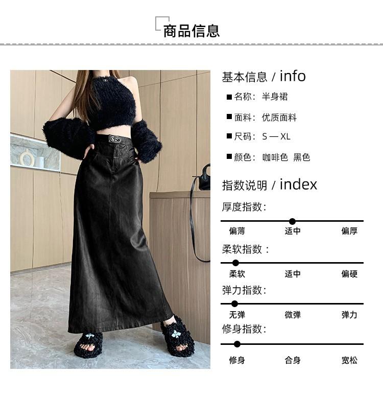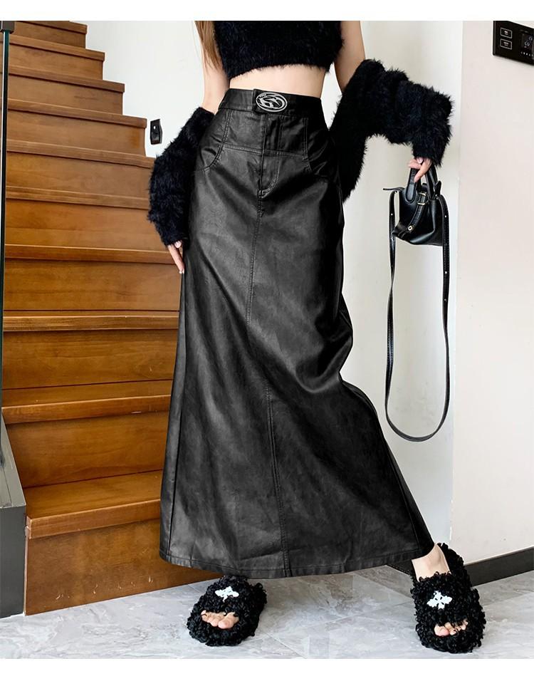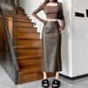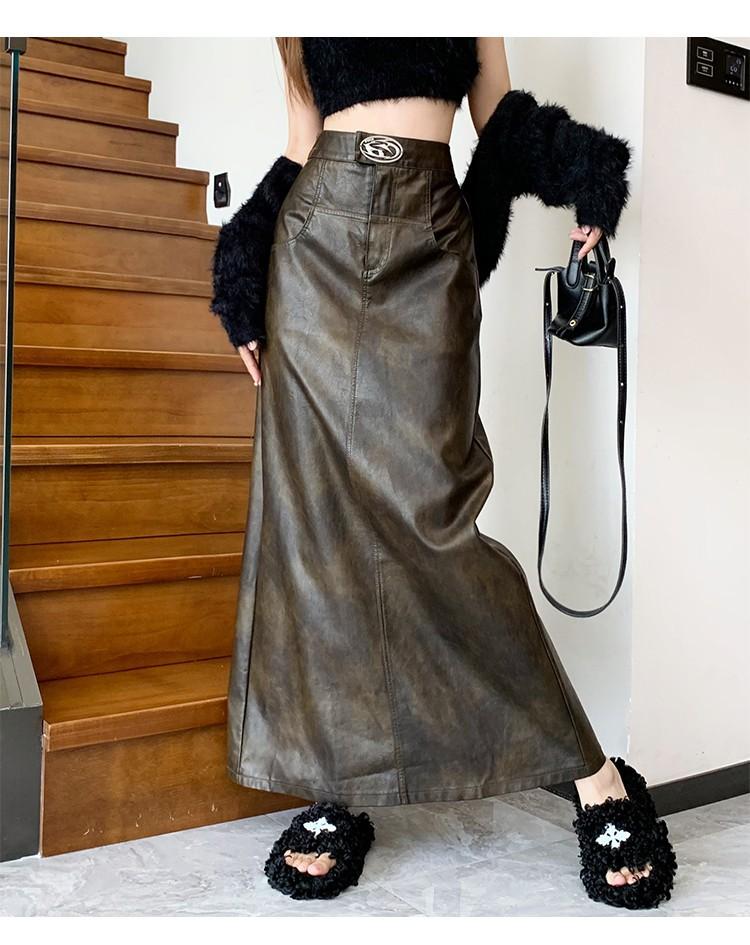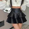 Falda de cuero PU de diseño retro de chica caliente americana, ropa de mujer transfronteriza, otoño nuevo, falda de temperamento adelgazante de cintura alta