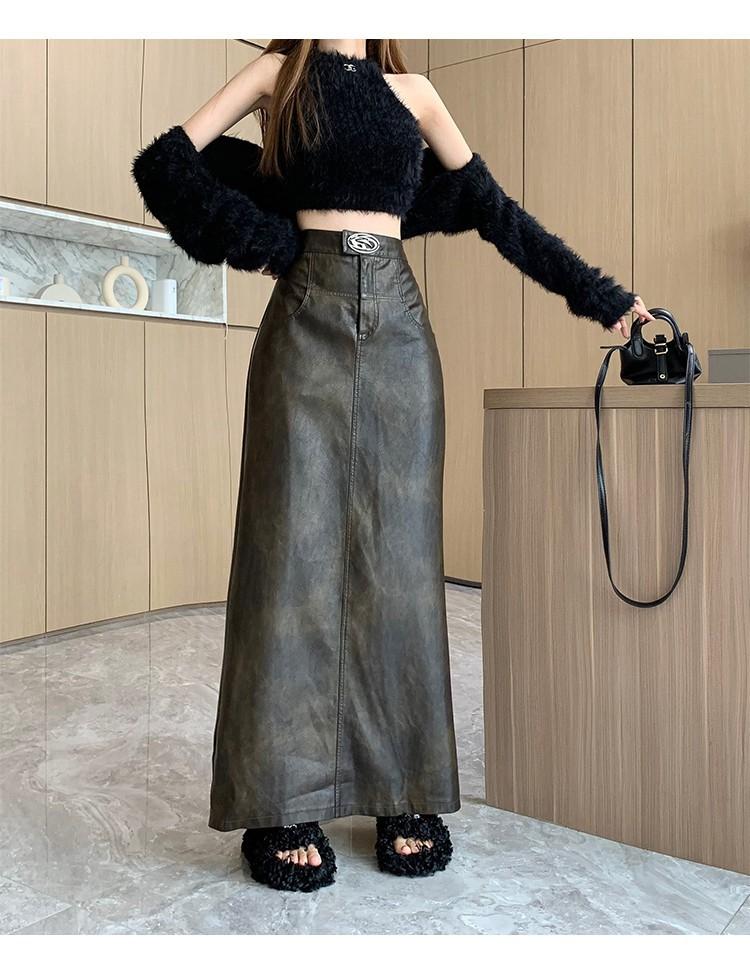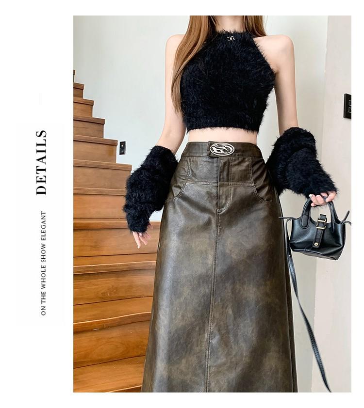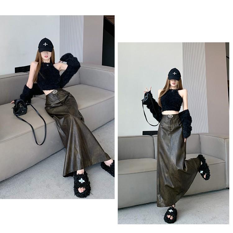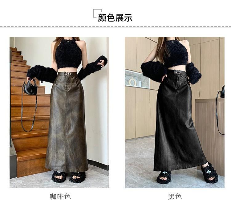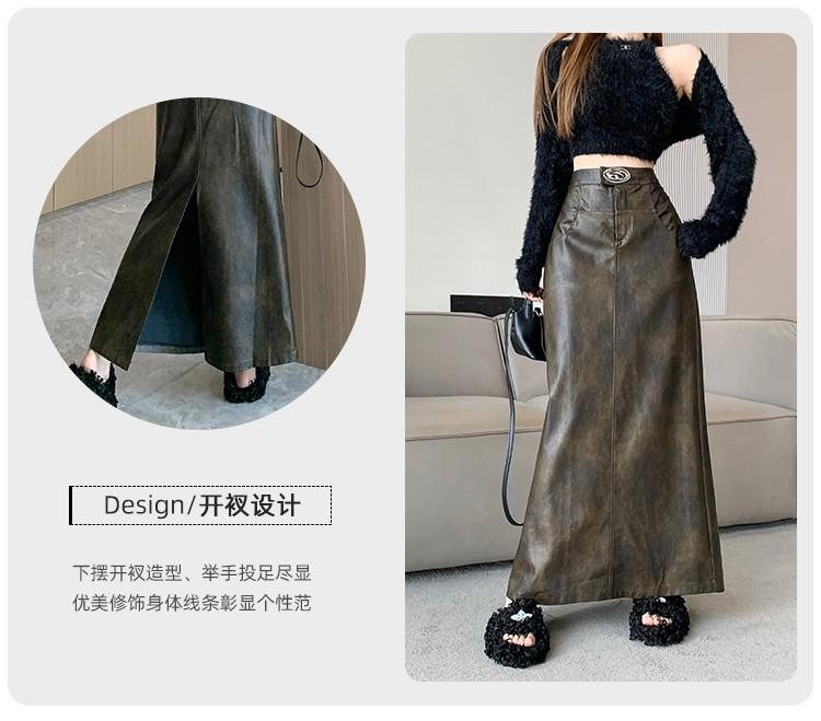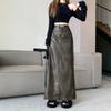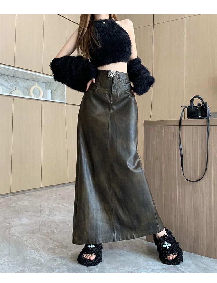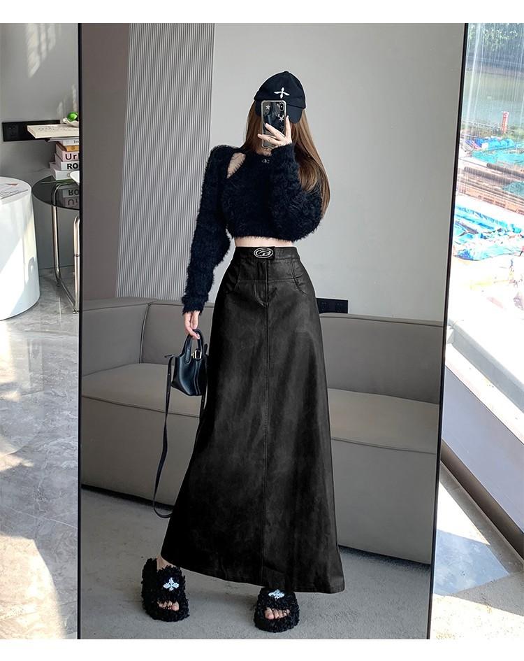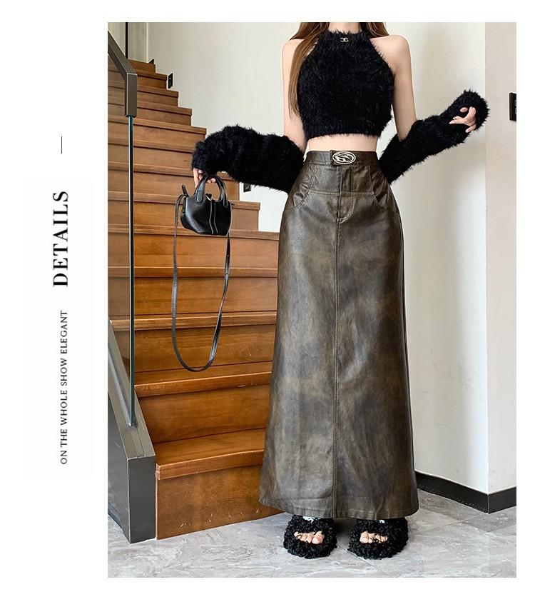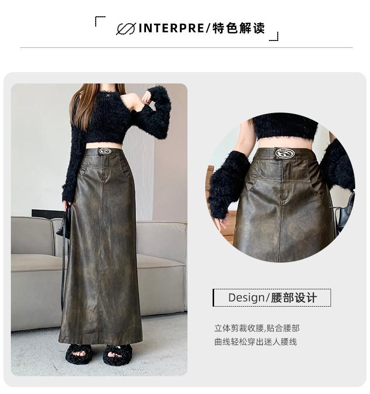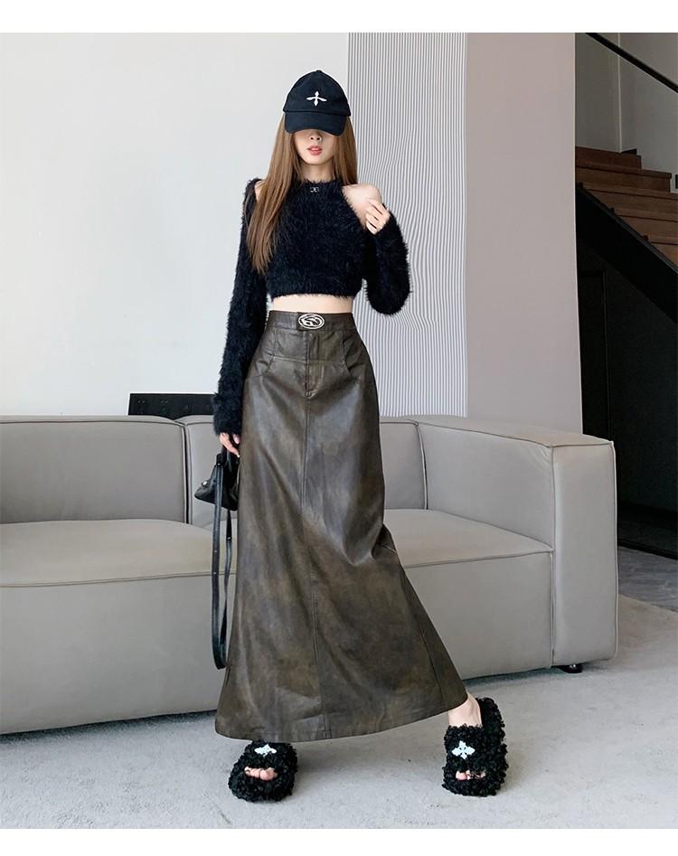 Falda de cuero PU de diseño retro de chica caliente americana, ropa de mujer transfronteriza, otoño nuevo, falda de temperamento adelgazante de cintura alta