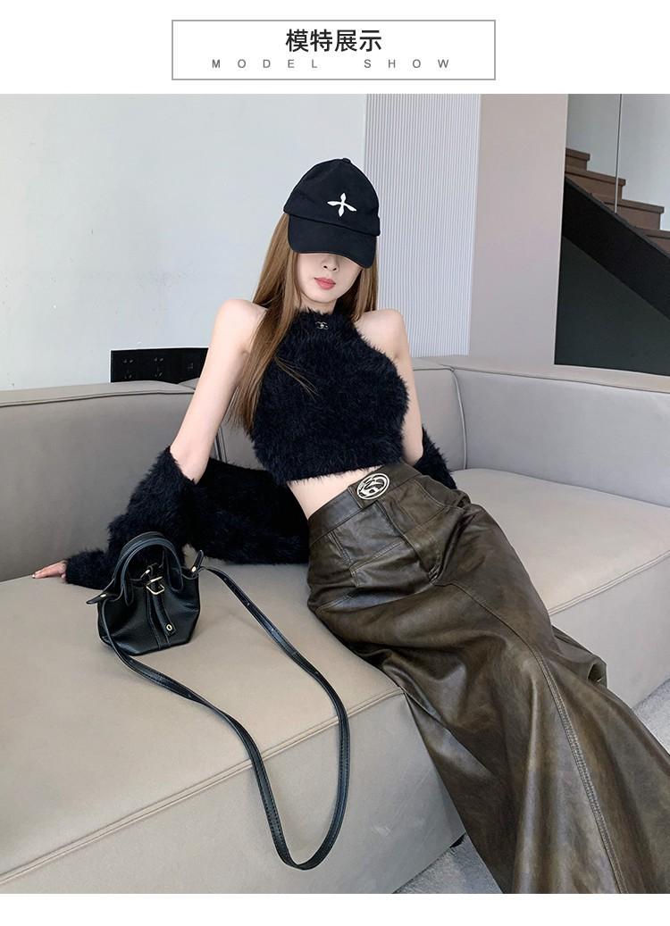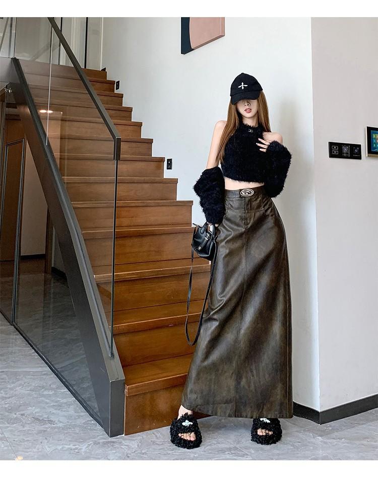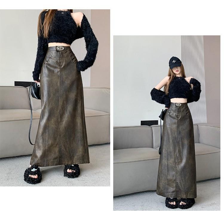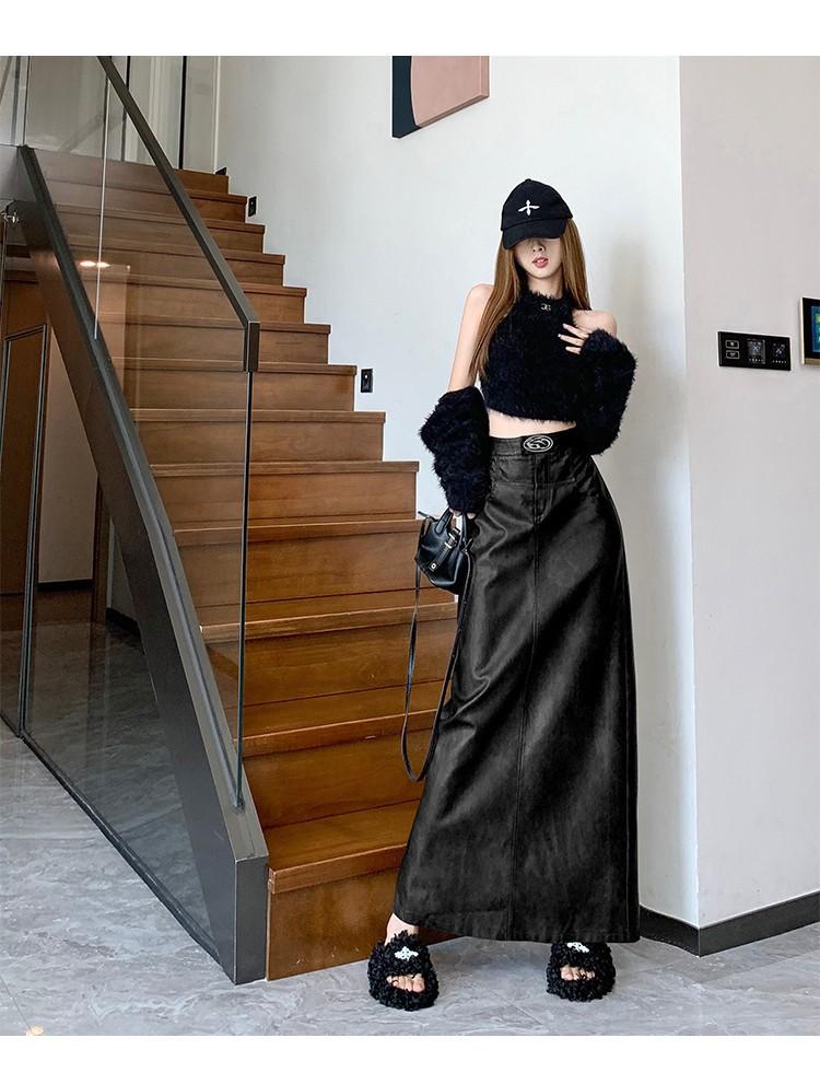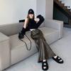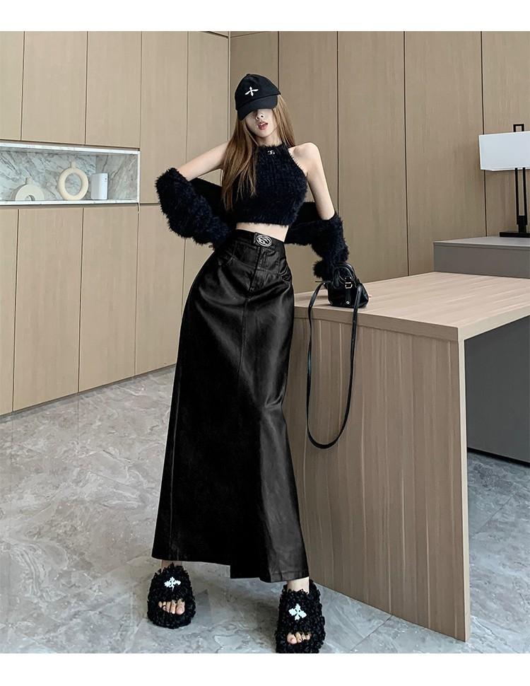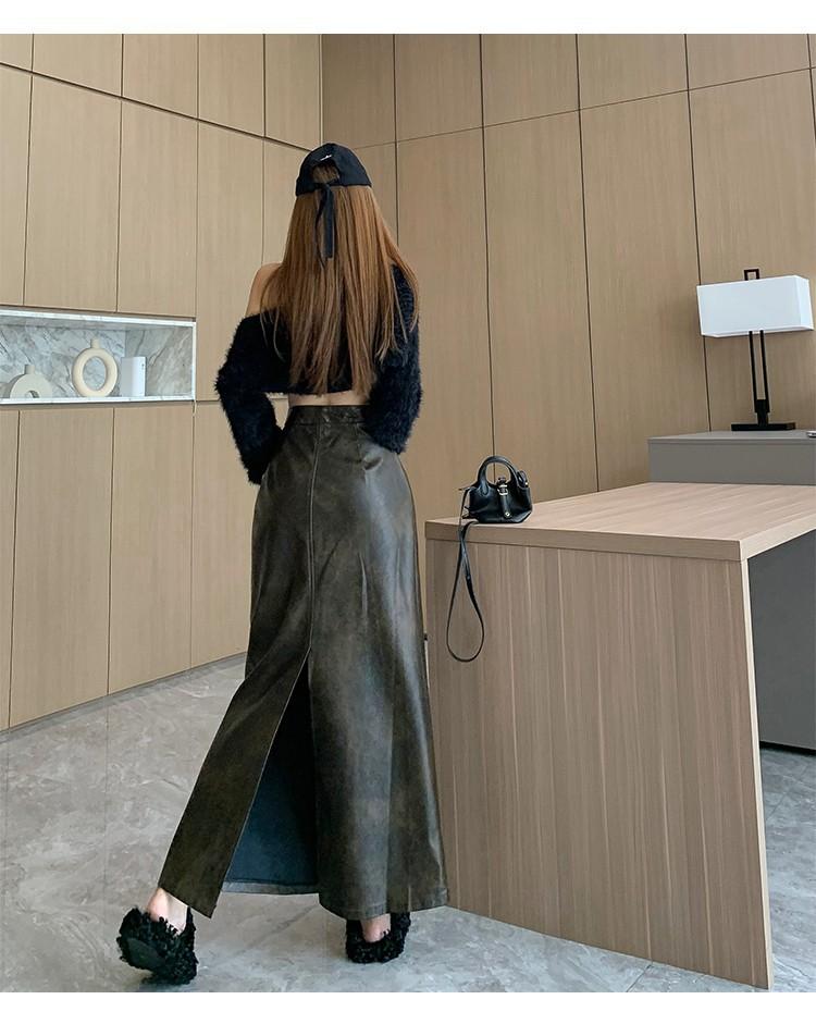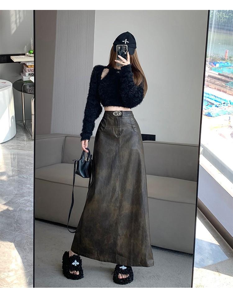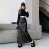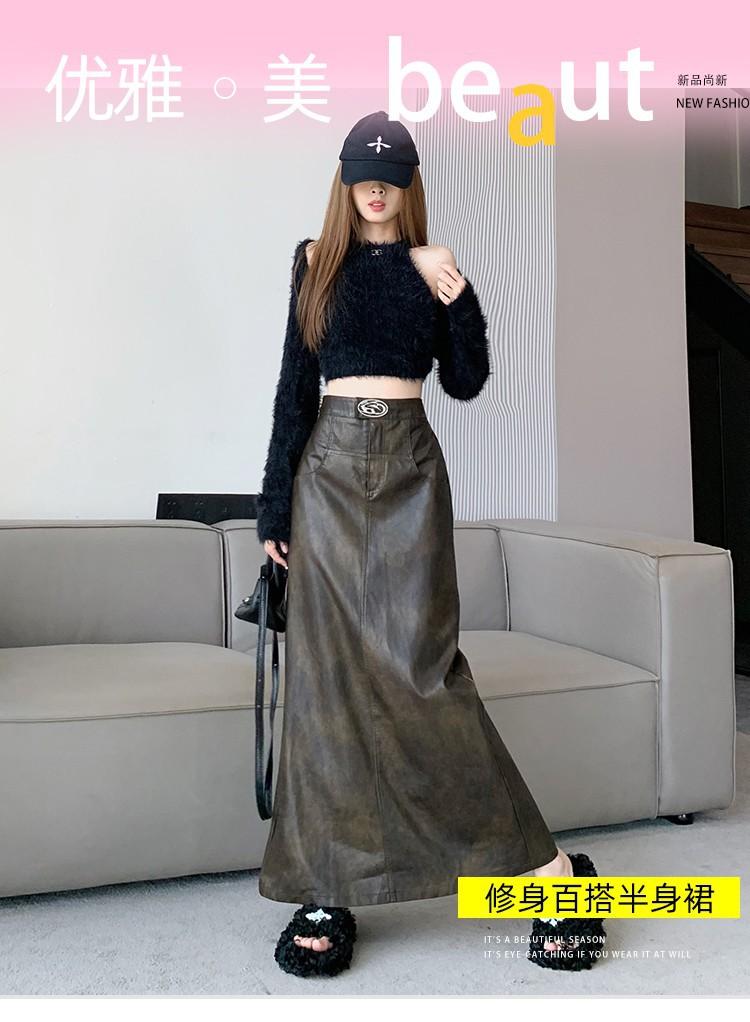 Falda de cuero PU de diseño retro de chica caliente americana, ropa de mujer transfronteriza, otoño nuevo, falda de temperamento adelgazante de cintura alta
