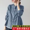 Camisa Nueva Estilo Primavera y Verano 2026 Cuello Alto Talla Grande Algodón y Lino Manga Larga Holgada para Mujer