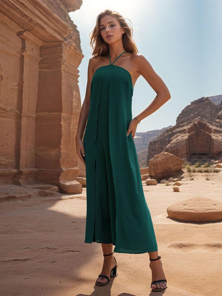 Pantalones de verano para mujer, de color sólido, con tirantes largos, finos, de Amazon Independent Station, comercio exterior, 2024, nuevos, europeos y americanos