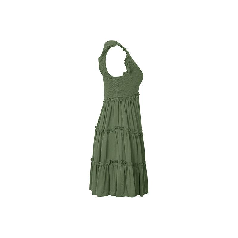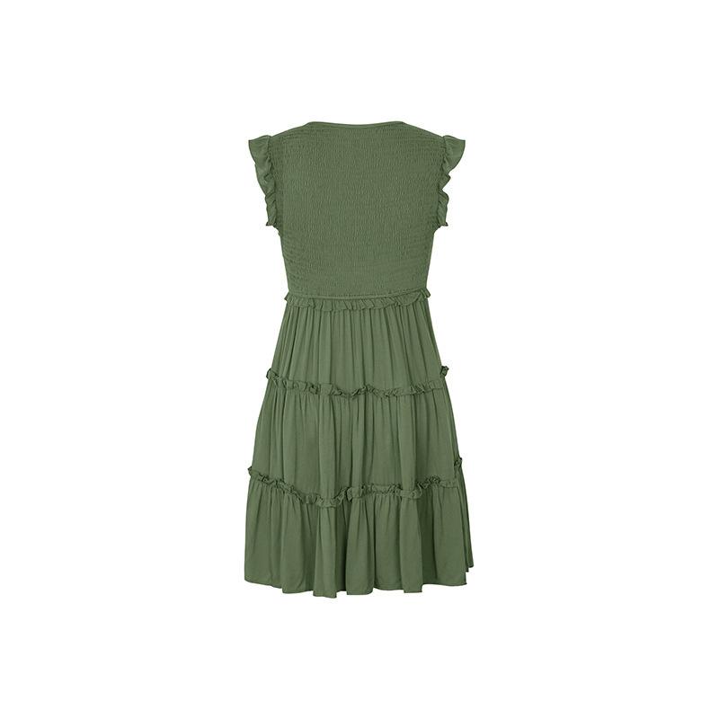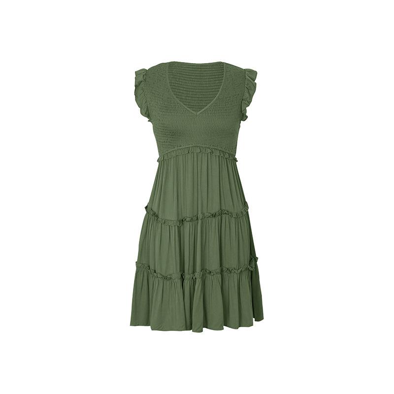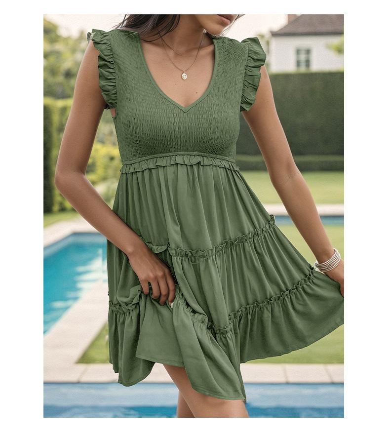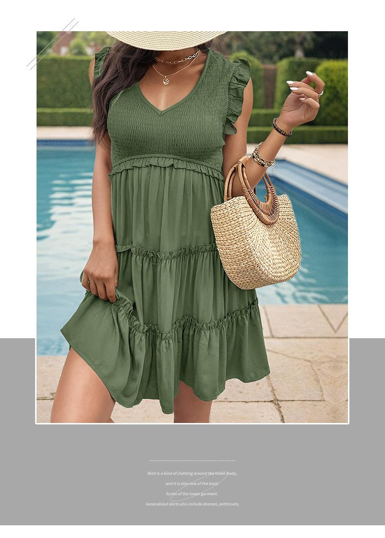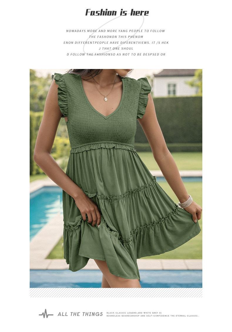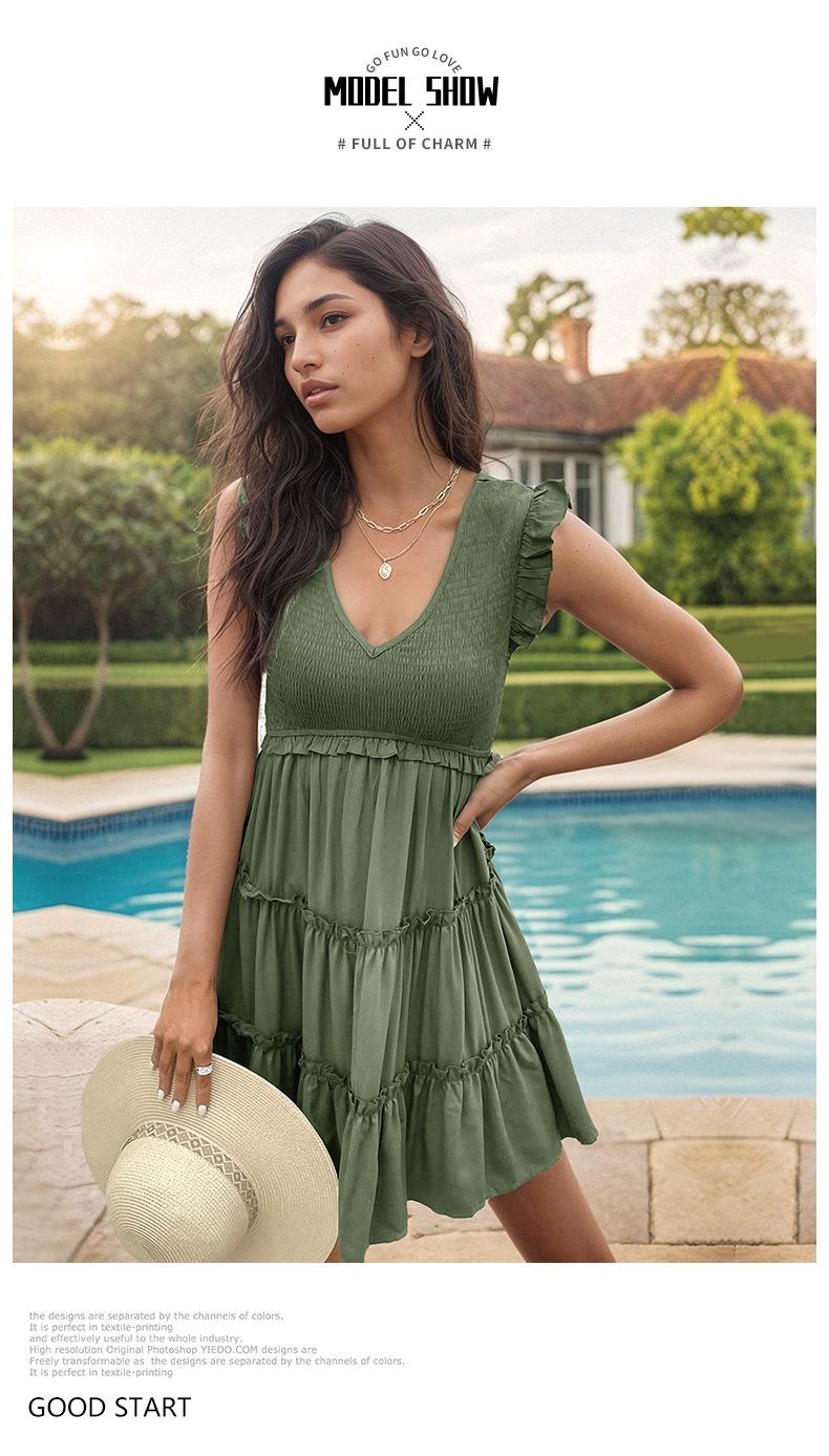 Vestido con cuello en V y volantes de color sólido transfronterizo para mujer europea y americana de Amazon Independent Station Foreign Trade 2024