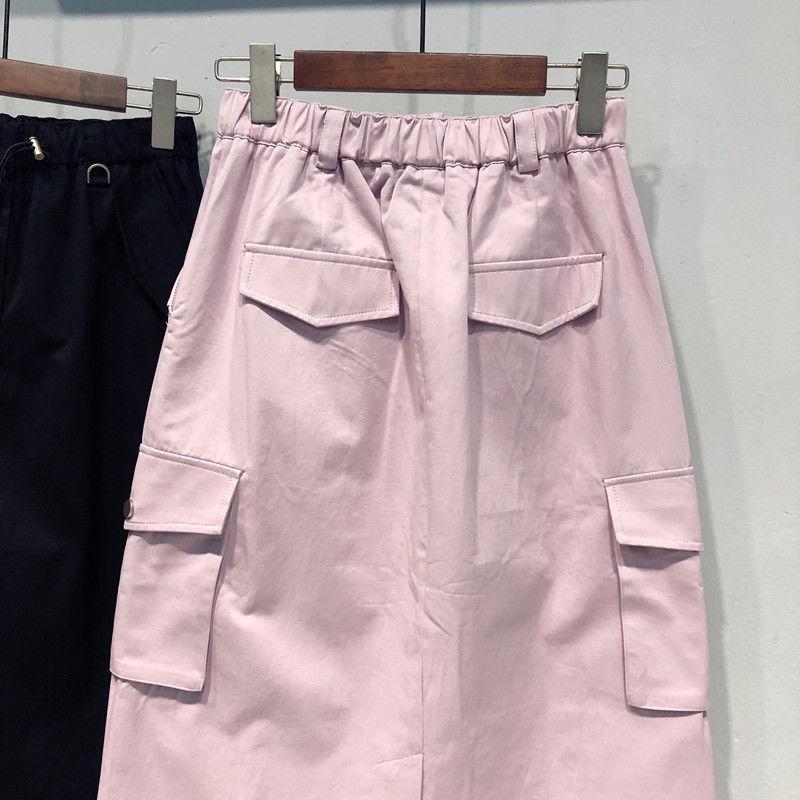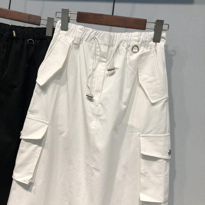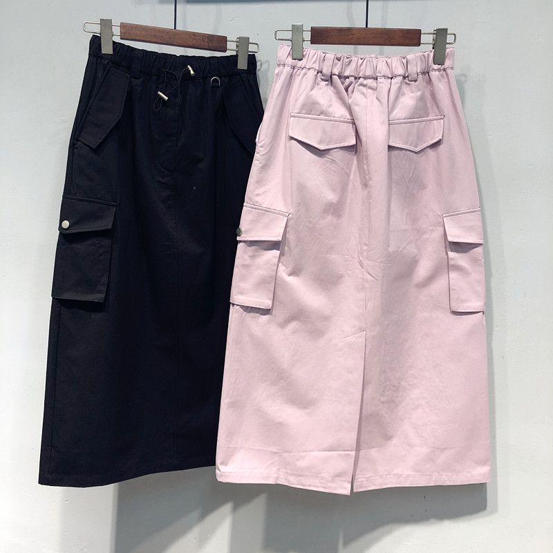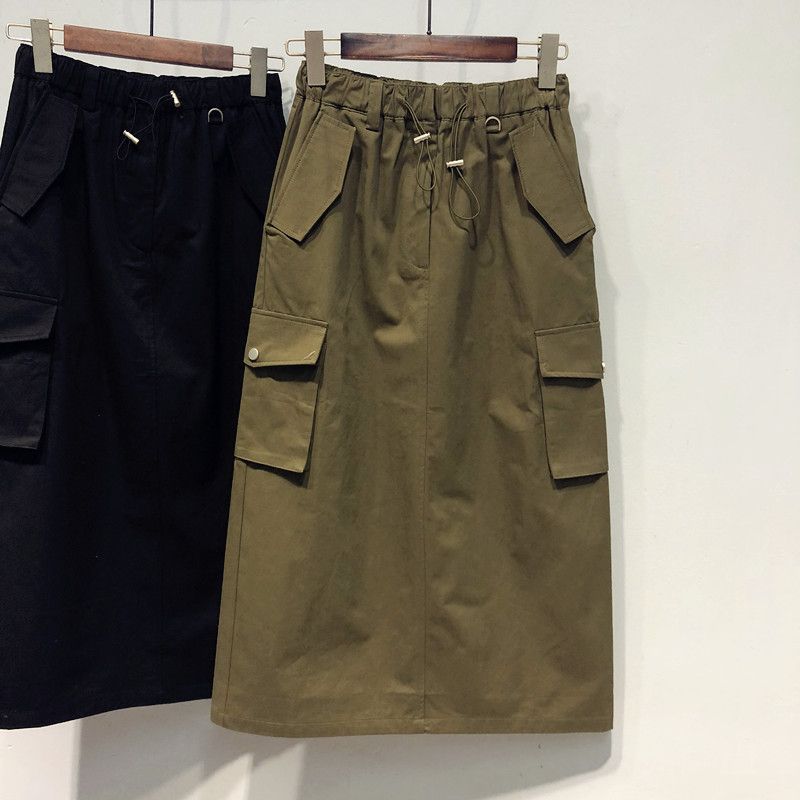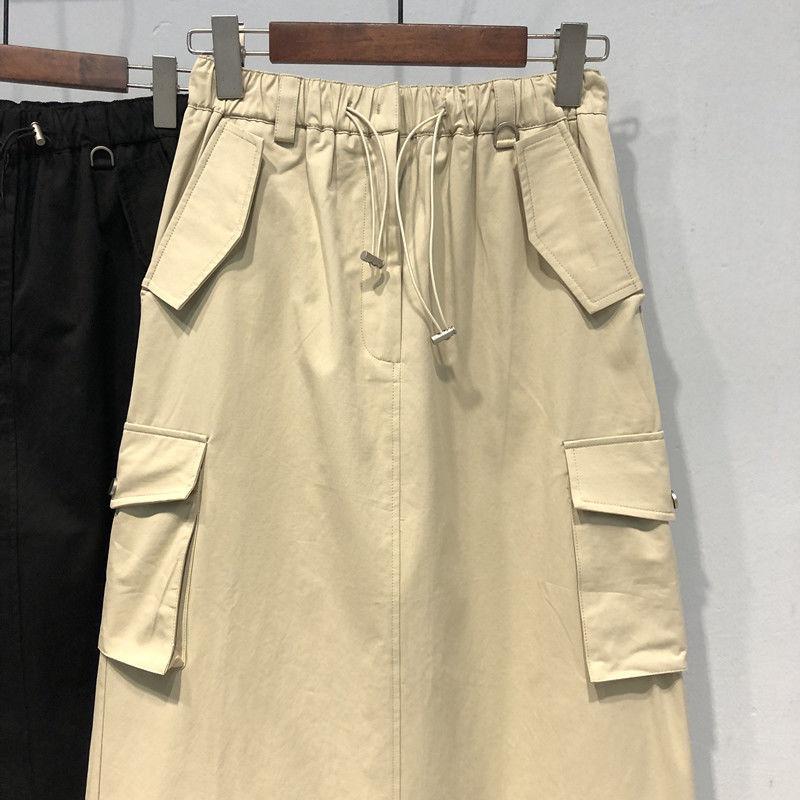 Falda holgada de cintura alta con abertura hasta la rodilla para principios de otoño, talla extra grande, estilo coreano, falda de peto acampanada para mujer