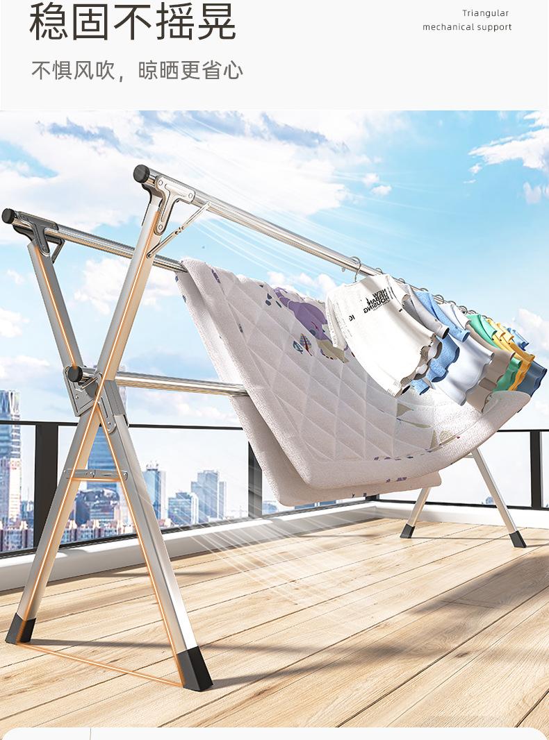 Tendedero plegable de pie para interiores para el hogar, balcón, dormitorio, acero inoxidable, para exteriores, fresco, tipo varilla telescópica, artefacto para secar edredones