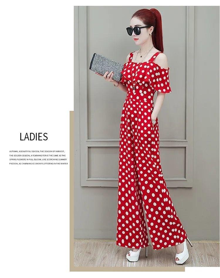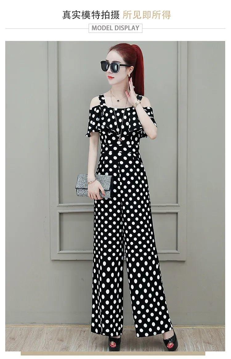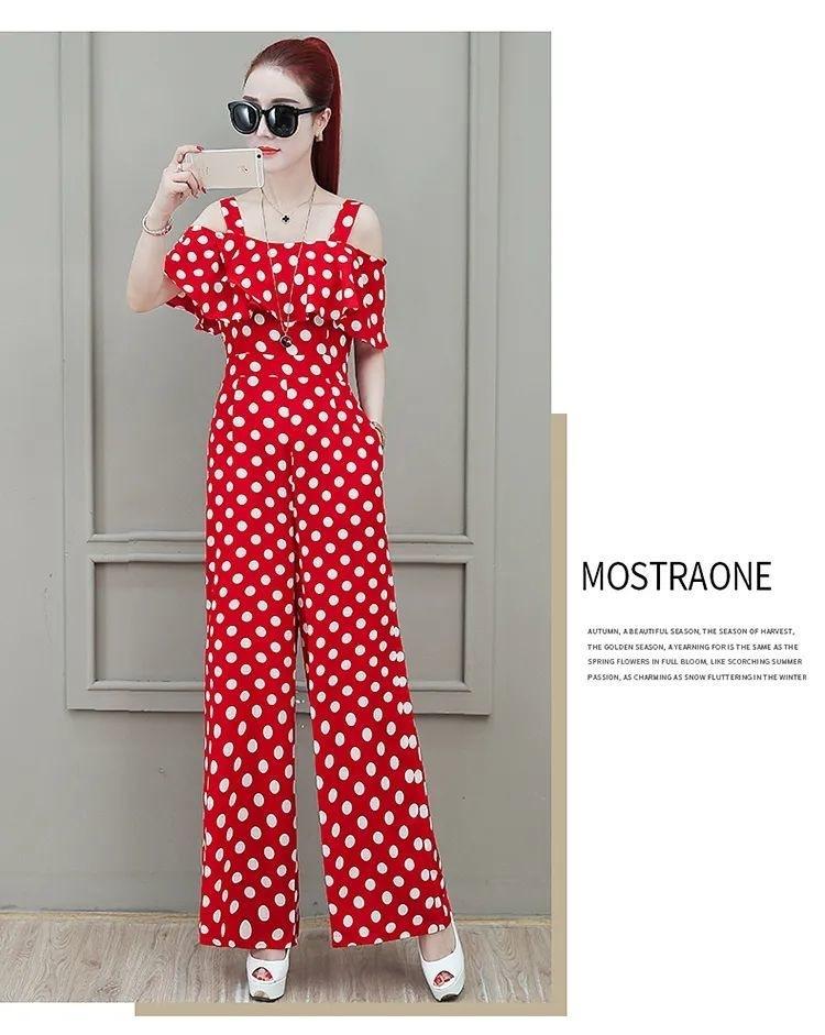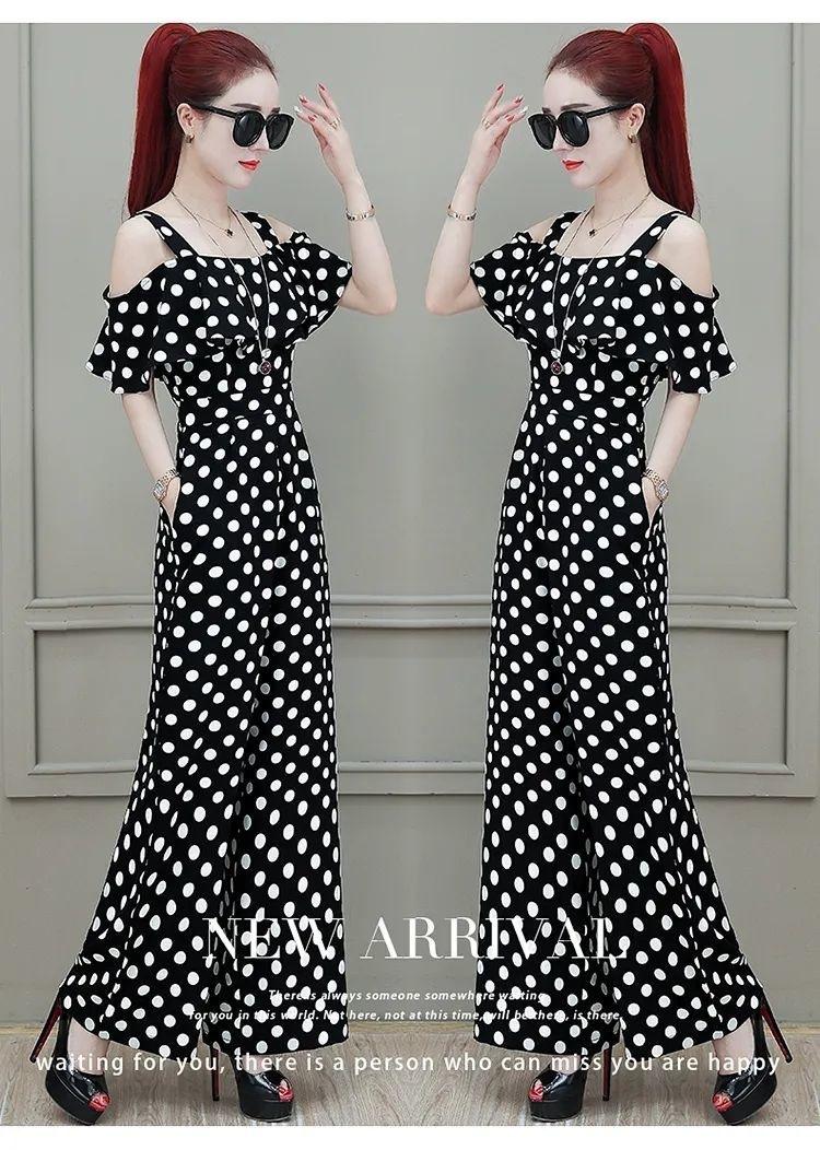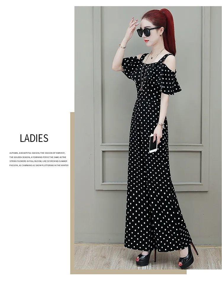Mono holgado de tirantes de cintura alta para mujer Verano 2024 Mono de chifón con hombros descubiertos Pantalones de lunares de pierna ancha Casual