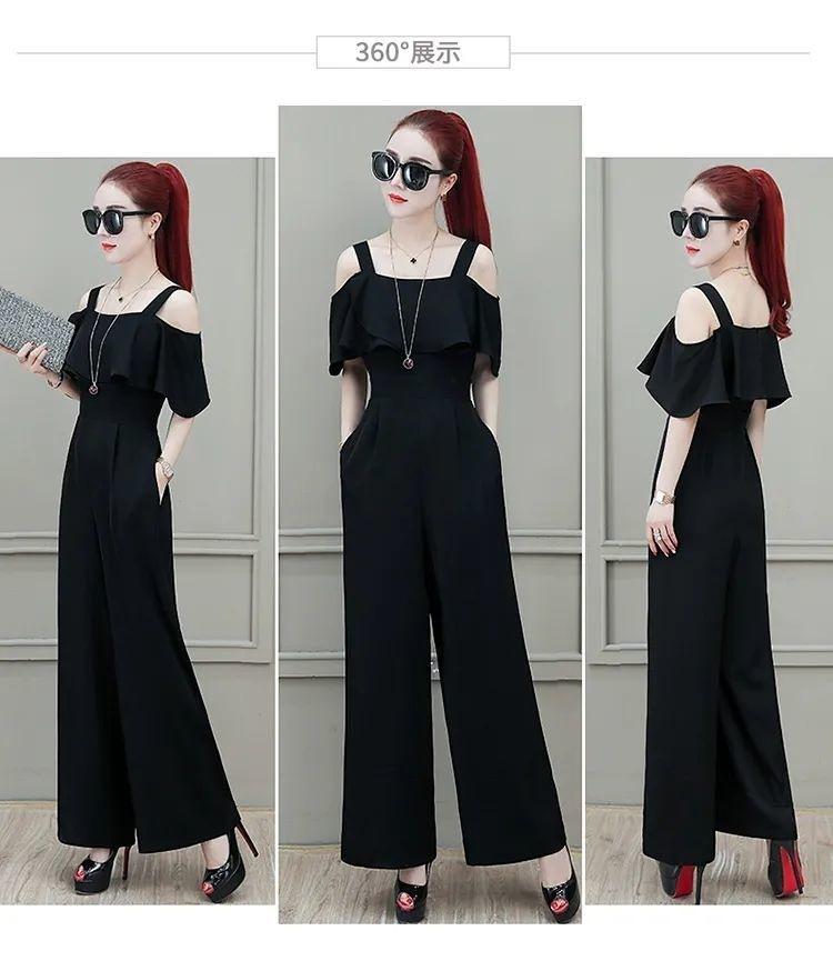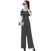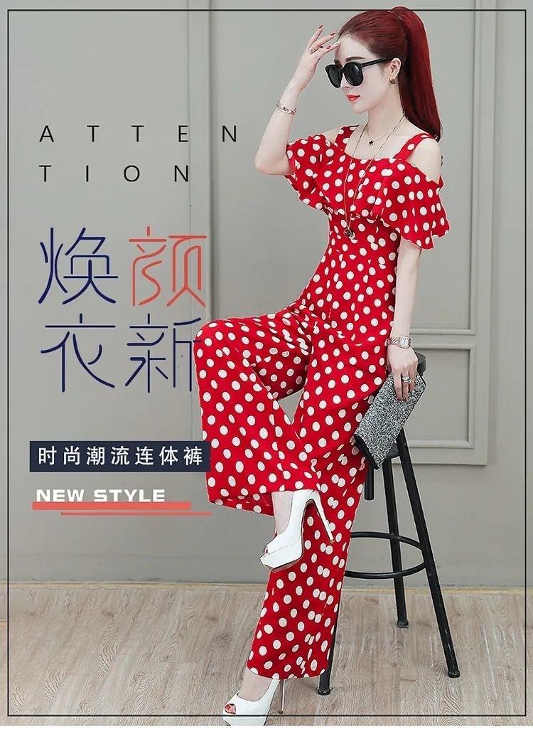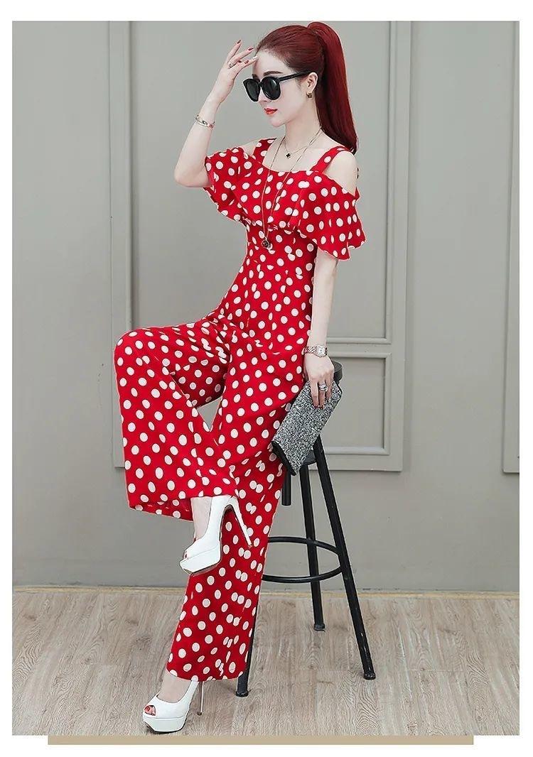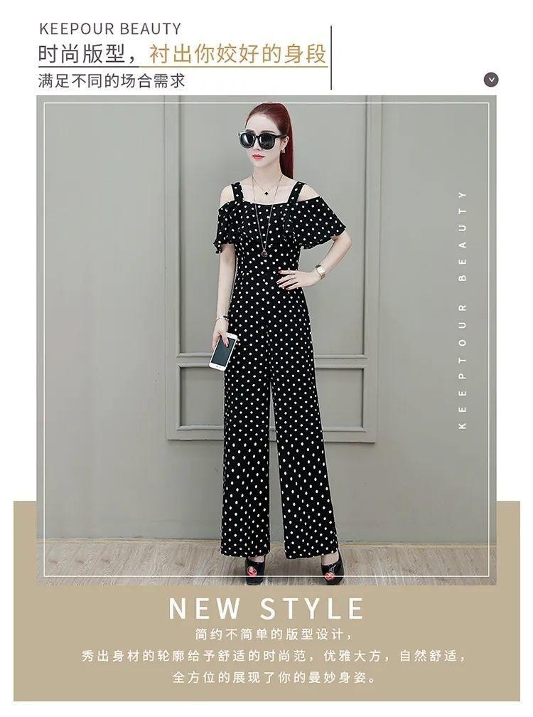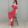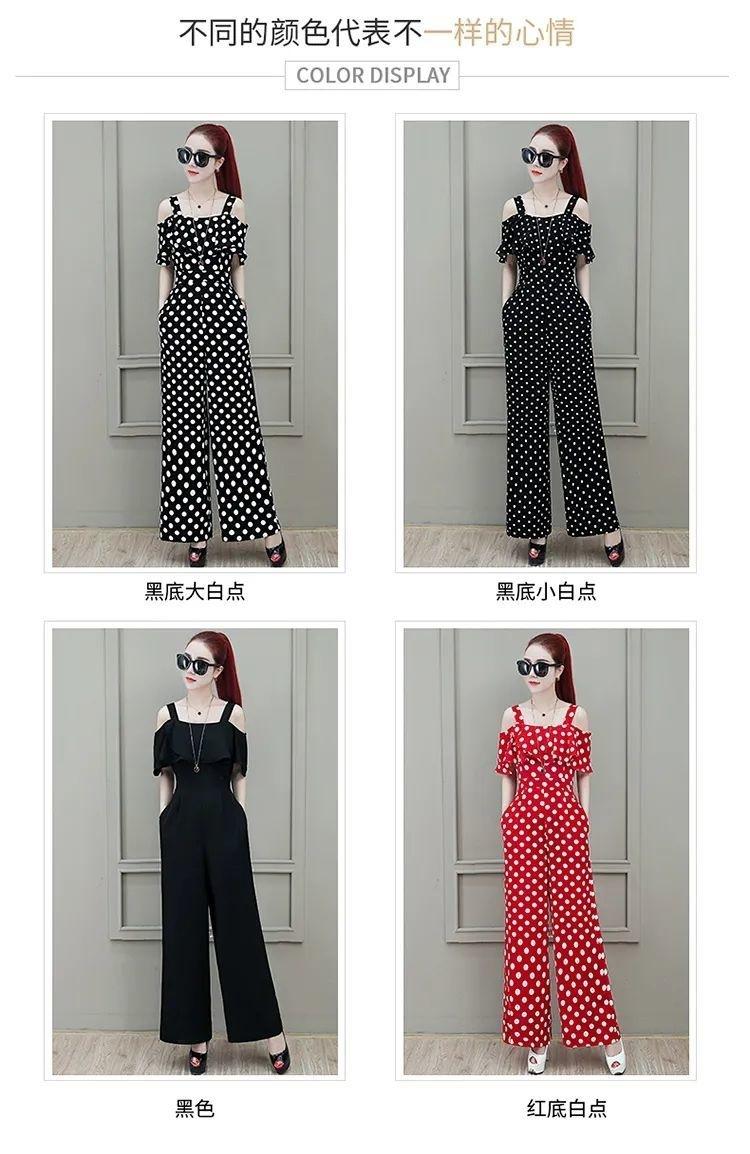 Mono holgado de tirantes de cintura alta para mujer Verano 2024 Mono de chifón con hombros descubiertos Pantalones de lunares de pierna ancha Casual