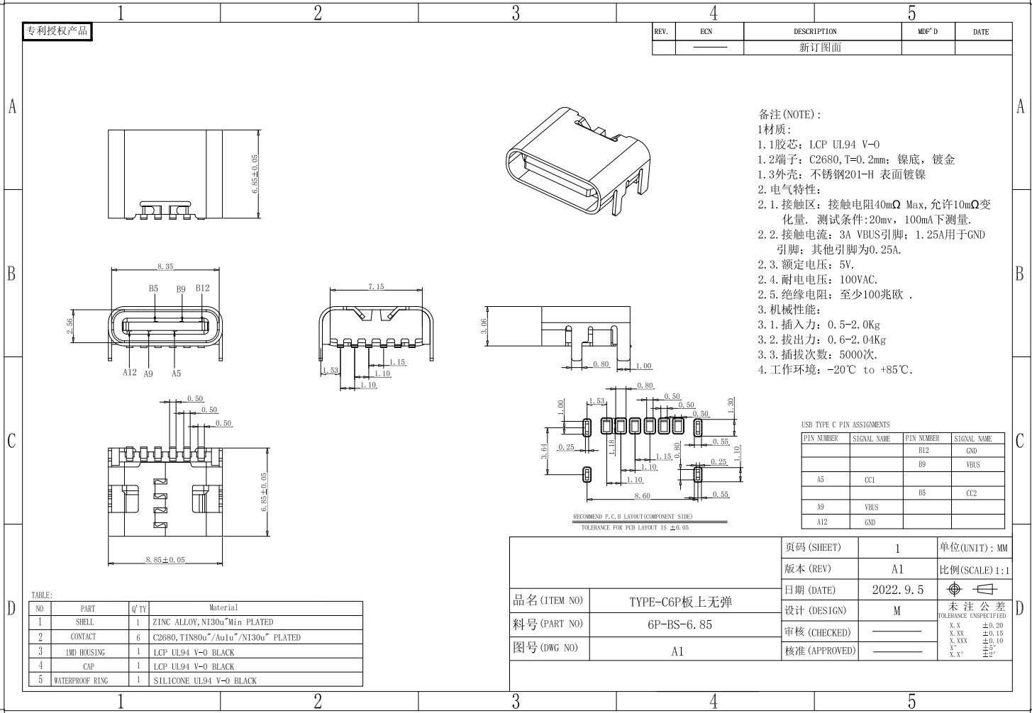 Base Hembra Tipo C Impermeable 16 Pines Conector Macho de Cuatro Pines para Montaje en Placa Grado de Impermeabilidad Ipx7 Conector USB 3.1 Impermeable