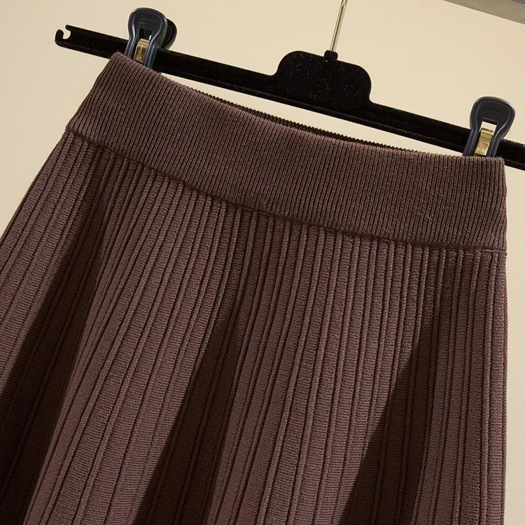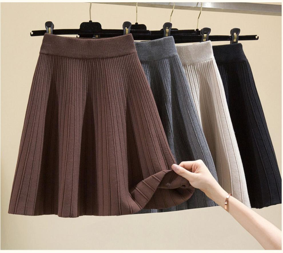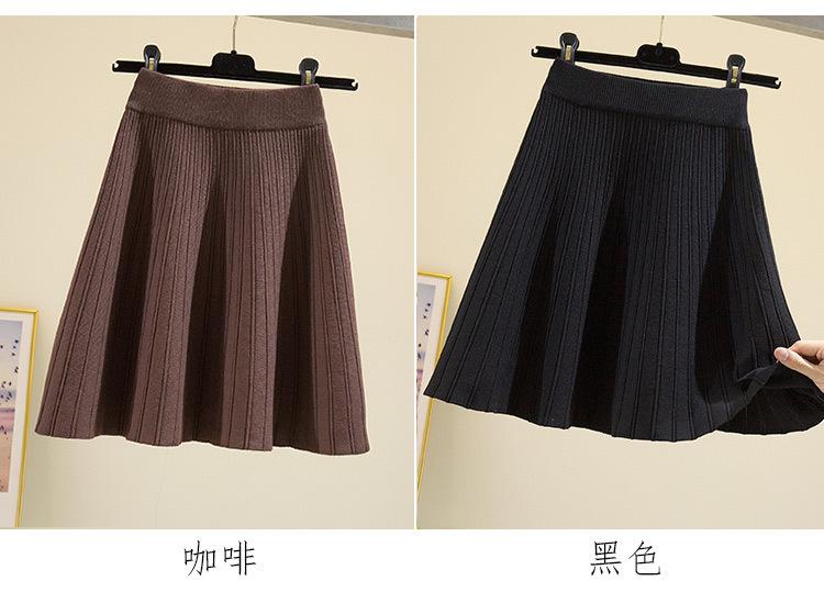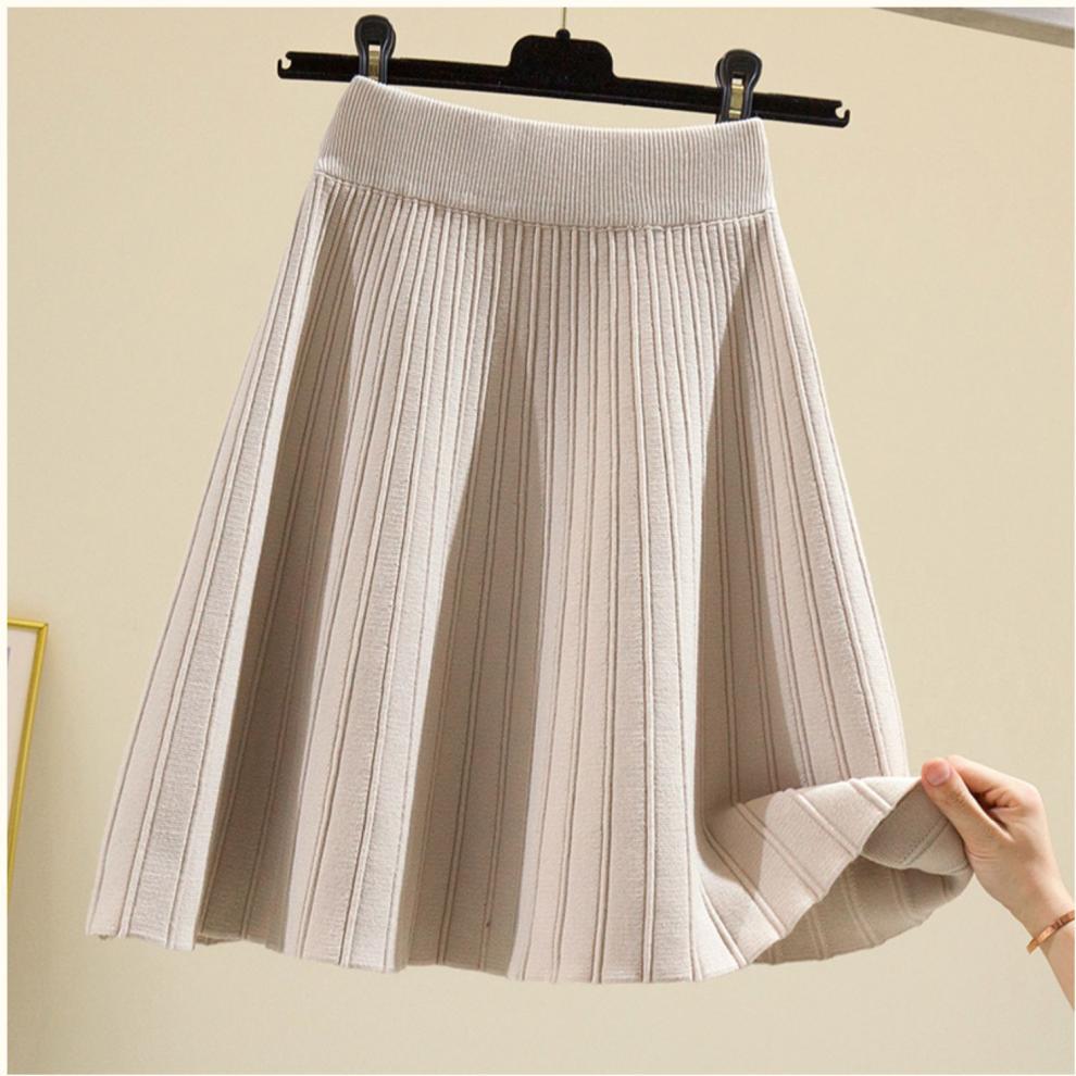 Falda Tejida Paraguas Falda Cintura Alta Otoño e Invierno Falda de Mujer Gran Vuelo Pequeña Falda Holgada Cubre Cintura y Cadera