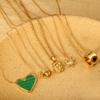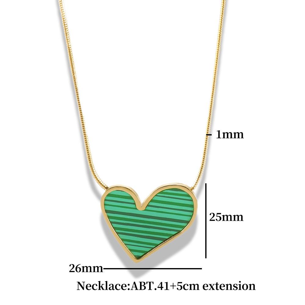 Double heart titanium steel necklace gold, Love gold + malachite green, Love gold + black, Gold drip glue peac...