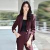 Rojo vino Chaqueta de Traje para Mujer Manga Larga Primavera y Otoño 2024 Nuevo Sentido de Alta Gama Traje Pequeño Casual Ajustado