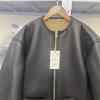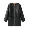 Gabardina de invierno transfronteriza de manga larga negra para mujer, nueva moda de doble cara con cuello redondo y holgado de Europa y Estados Unidos.