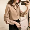 Camisa sencilla de primavera para mujer, blusa de gasa de manga larga para mujer, camisa básica de estilo coreano de color liso.