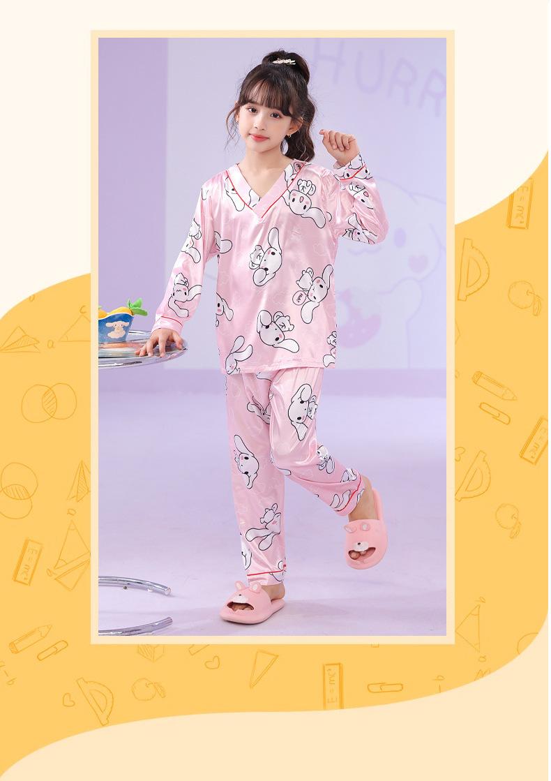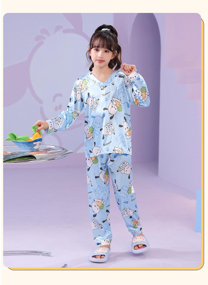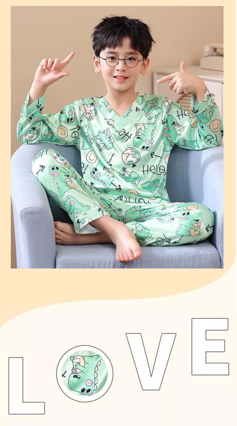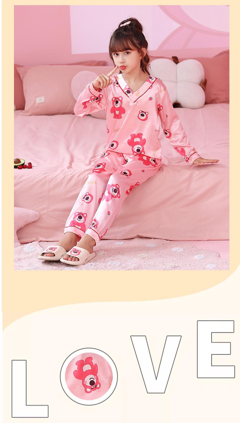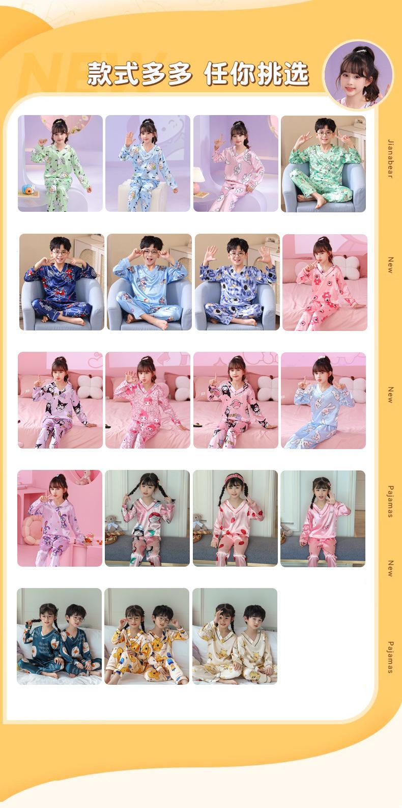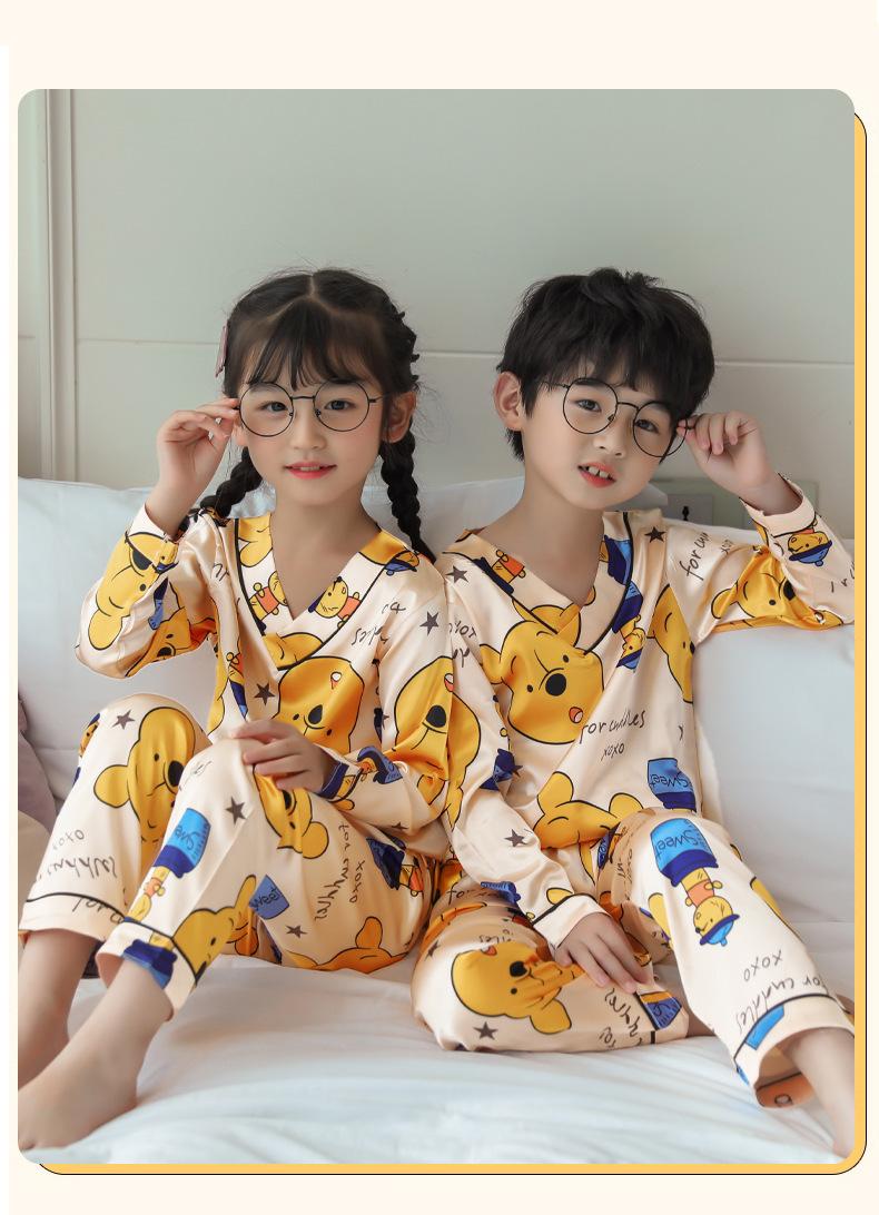 2025 Nuevo Primavera y Otoño Cuello en V Seda de Hielo Manga Larga Pijamas para Niños Niños y Niñas Dibujos Animados Traje Ropa de Casa Verano