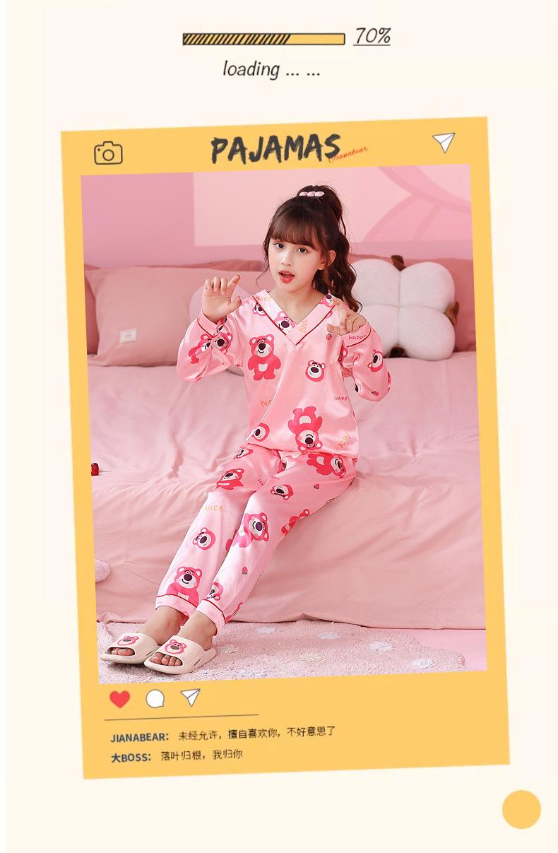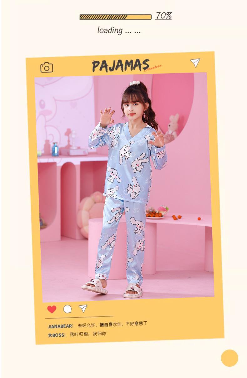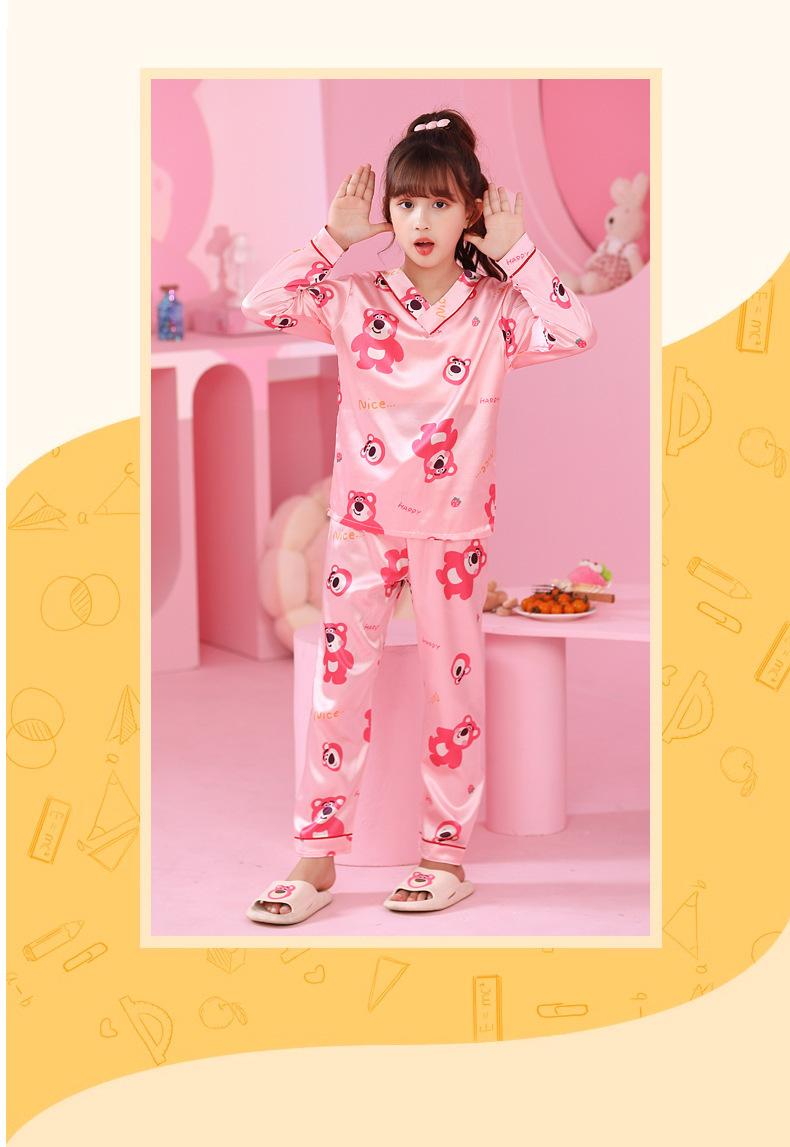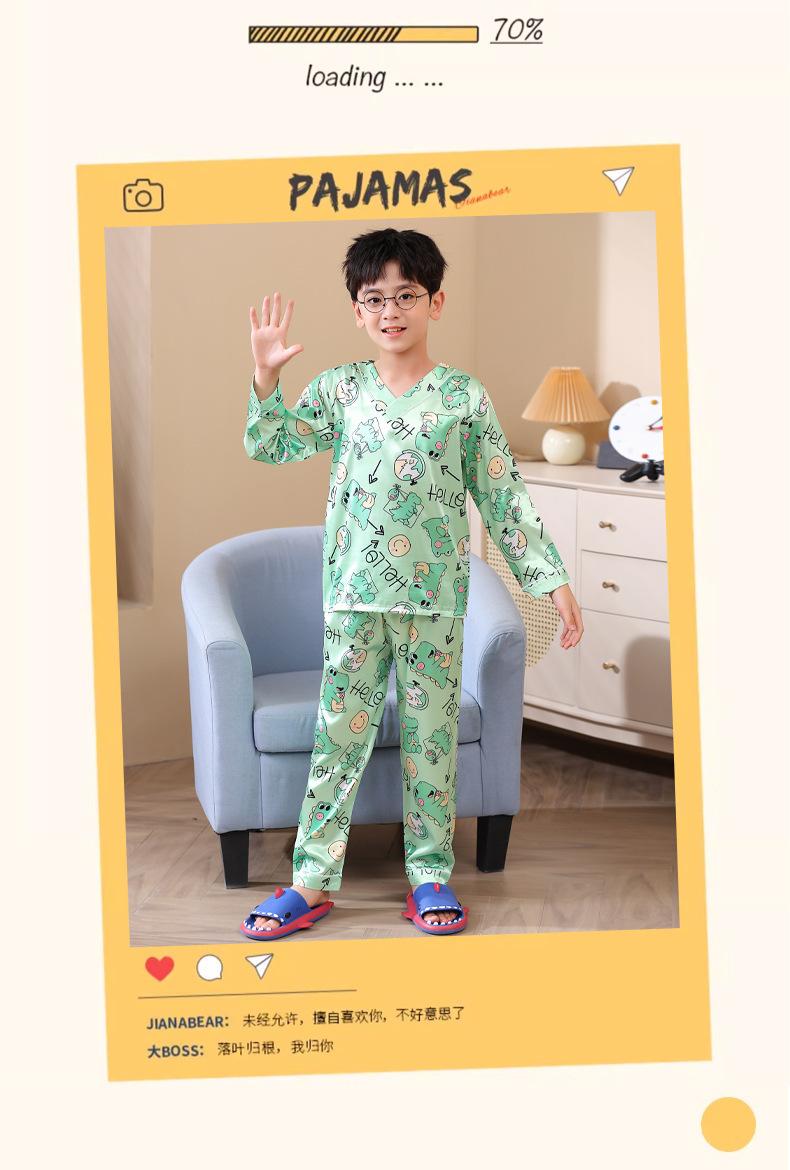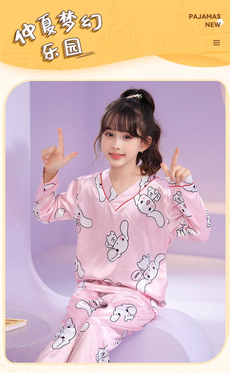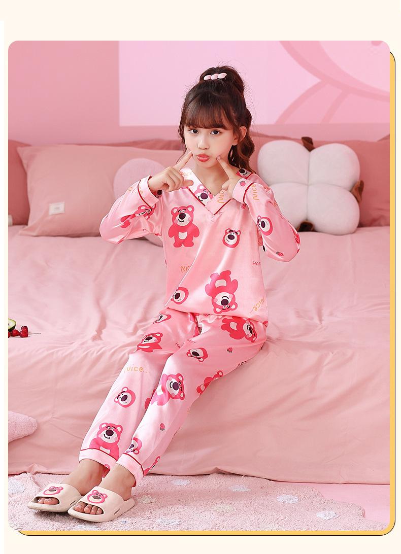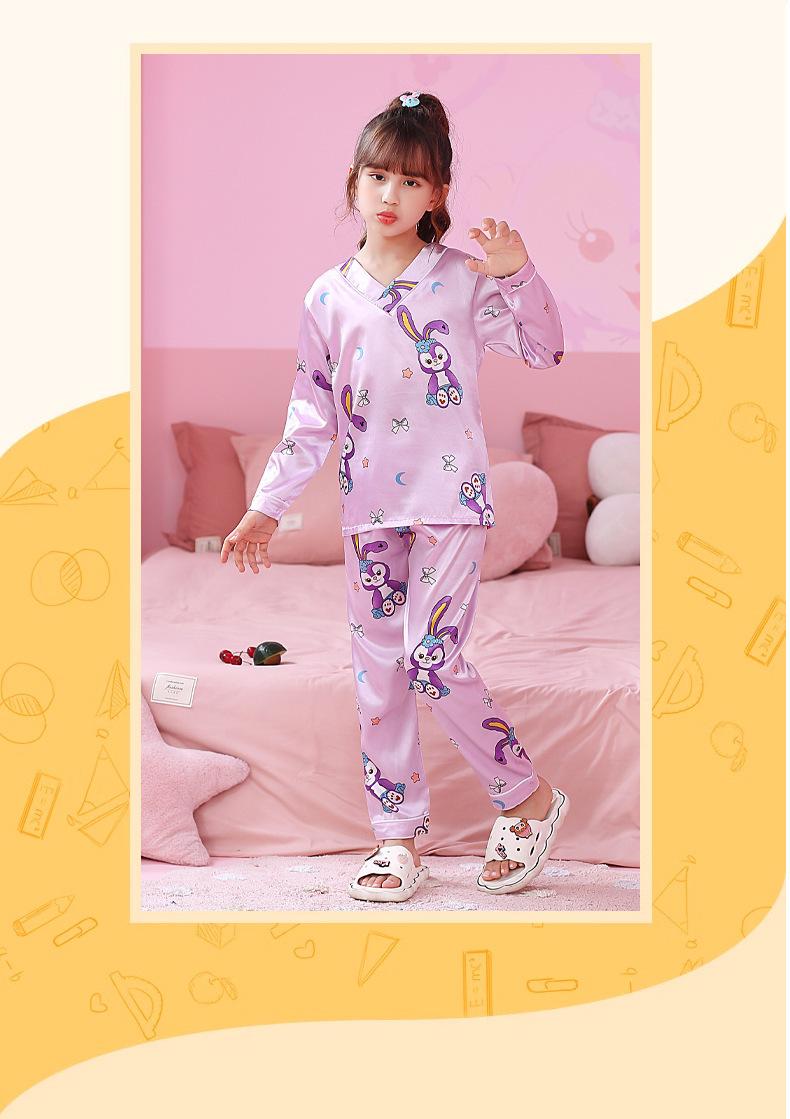 2025 Nuevo Primavera y Otoño Cuello en V Seda de Hielo Manga Larga Pijamas para Niños Niños y Niñas Dibujos Animados Traje Ropa de Casa Verano