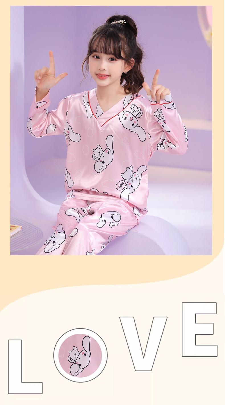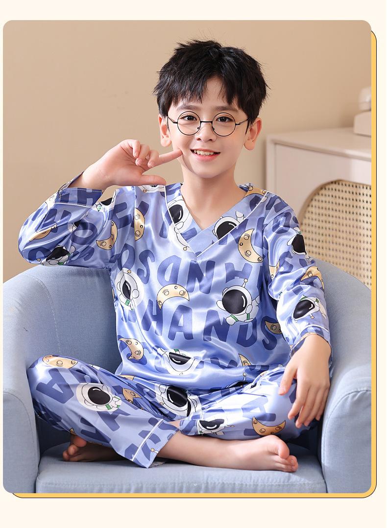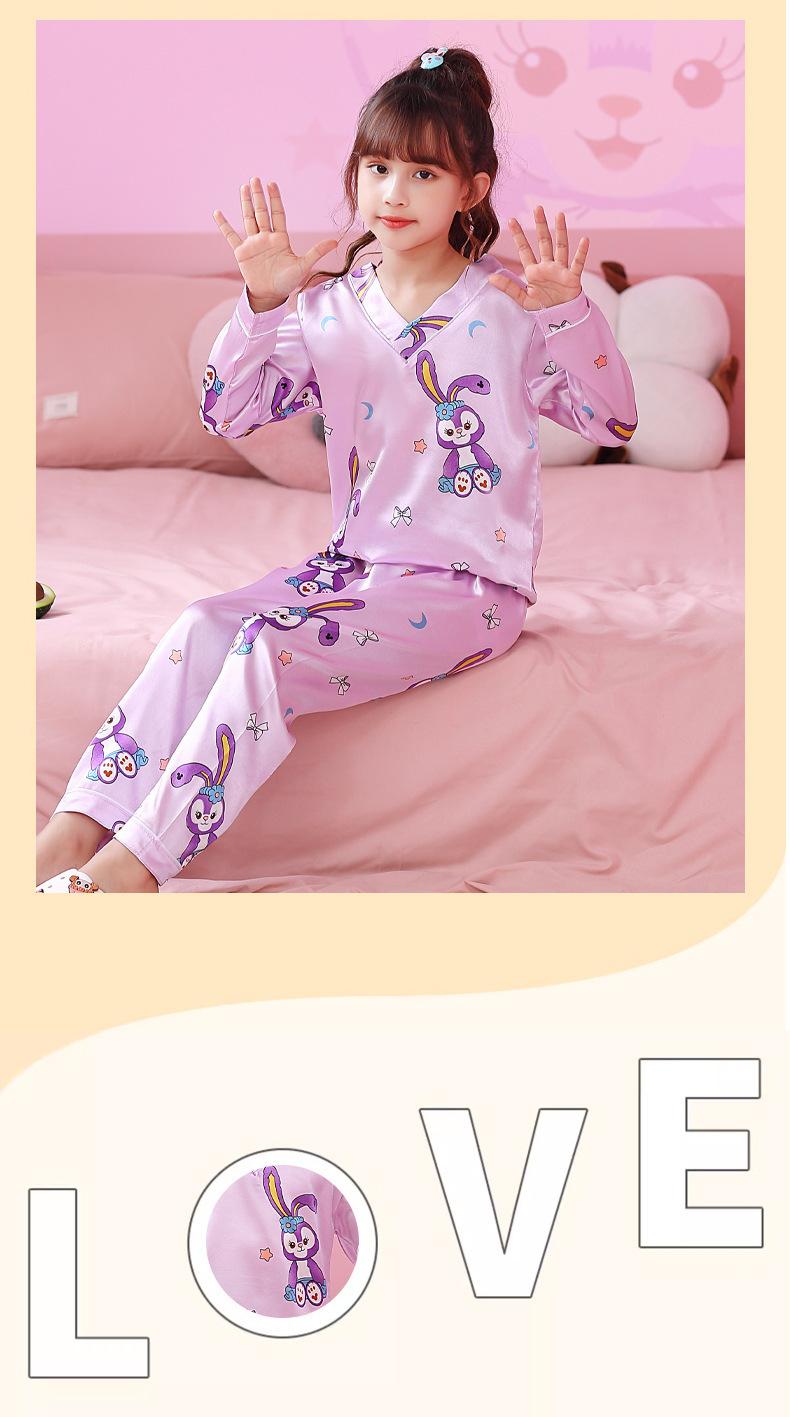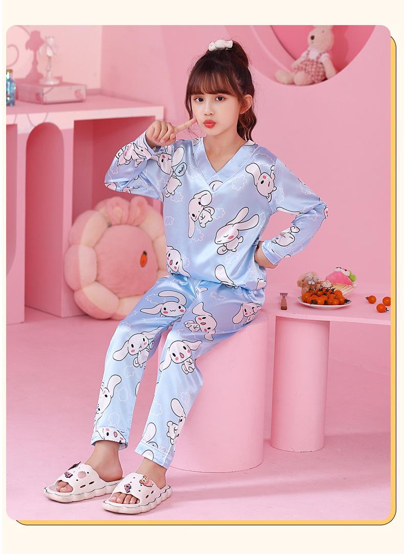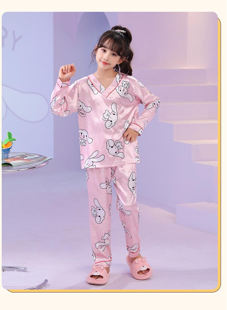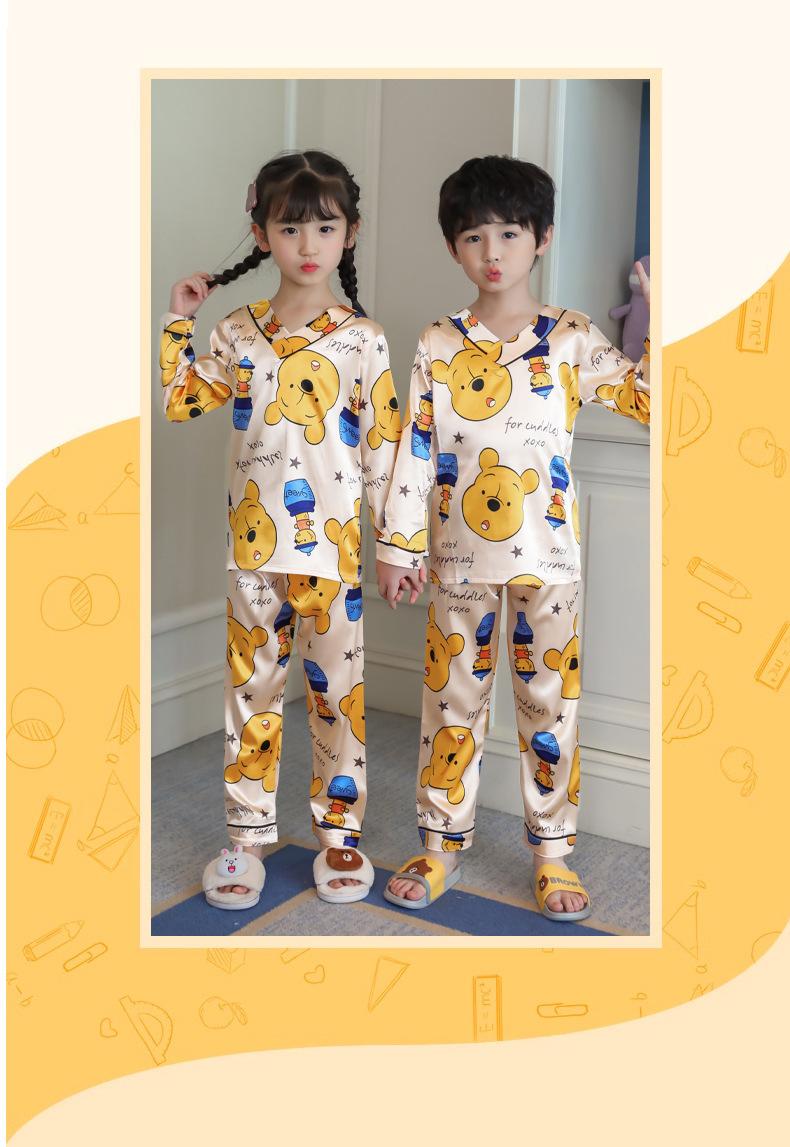 2025 Nuevo Primavera y Otoño Cuello en V Seda de Hielo Manga Larga Pijamas para Niños Niños y Niñas Dibujos Animados Traje Ropa de Casa Verano