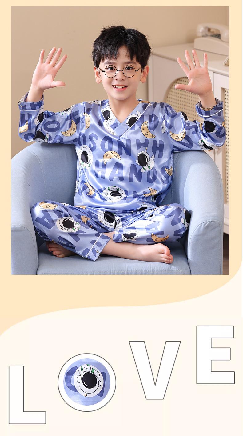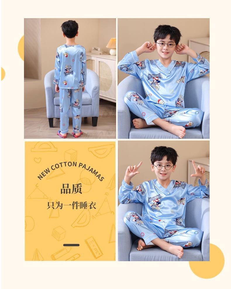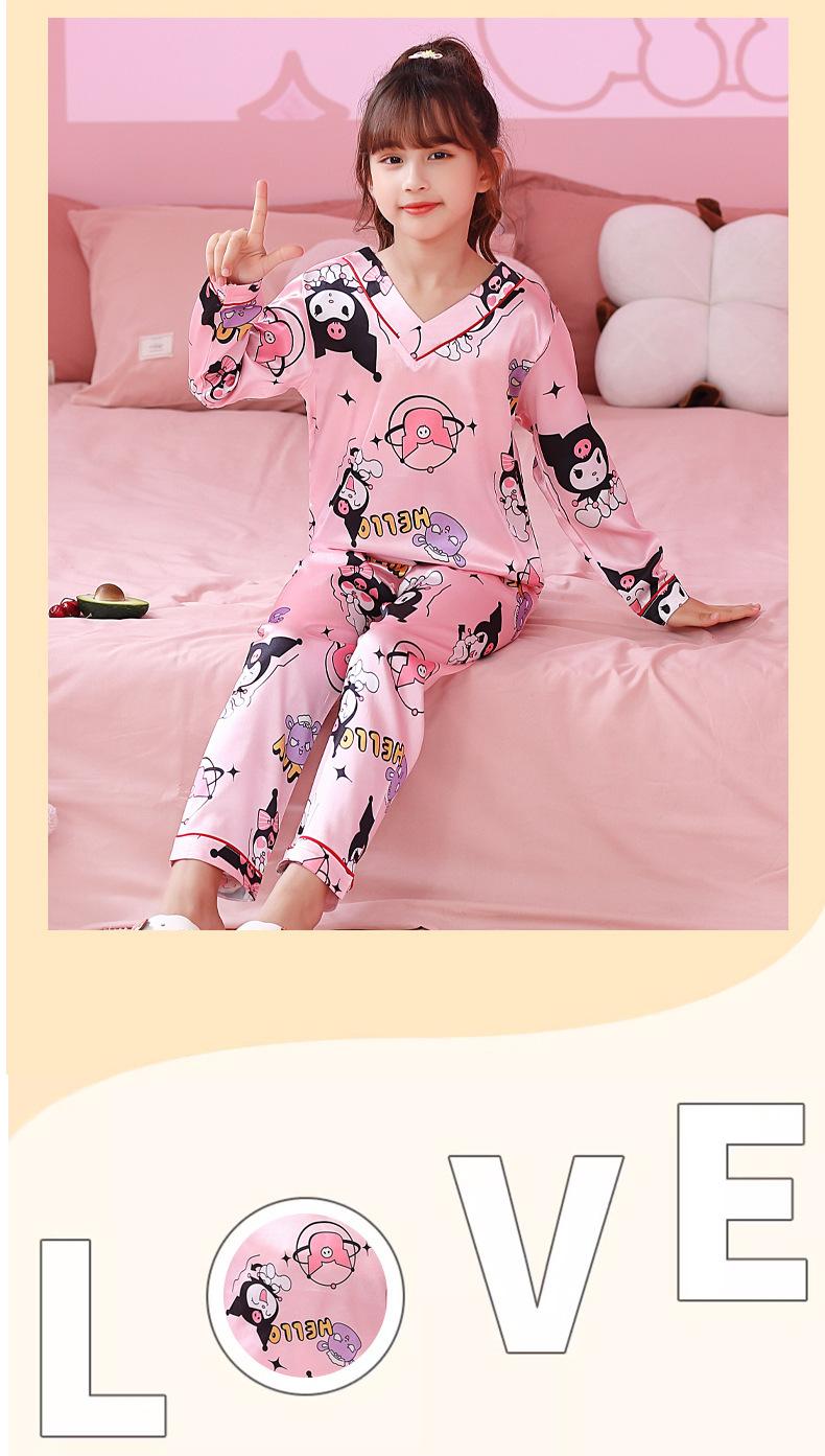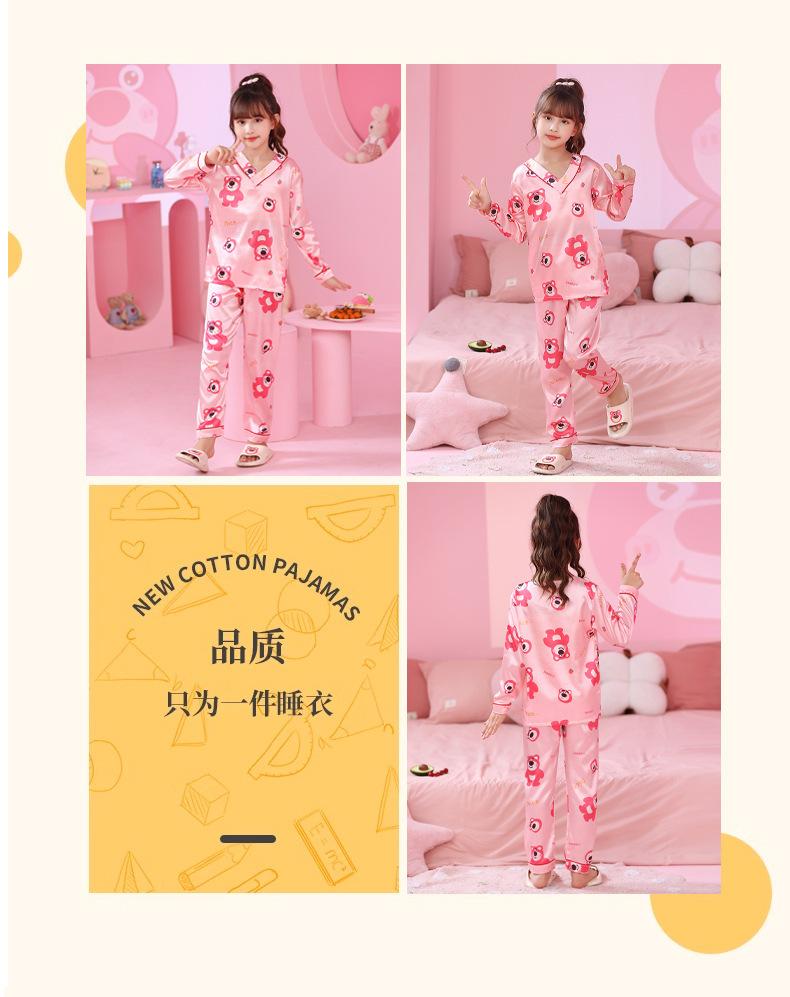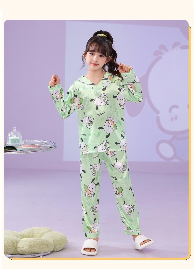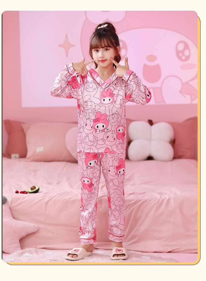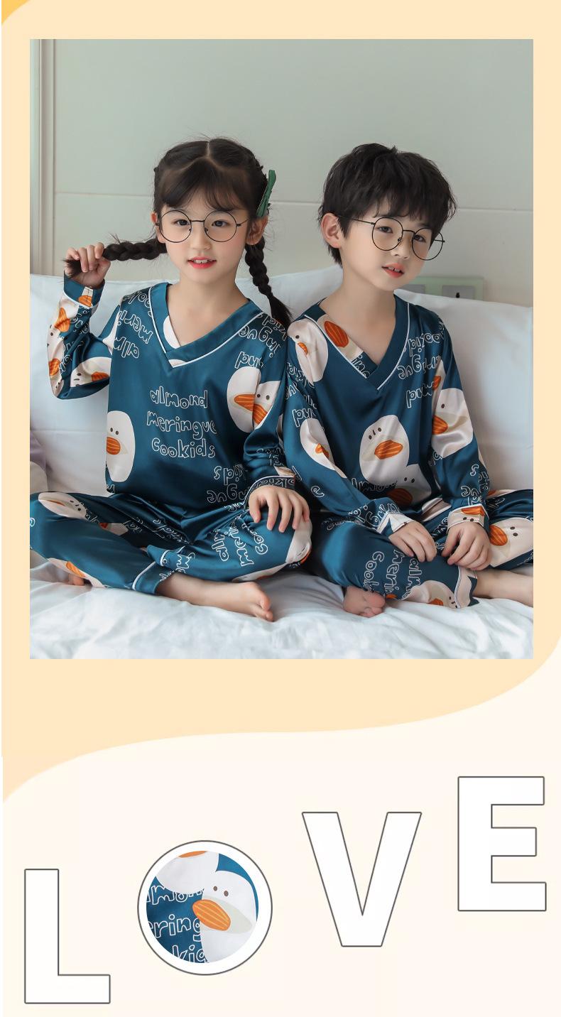 2025 Nuevo Primavera y Otoño Cuello en V Seda de Hielo Manga Larga Pijamas para Niños Niños y Niñas Dibujos Animados Traje Ropa de Casa Verano