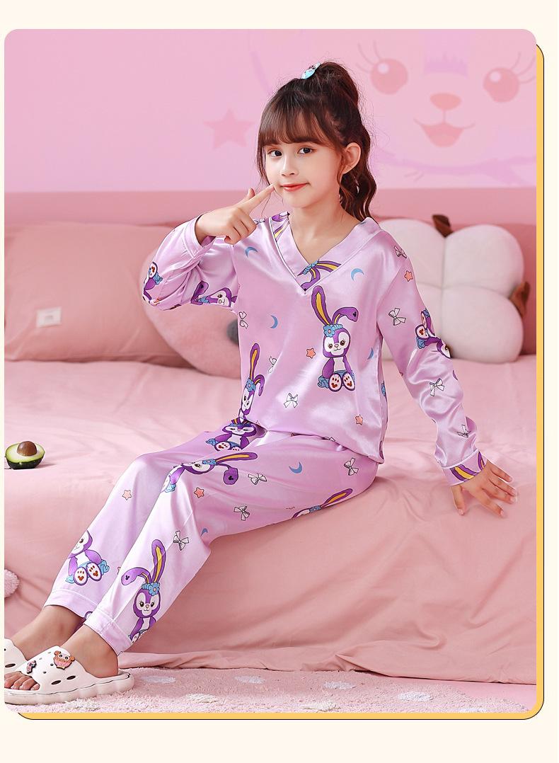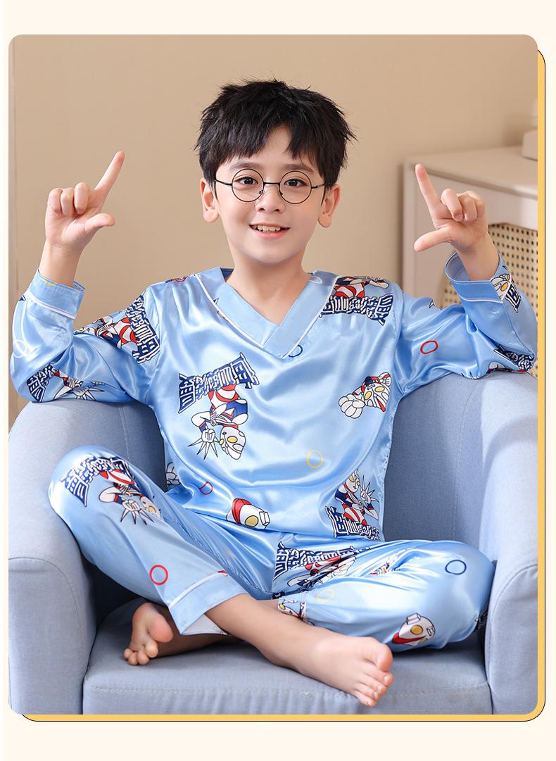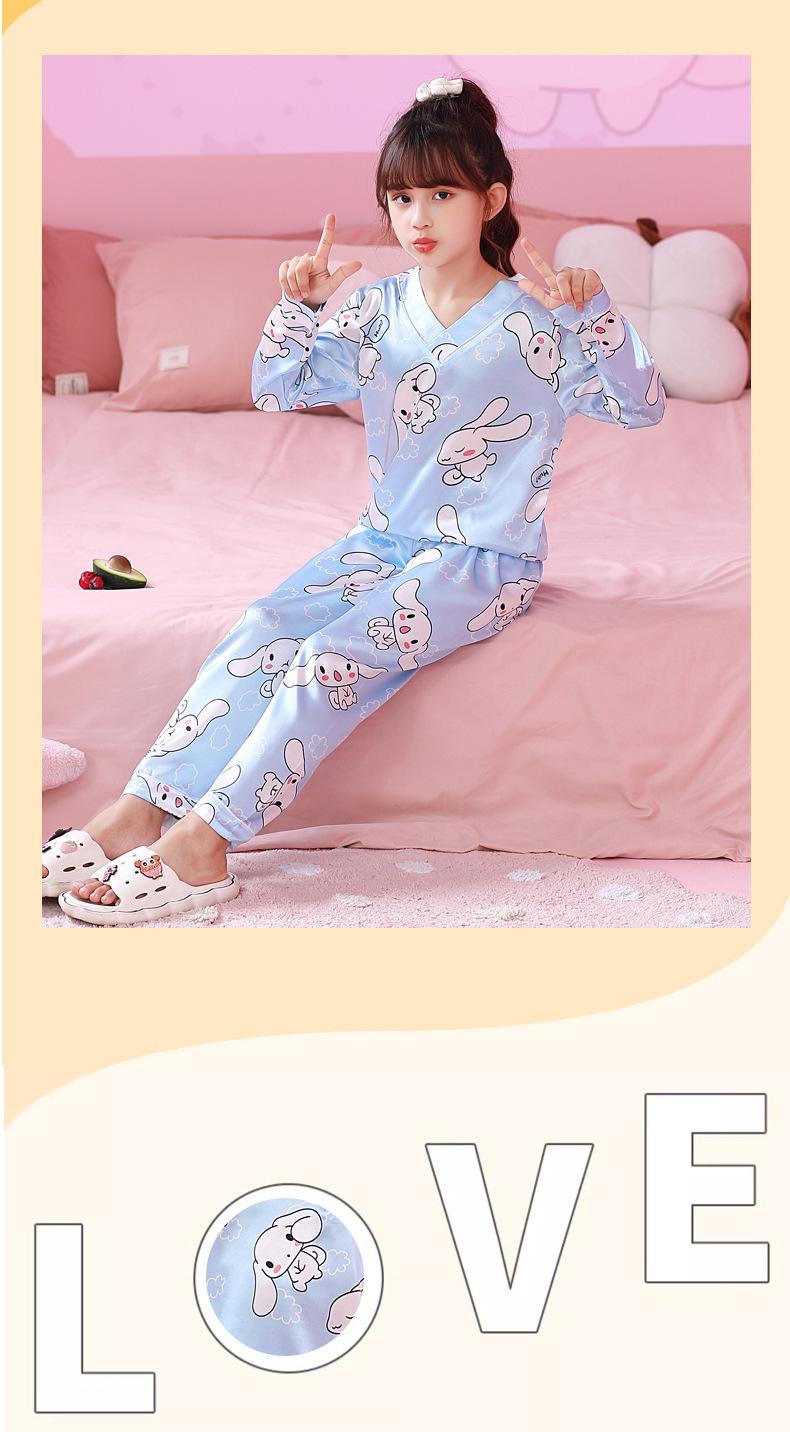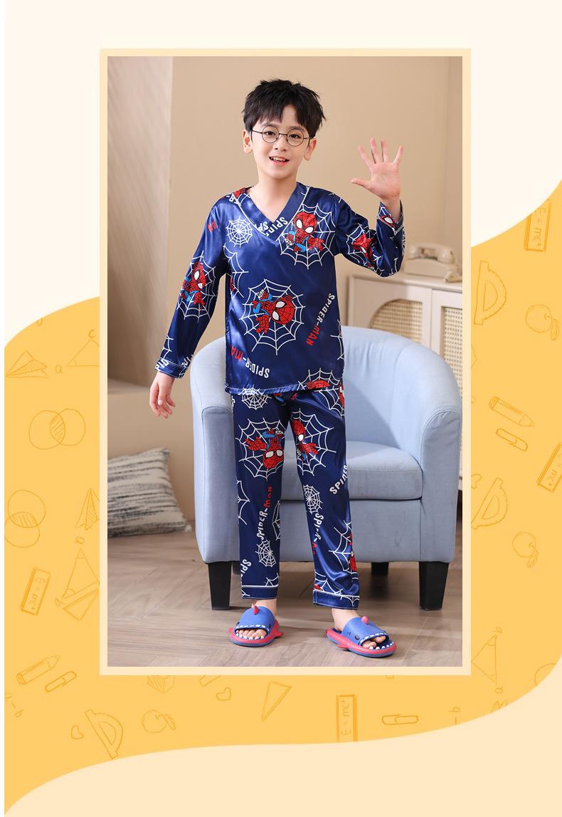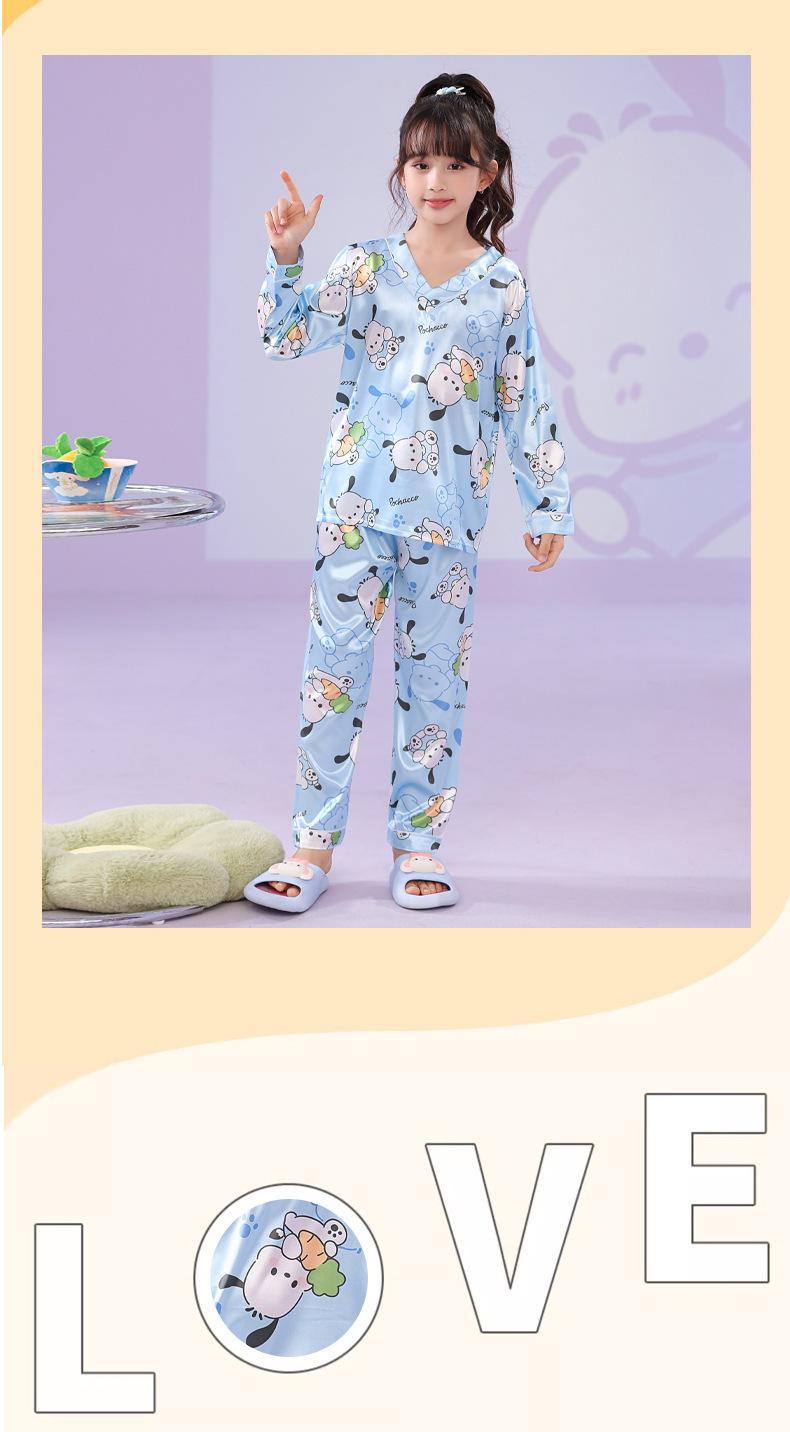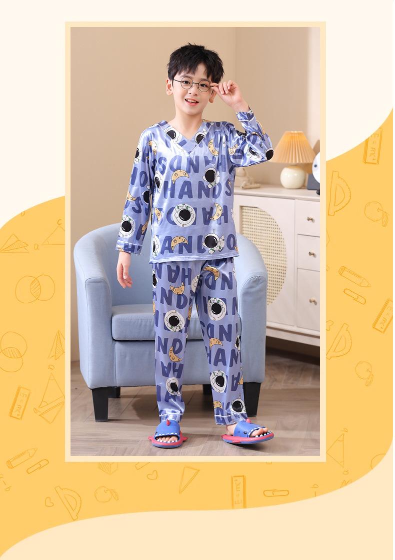2025 Nuevo Primavera y Otoño Cuello en V Seda de Hielo Manga Larga Pijamas para Niños Niños y Niñas Dibujos Animados Traje Ropa de Casa Verano