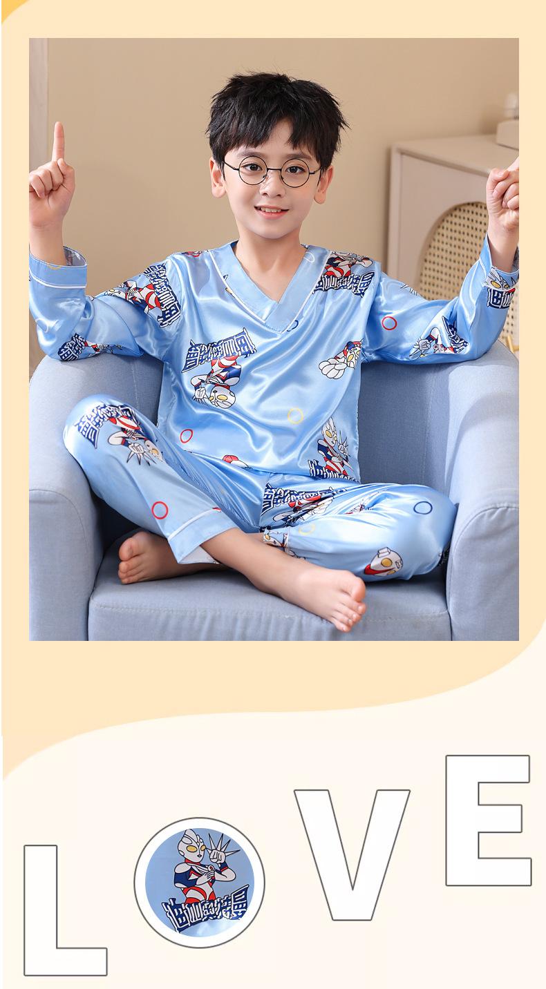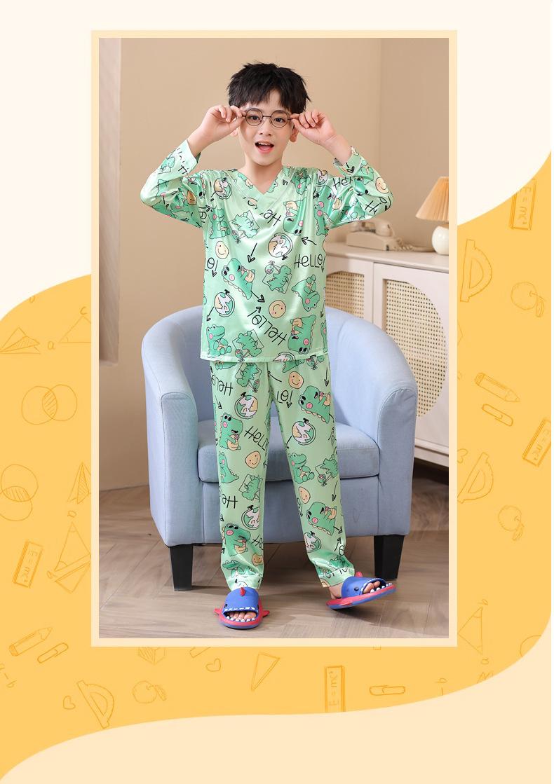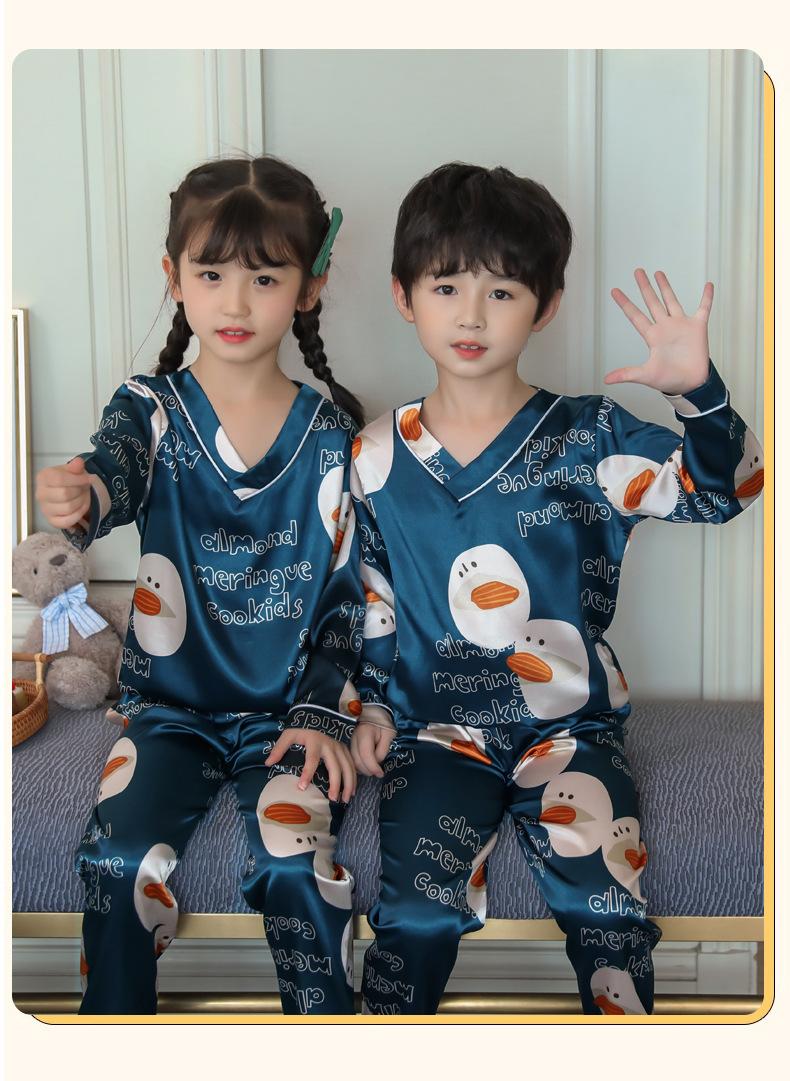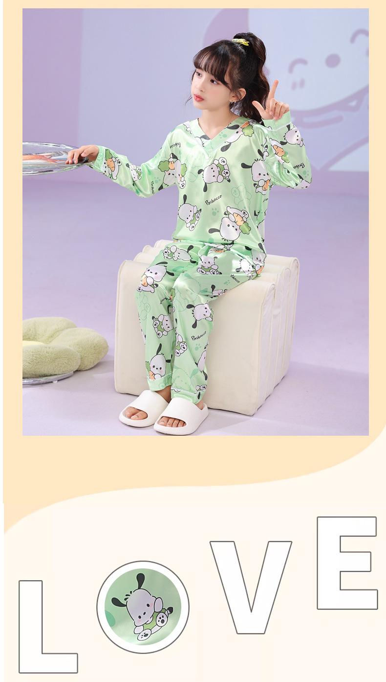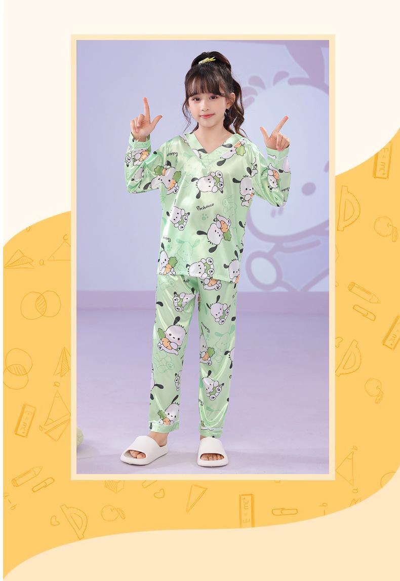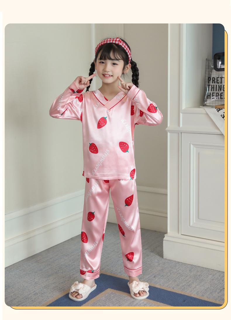 2025 Nuevo Primavera y Otoño Cuello en V Seda de Hielo Manga Larga Pijamas para Niños Niños y Niñas Dibujos Animados Traje Ropa de Casa Verano