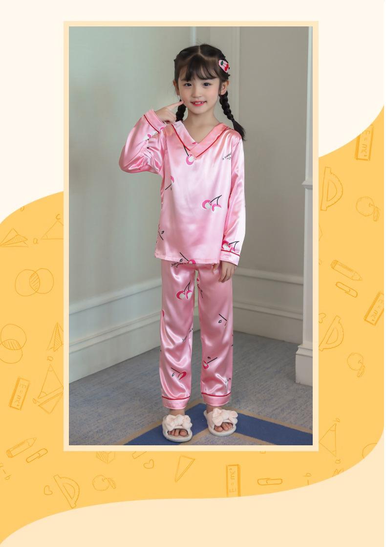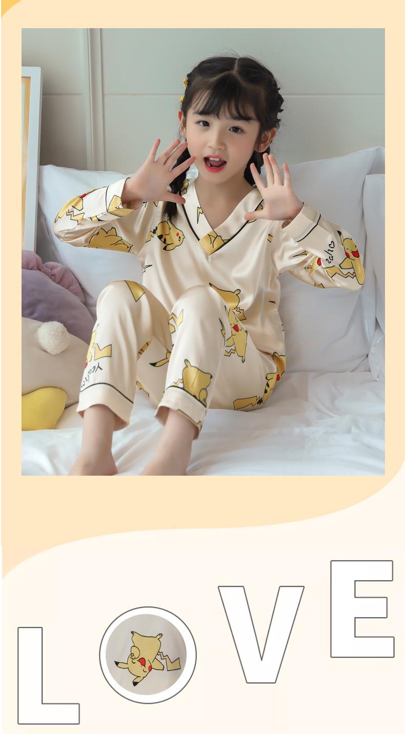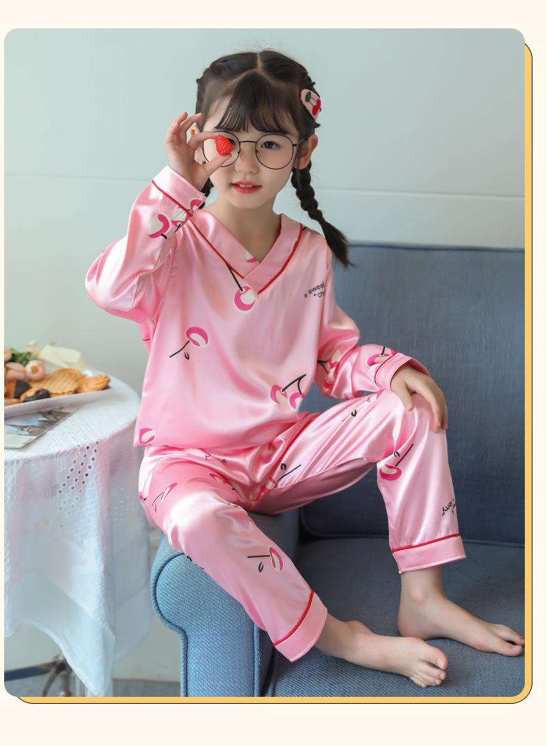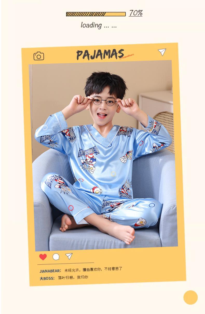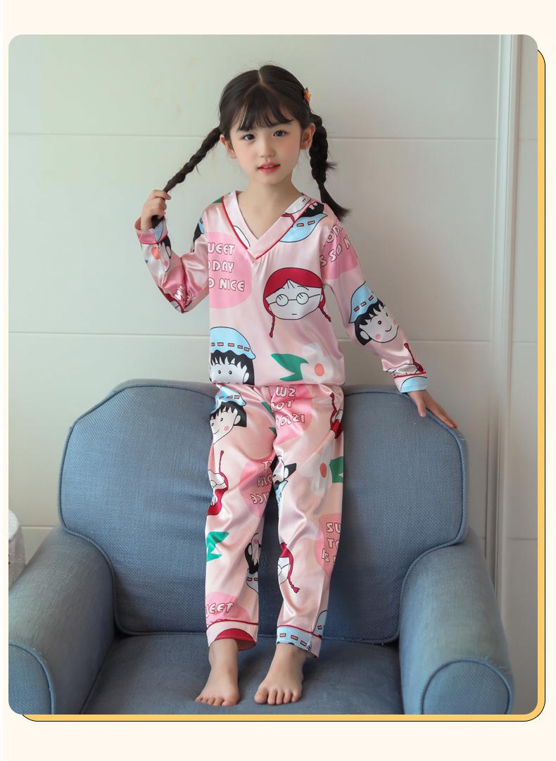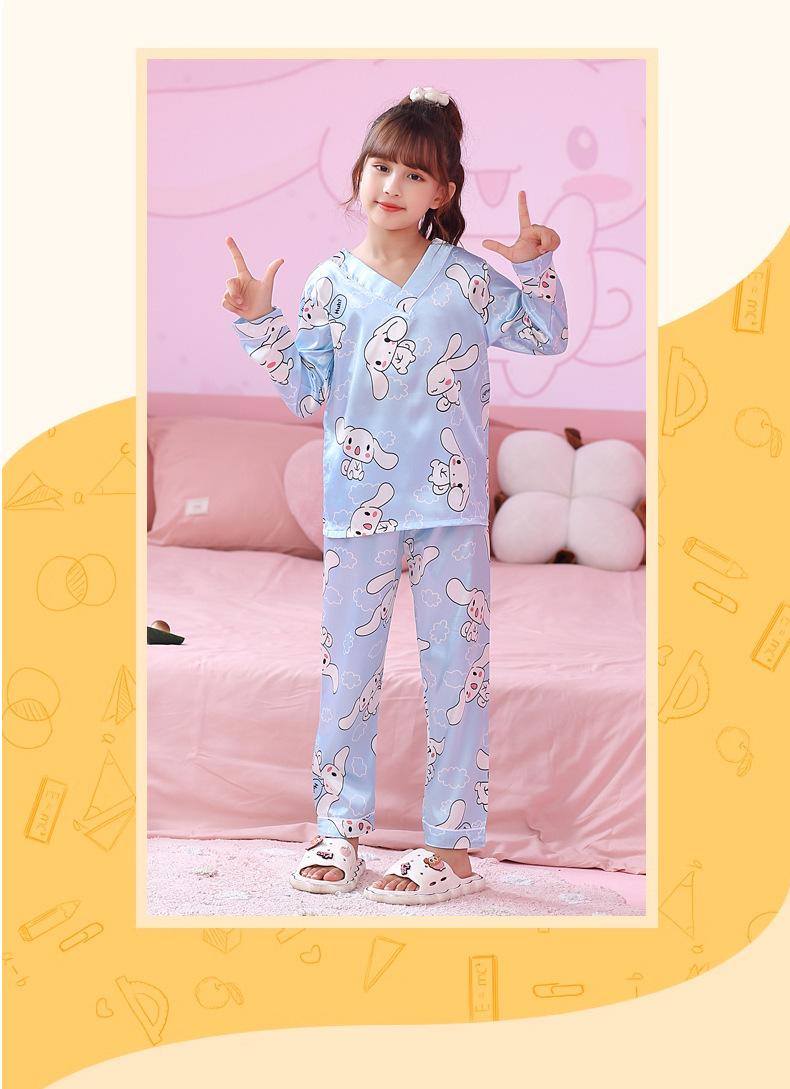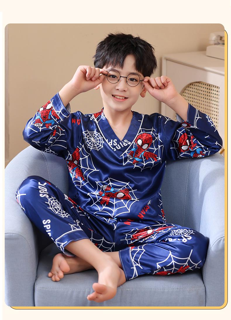 2025 Nuevo Primavera y Otoño Cuello en V Seda de Hielo Manga Larga Pijamas para Niños Niños y Niñas Dibujos Animados Traje Ropa de Casa Verano