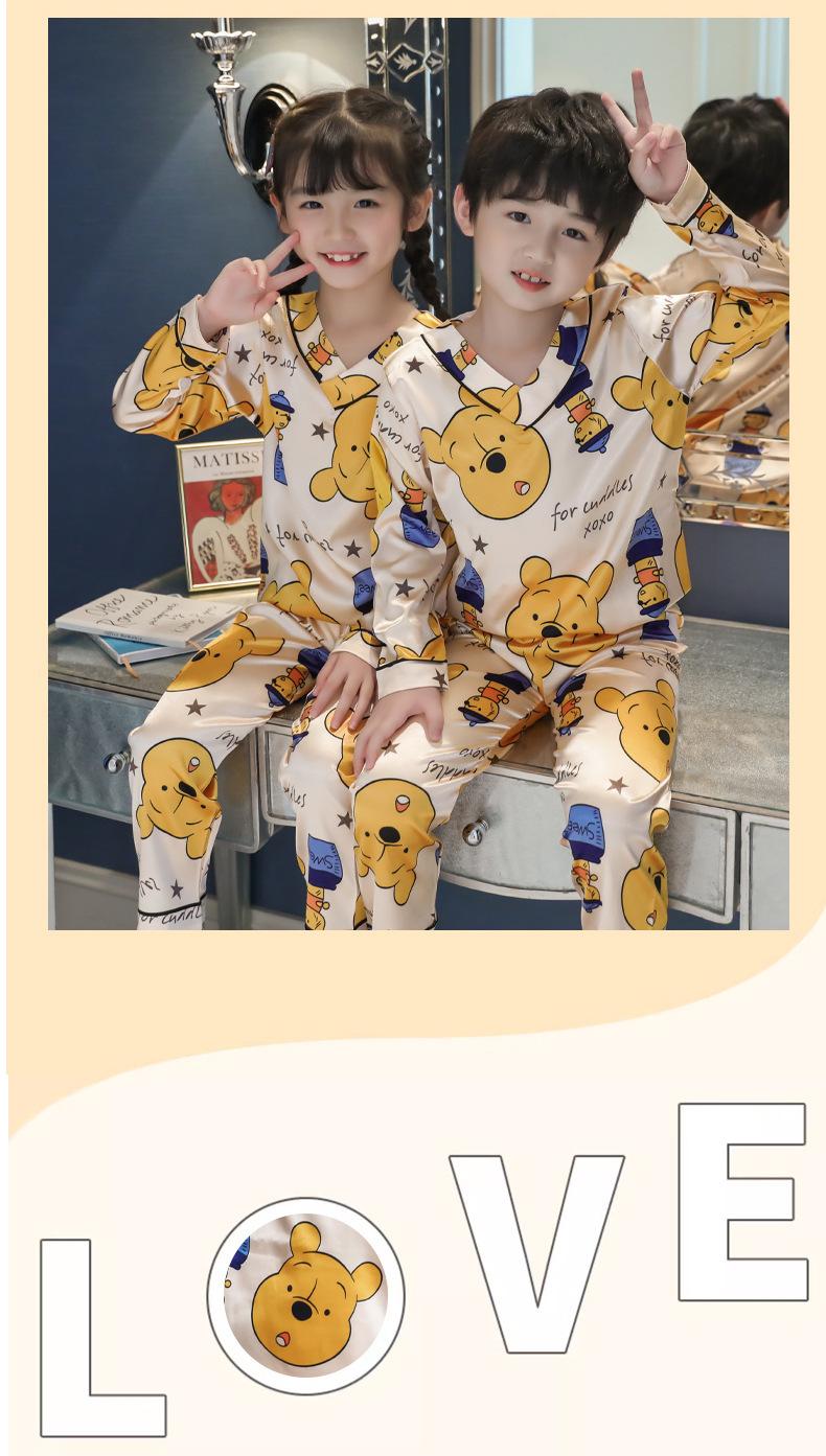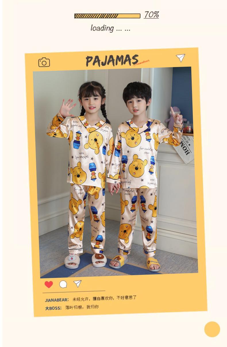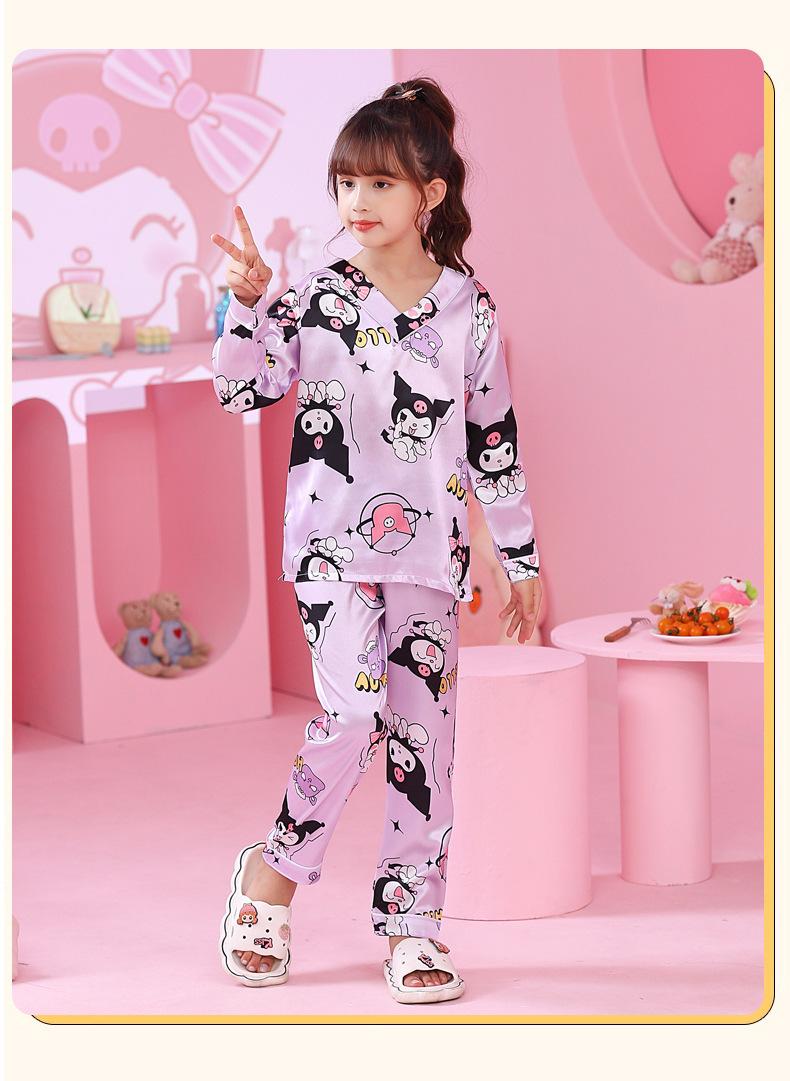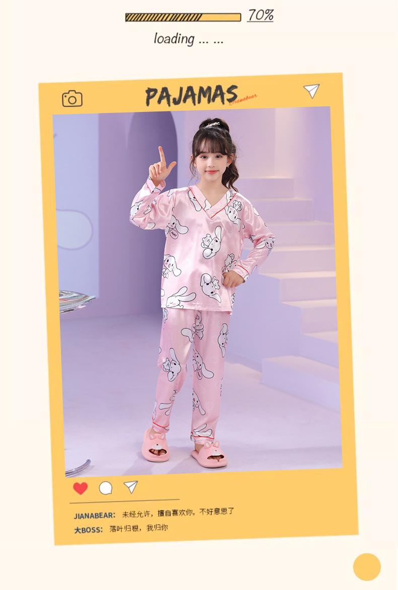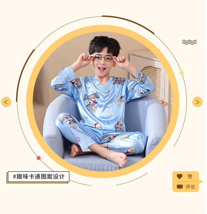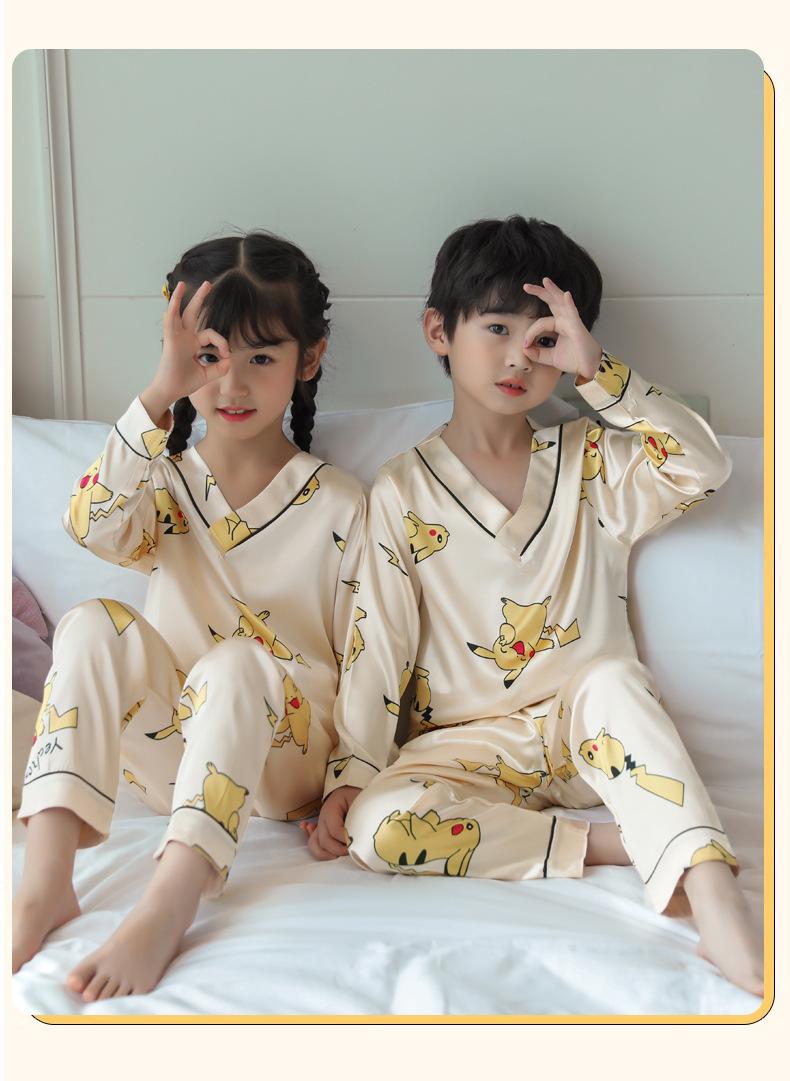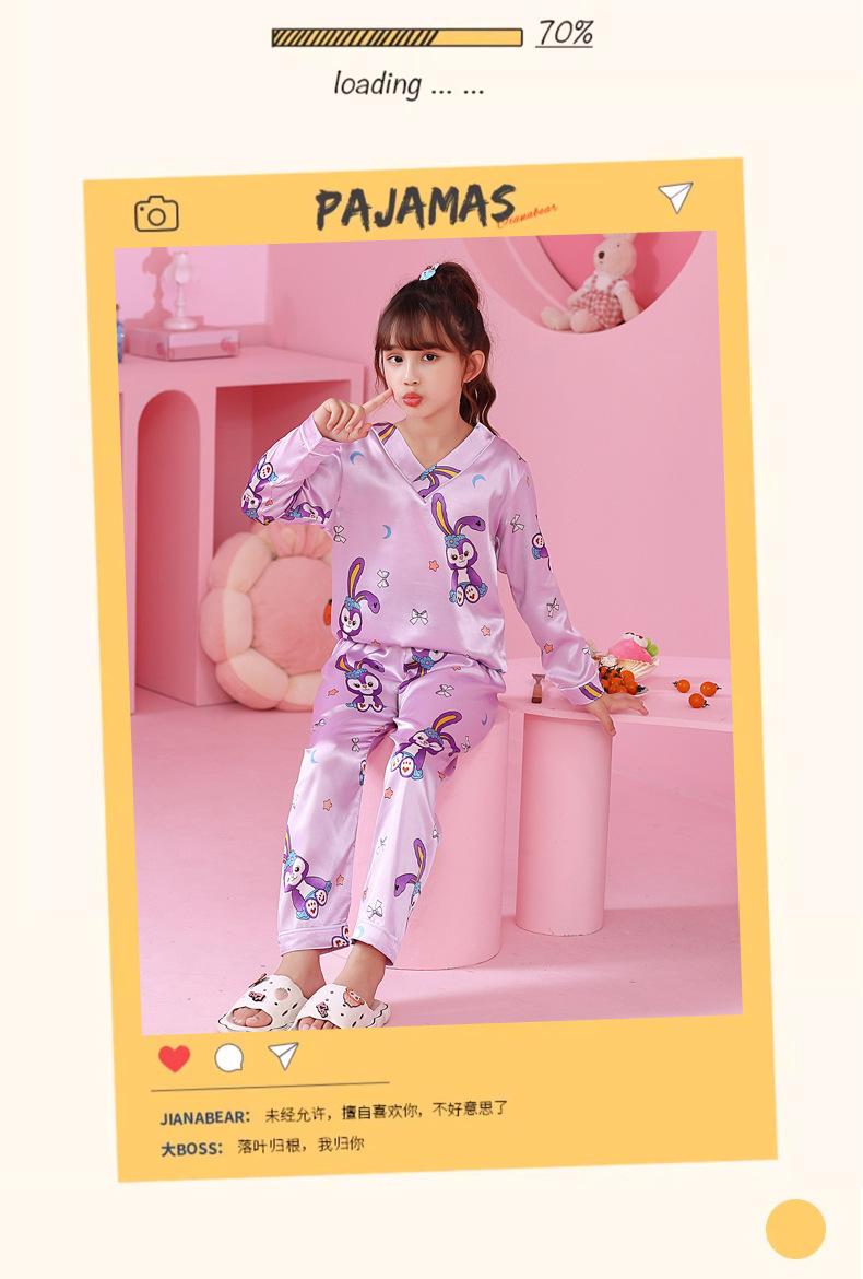 2025 Nuevo Primavera y Otoño Cuello en V Seda de Hielo Manga Larga Pijamas para Niños Niños y Niñas Dibujos Animados Traje Ropa de Casa Verano