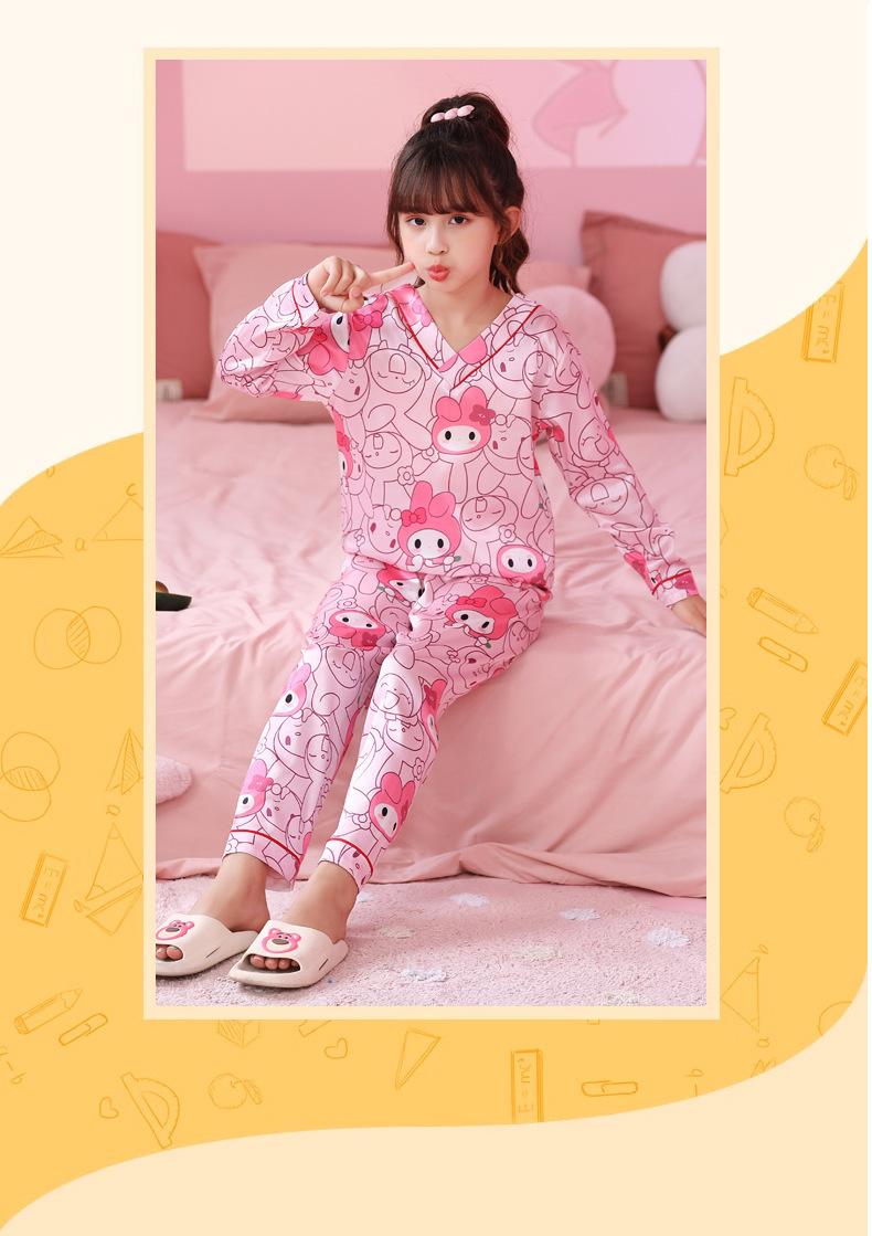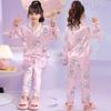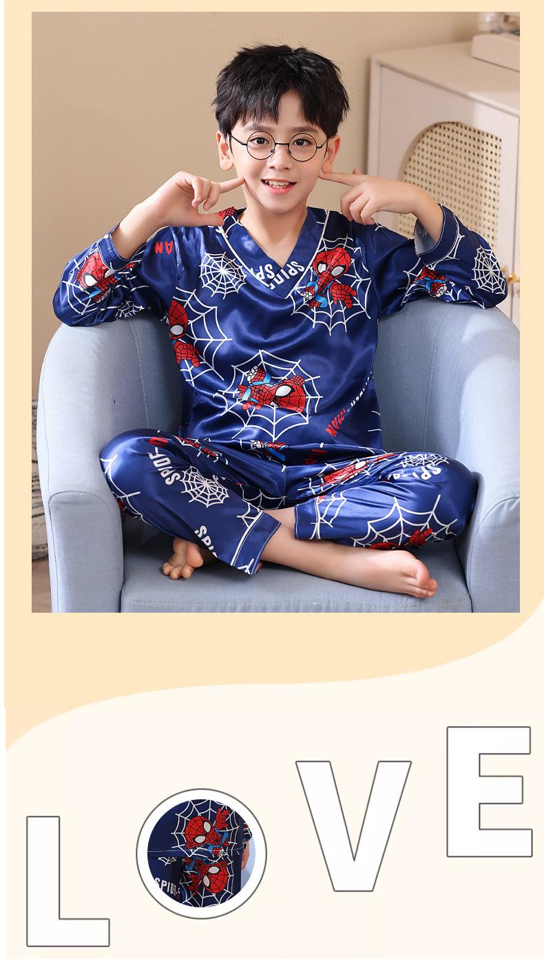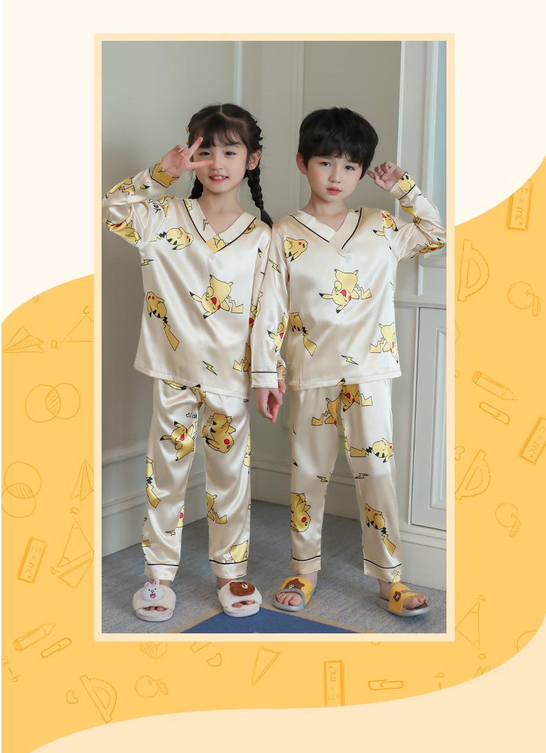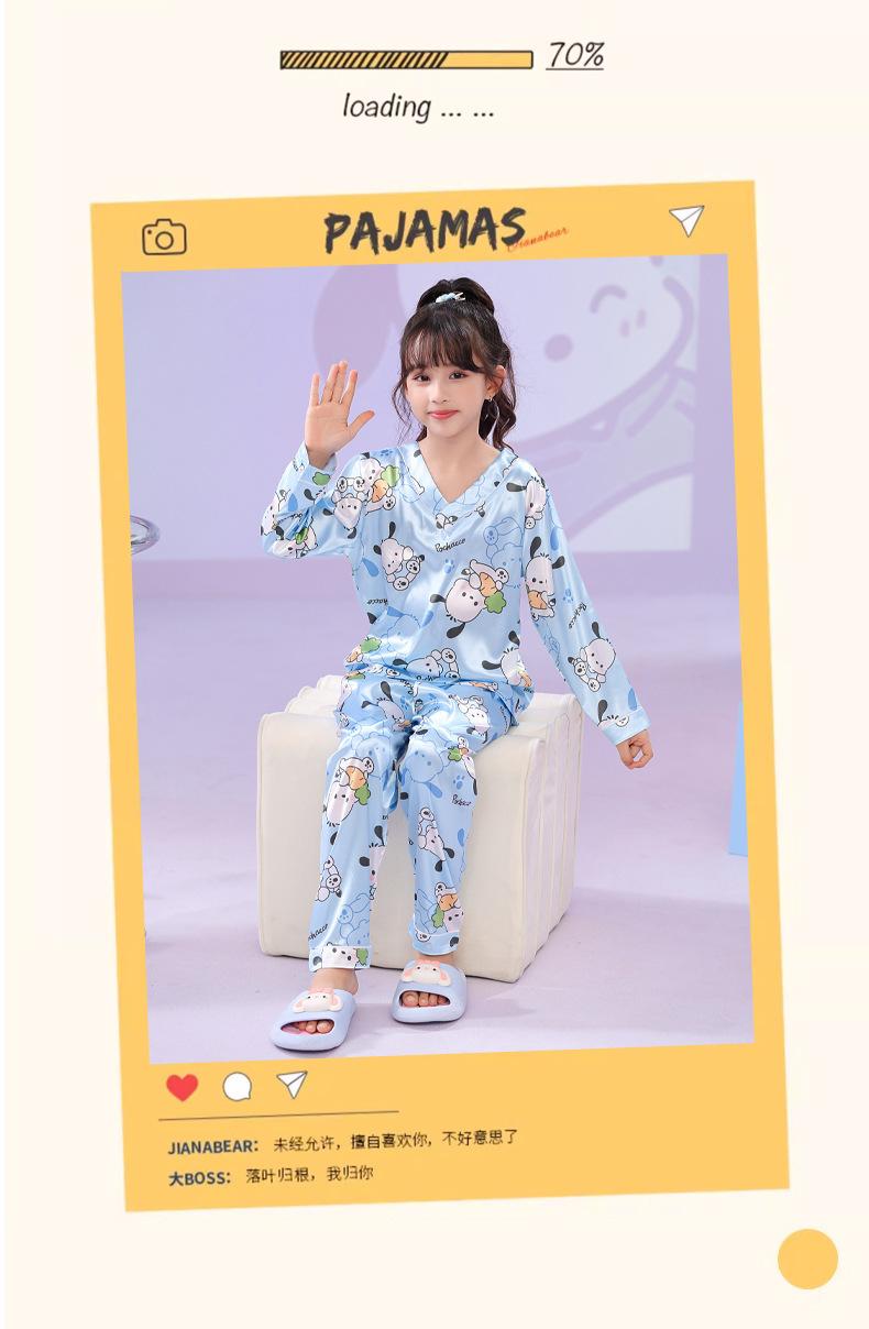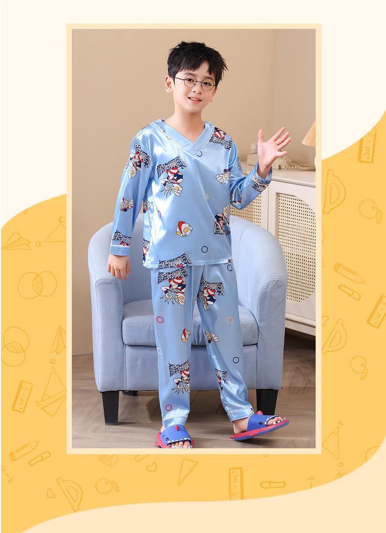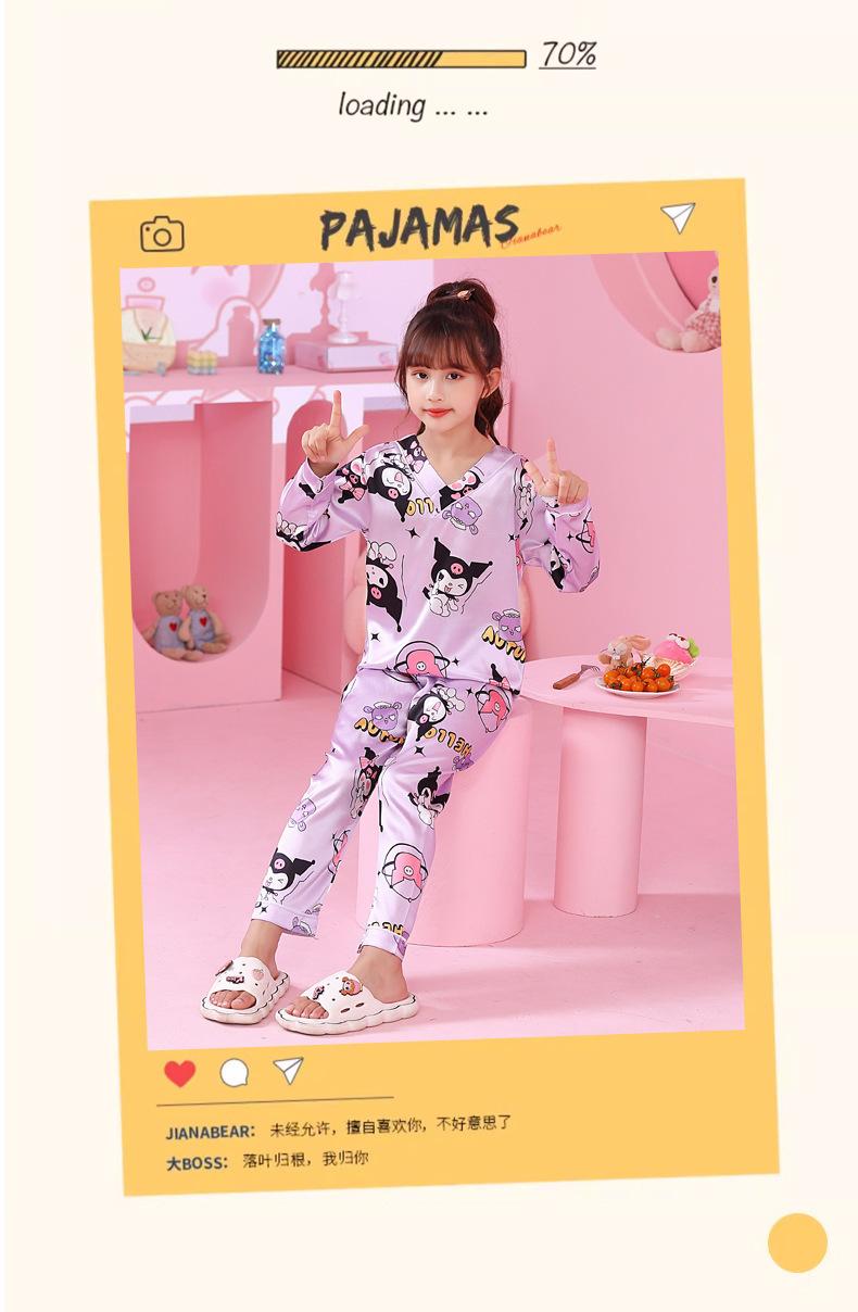 2025 Nuevo Primavera y Otoño Cuello en V Seda de Hielo Manga Larga Pijamas para Niños Niños y Niñas Dibujos Animados Traje Ropa de Casa Verano