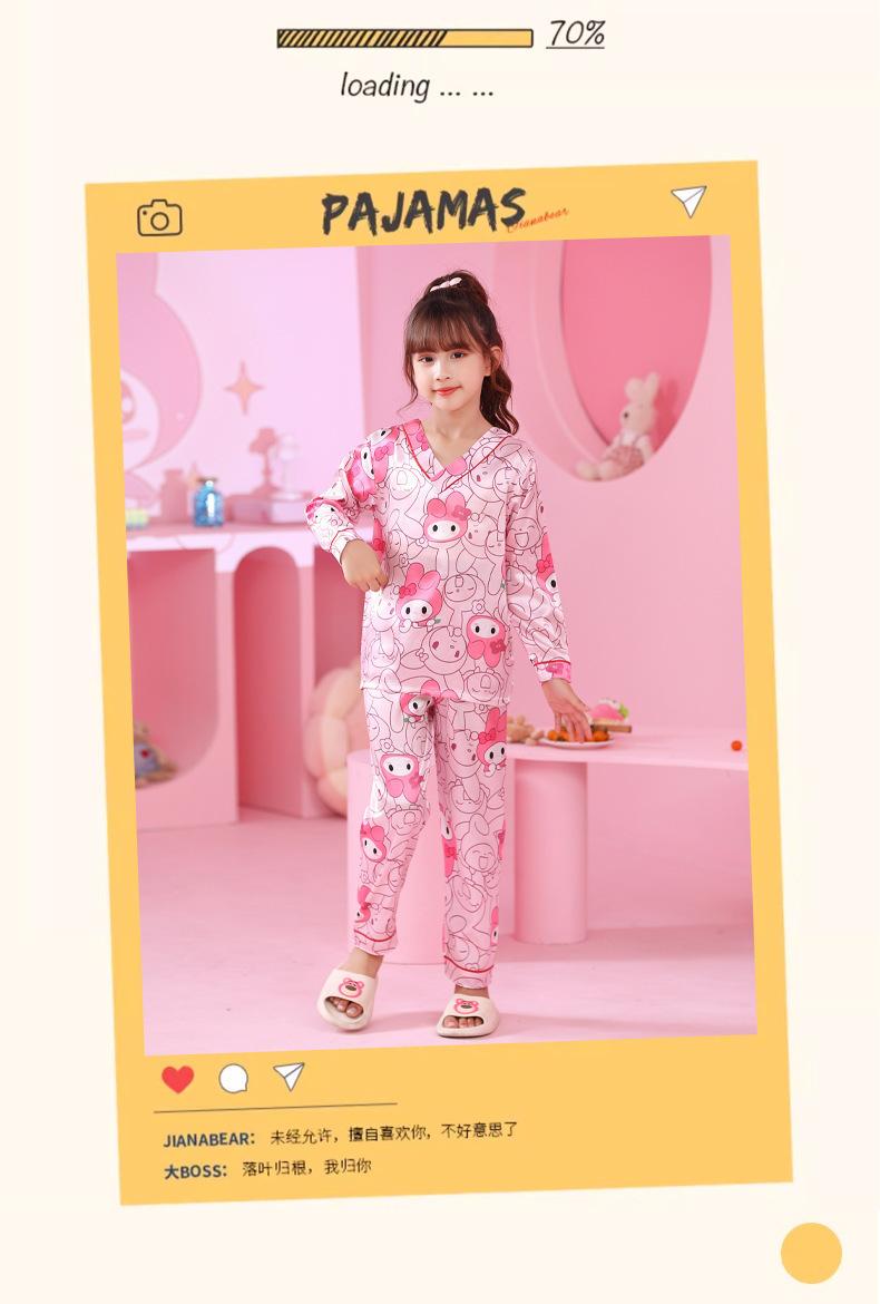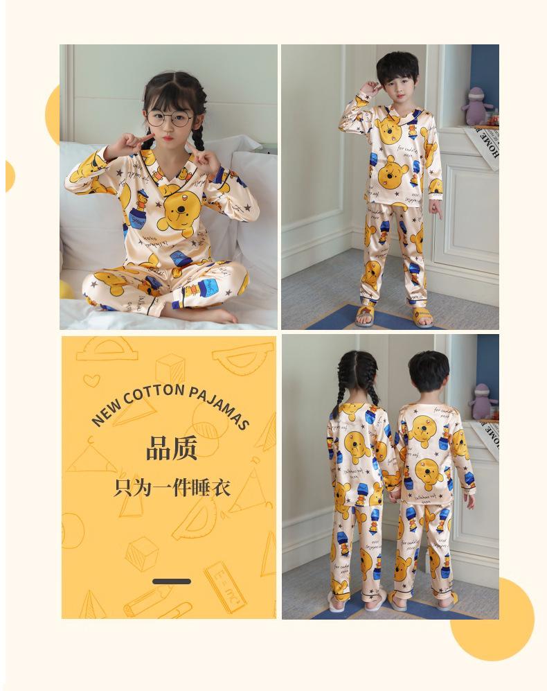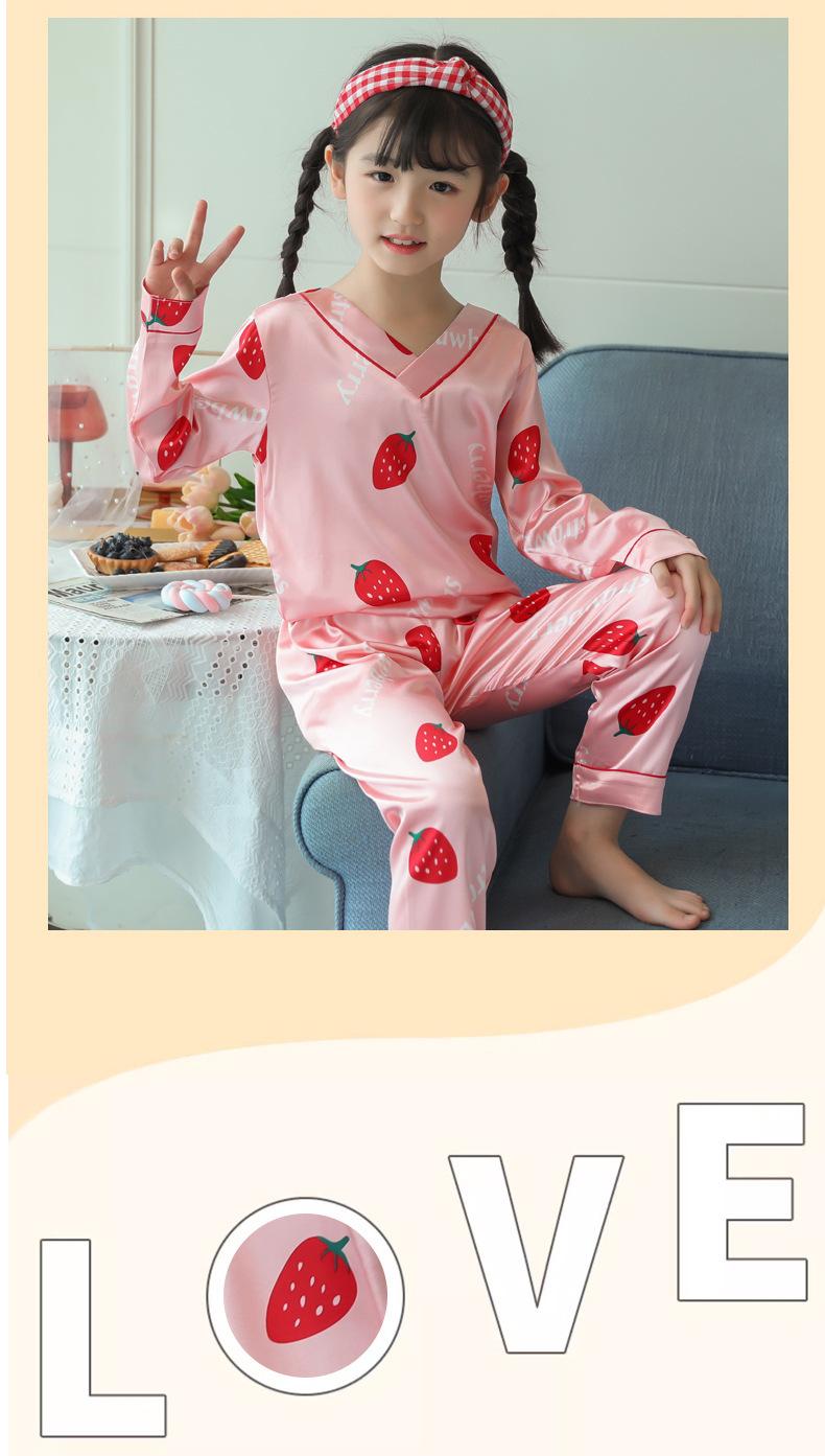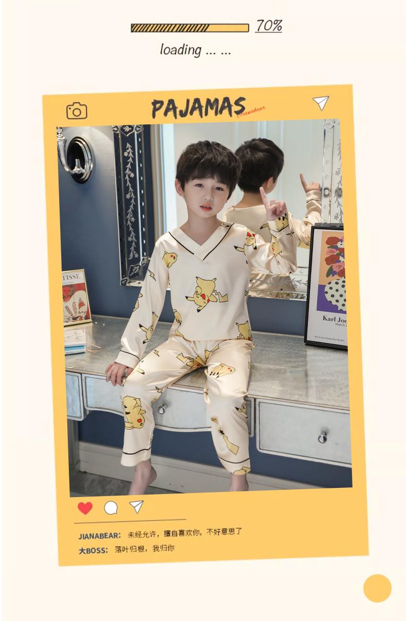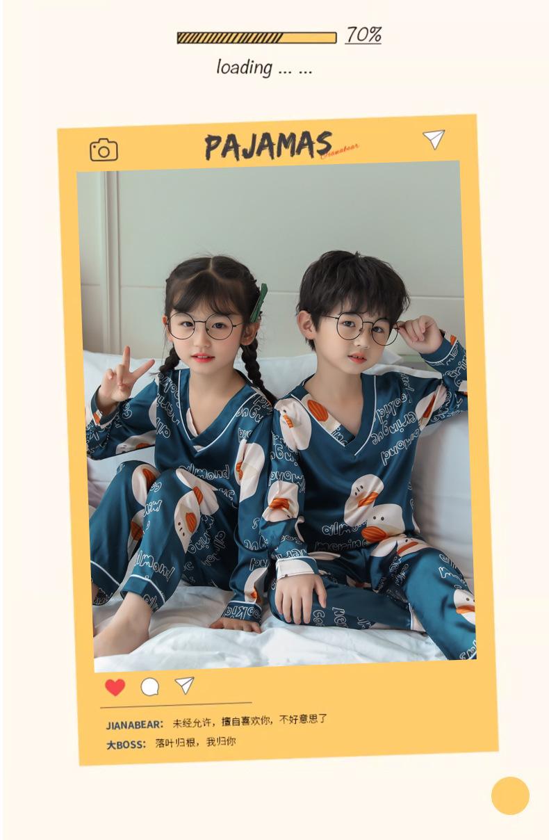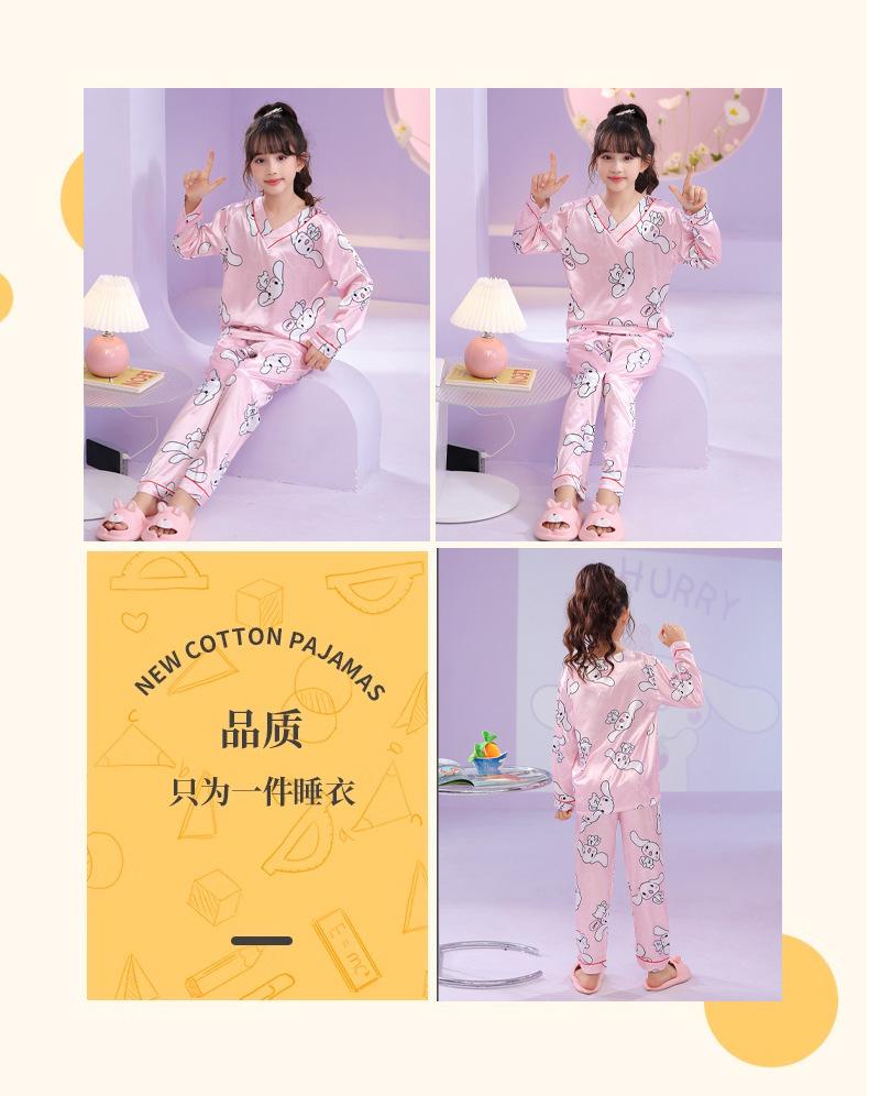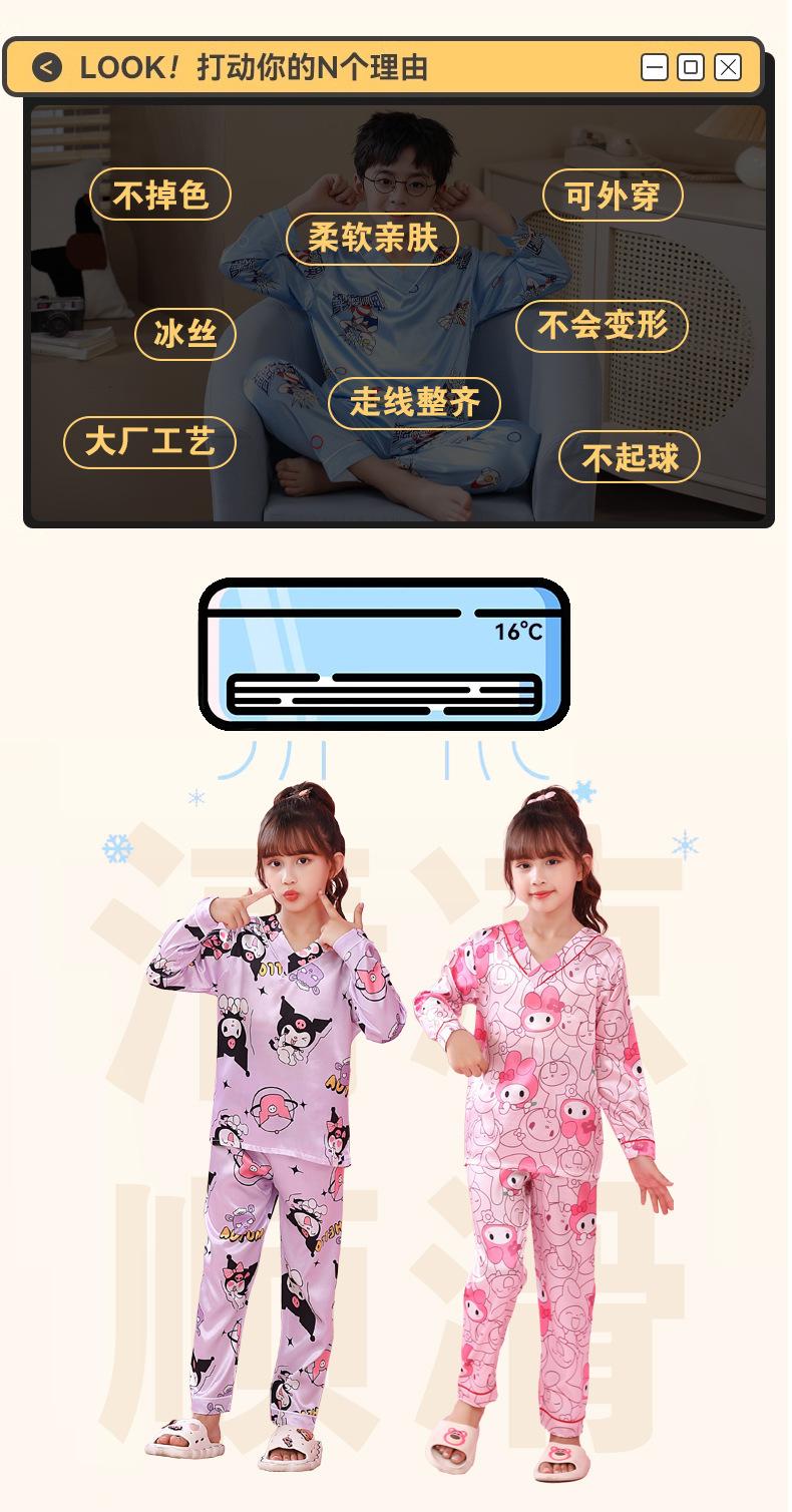 2025 Nuevo Primavera y Otoño Cuello en V Seda de Hielo Manga Larga Pijamas para Niños Niños y Niñas Dibujos Animados Traje Ropa de Casa Verano
