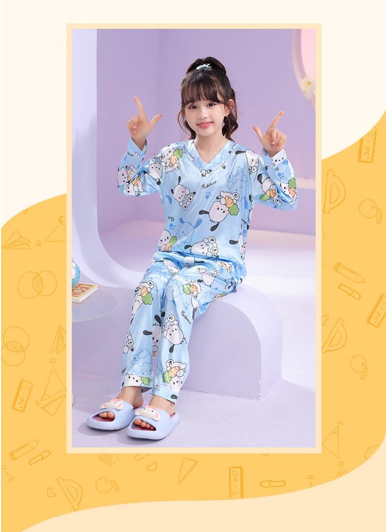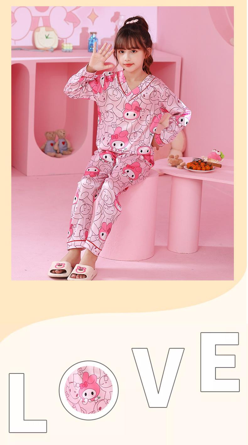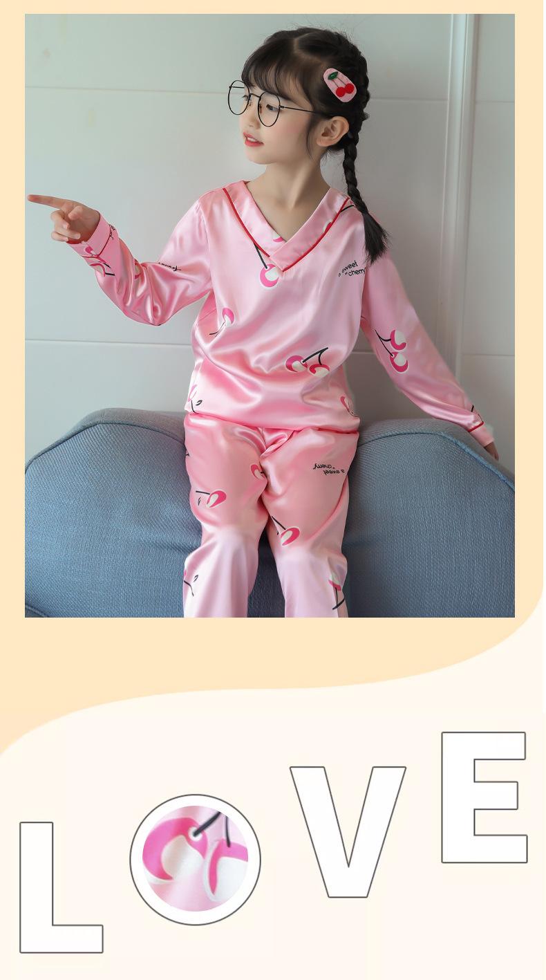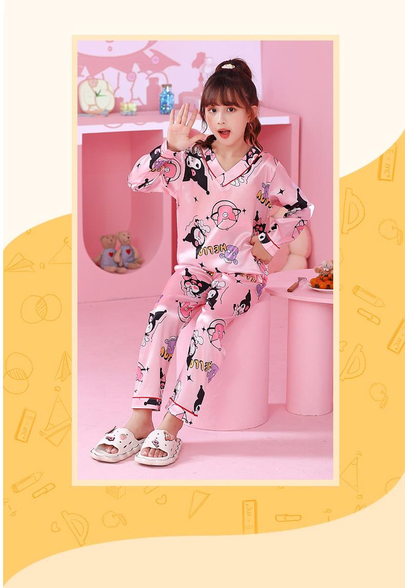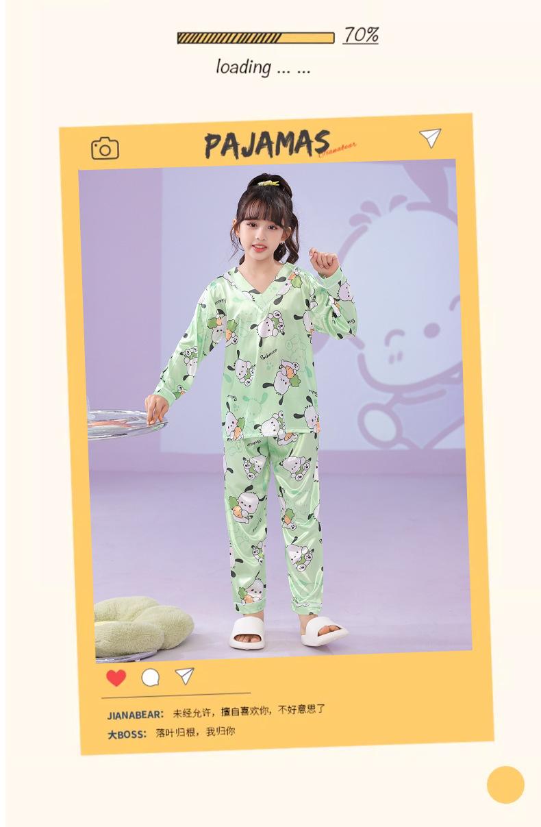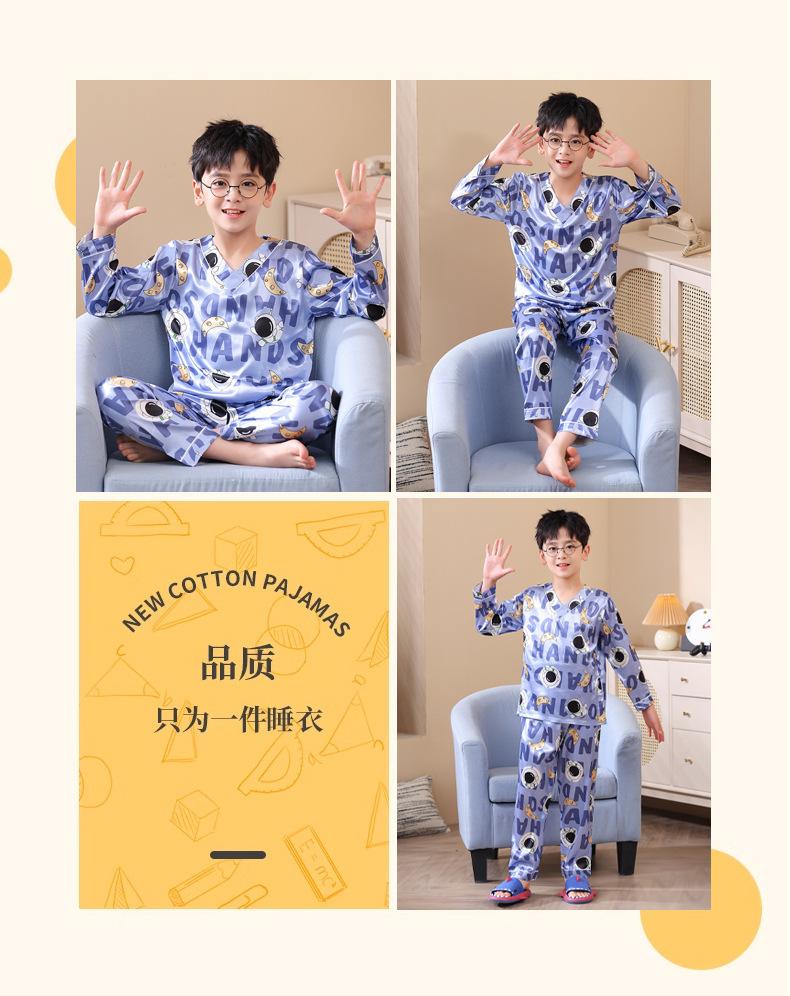 2025 Nuevo Primavera y Otoño Cuello en V Seda de Hielo Manga Larga Pijamas para Niños Niños y Niñas Dibujos Animados Traje Ropa de Casa Verano