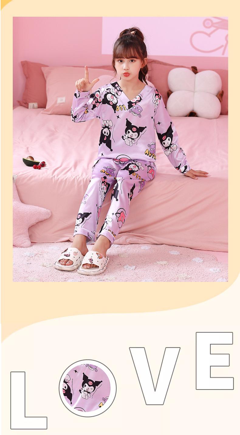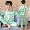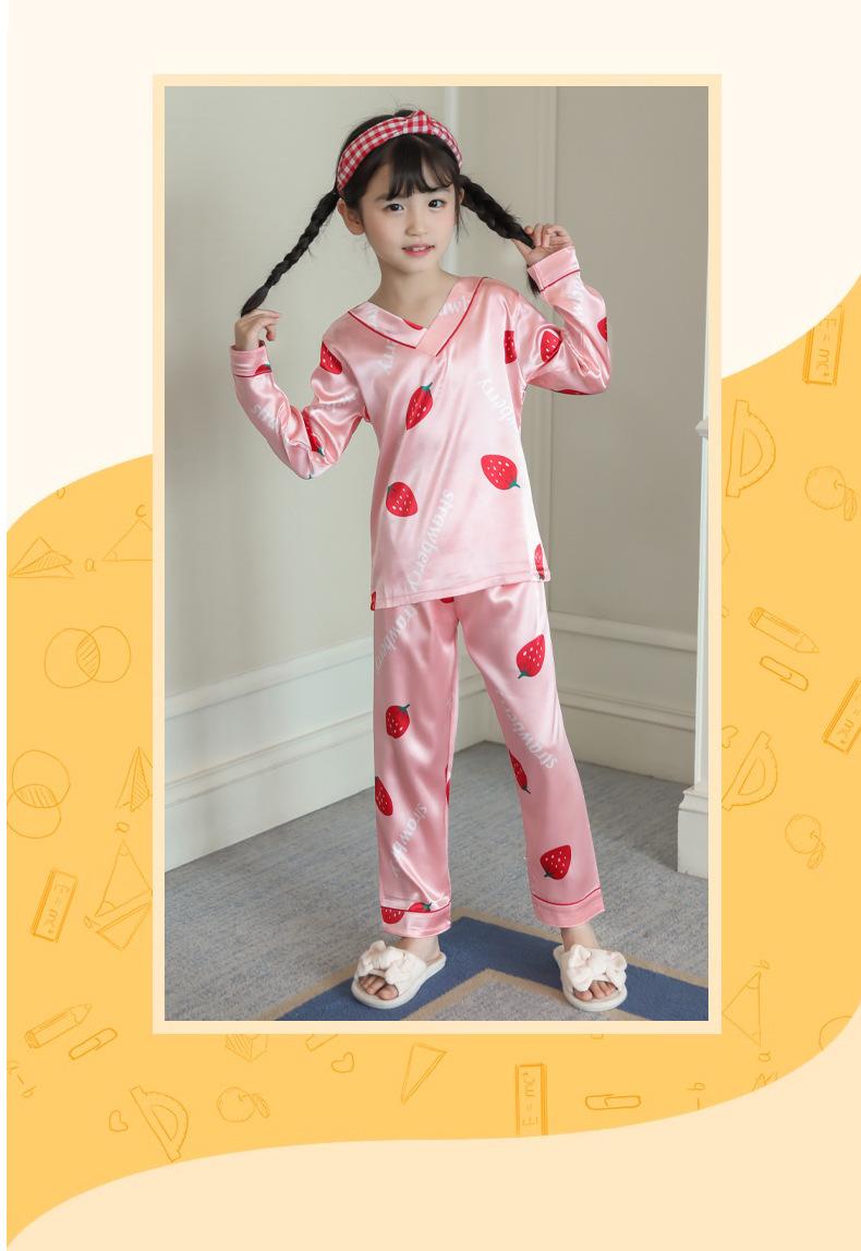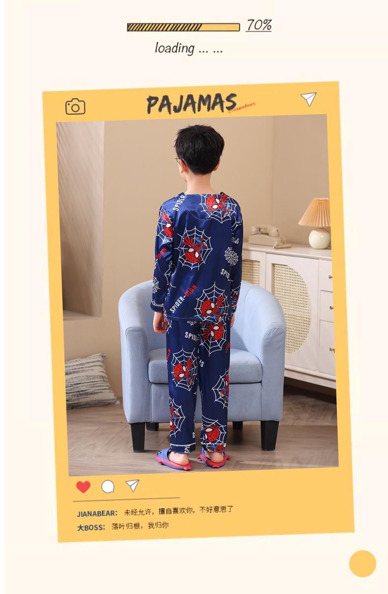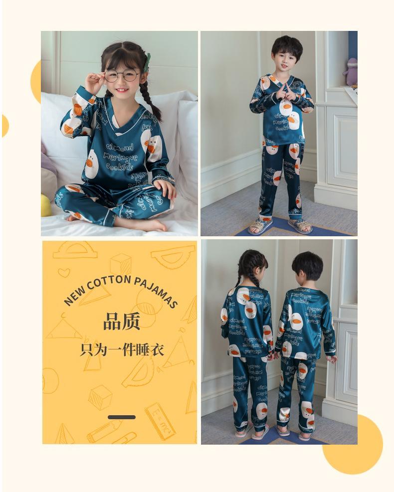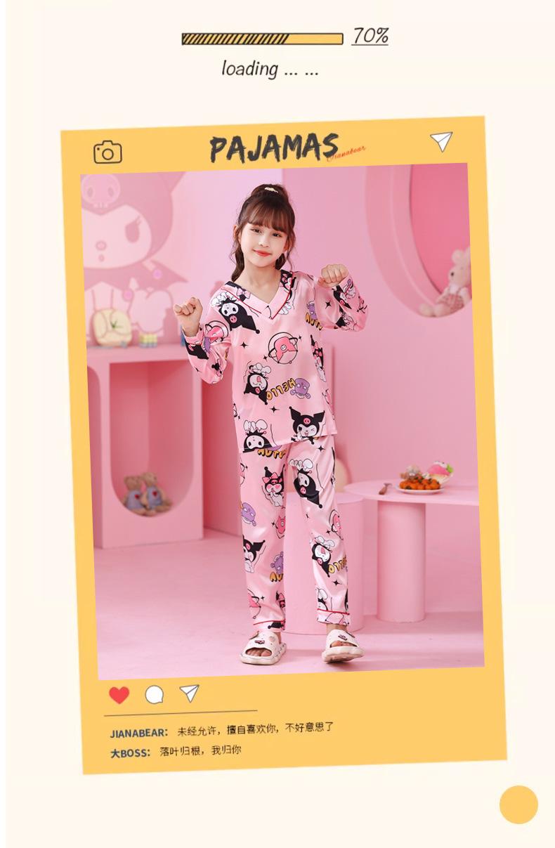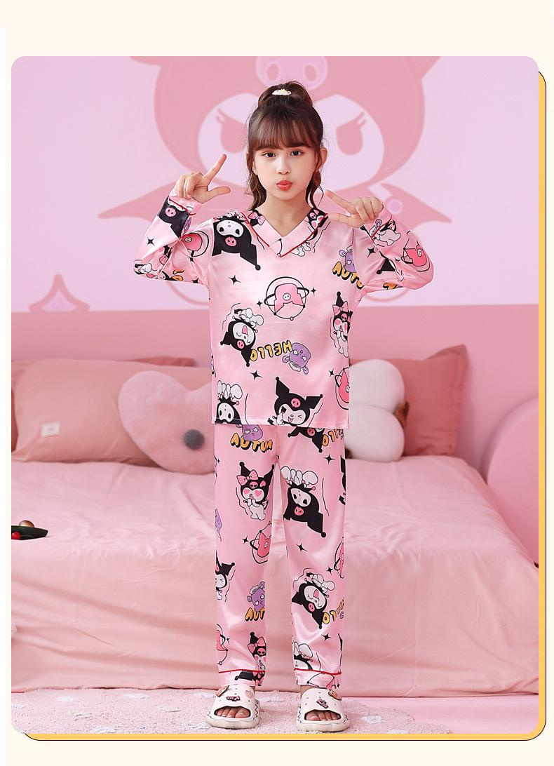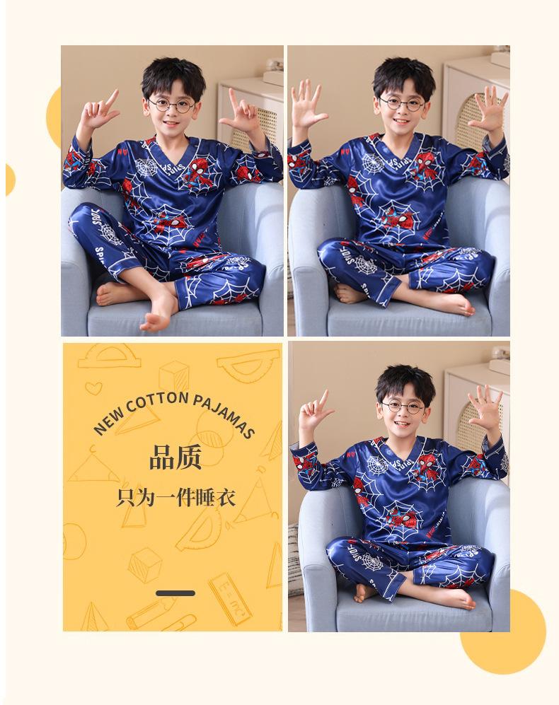 2025 Nuevo Primavera y Otoño Cuello en V Seda de Hielo Manga Larga Pijamas para Niños Niños y Niñas Dibujos Animados Traje Ropa de Casa Verano