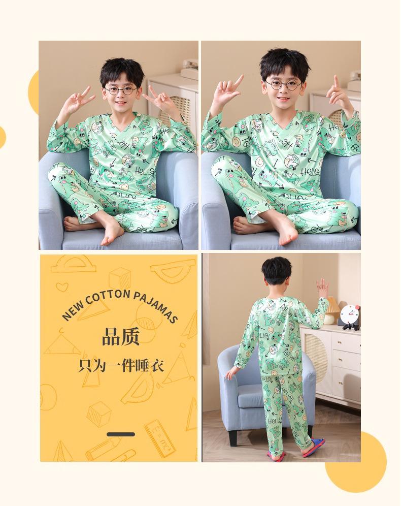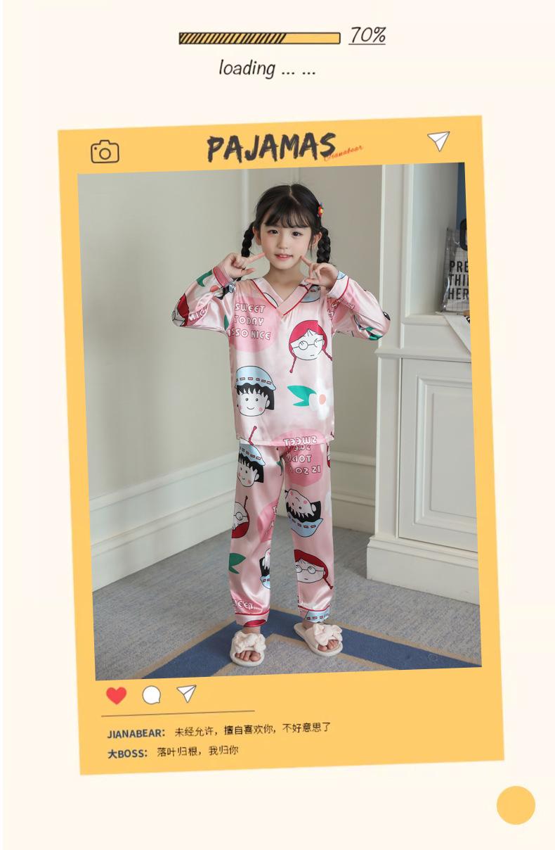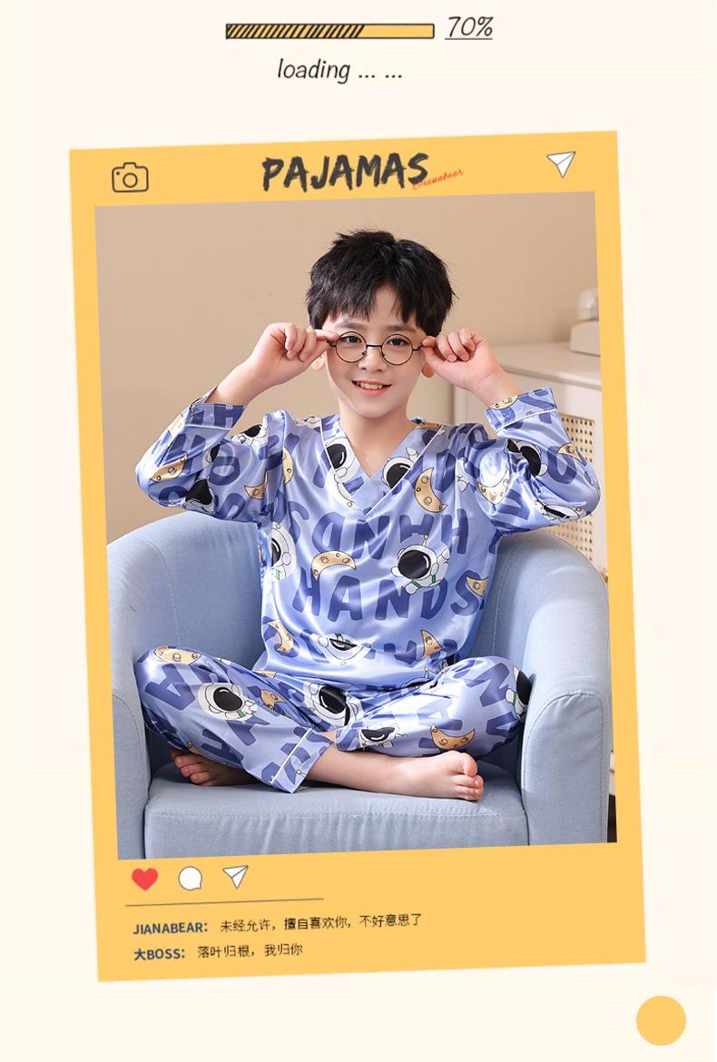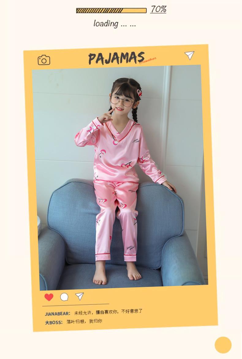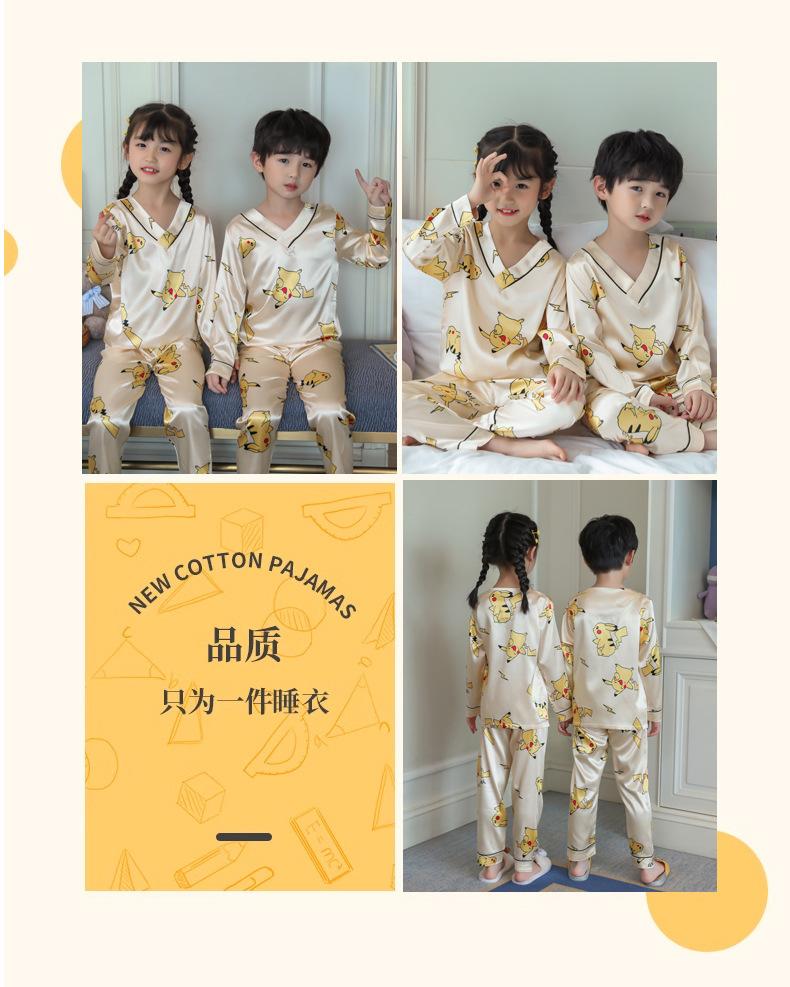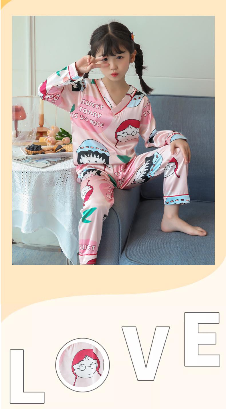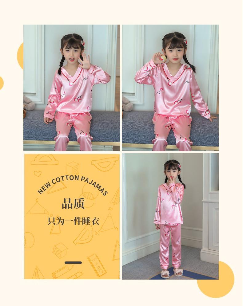 2025 Nuevo Primavera y Otoño Cuello en V Seda de Hielo Manga Larga Pijamas para Niños Niños y Niñas Dibujos Animados Traje Ropa de Casa Verano