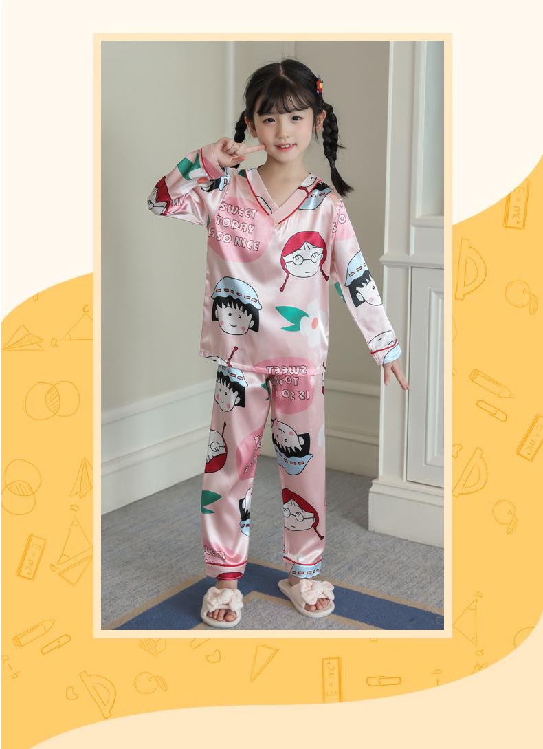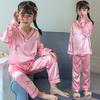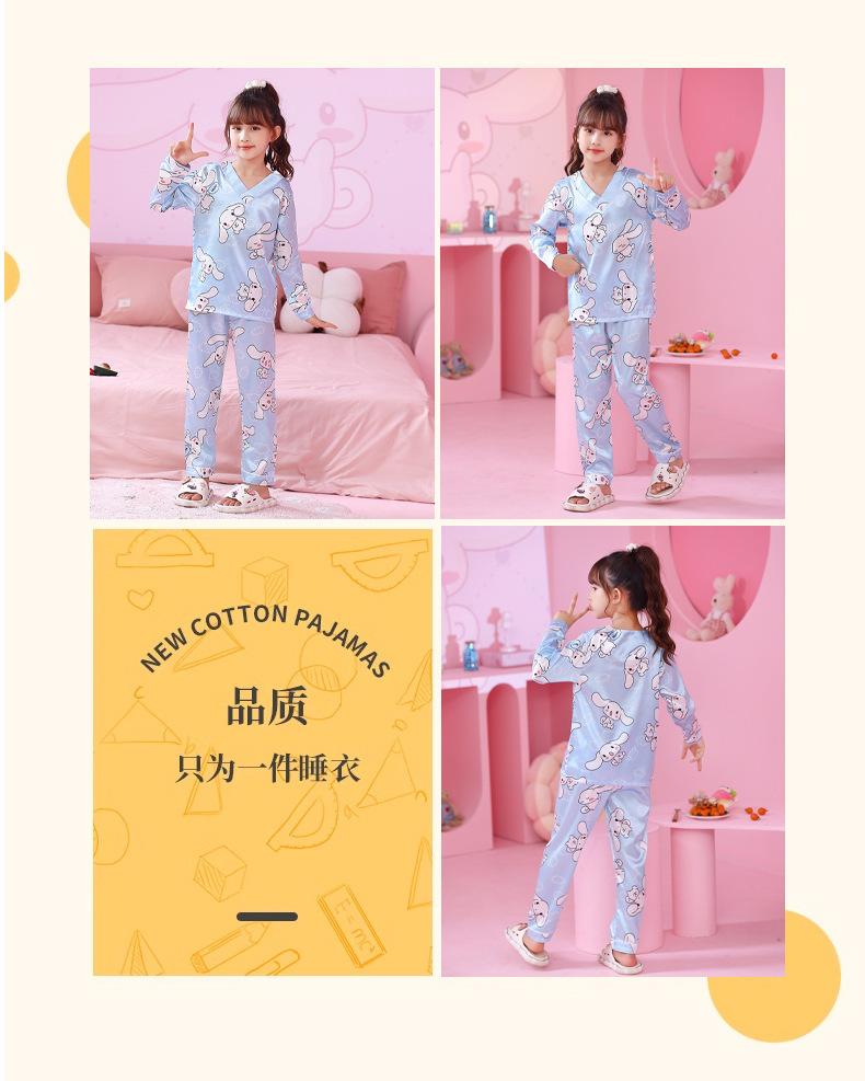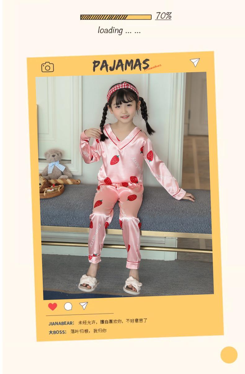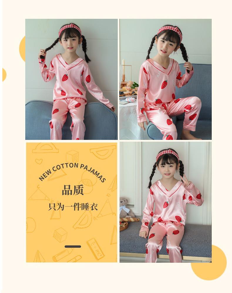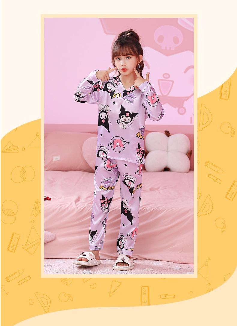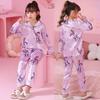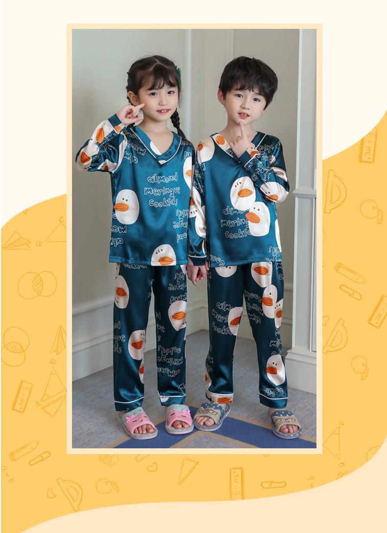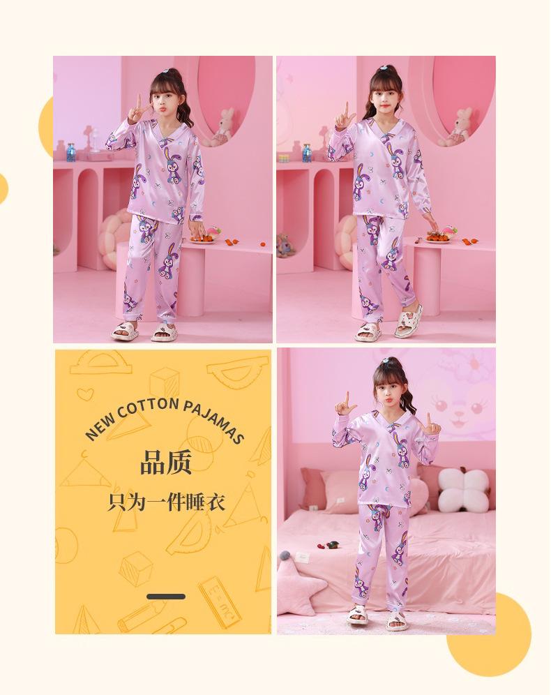 2025 Nuevo Primavera y Otoño Cuello en V Seda de Hielo Manga Larga Pijamas para Niños Niños y Niñas Dibujos Animados Traje Ropa de Casa Verano