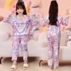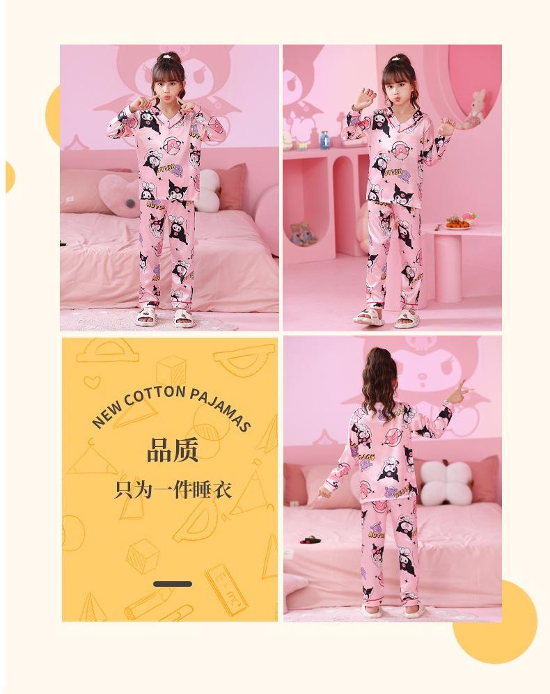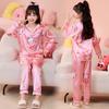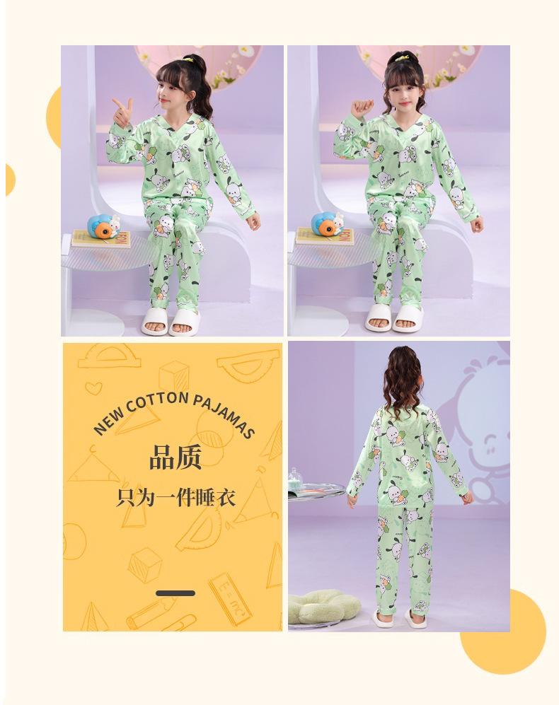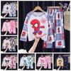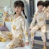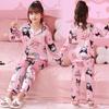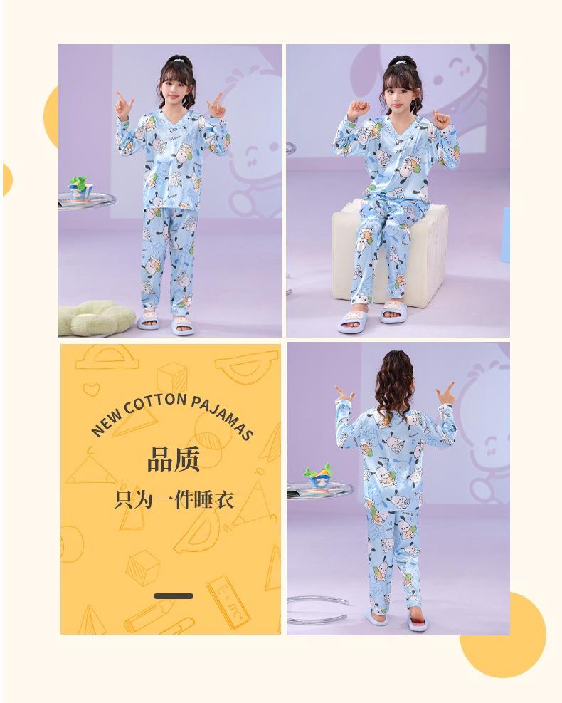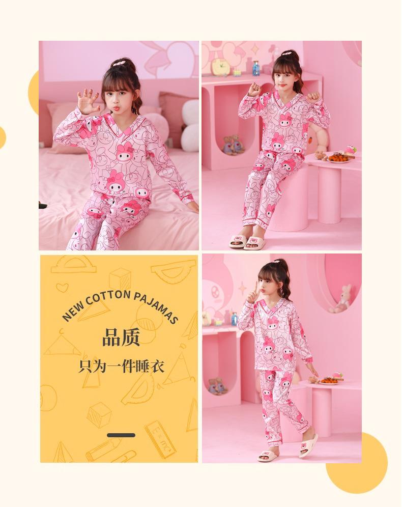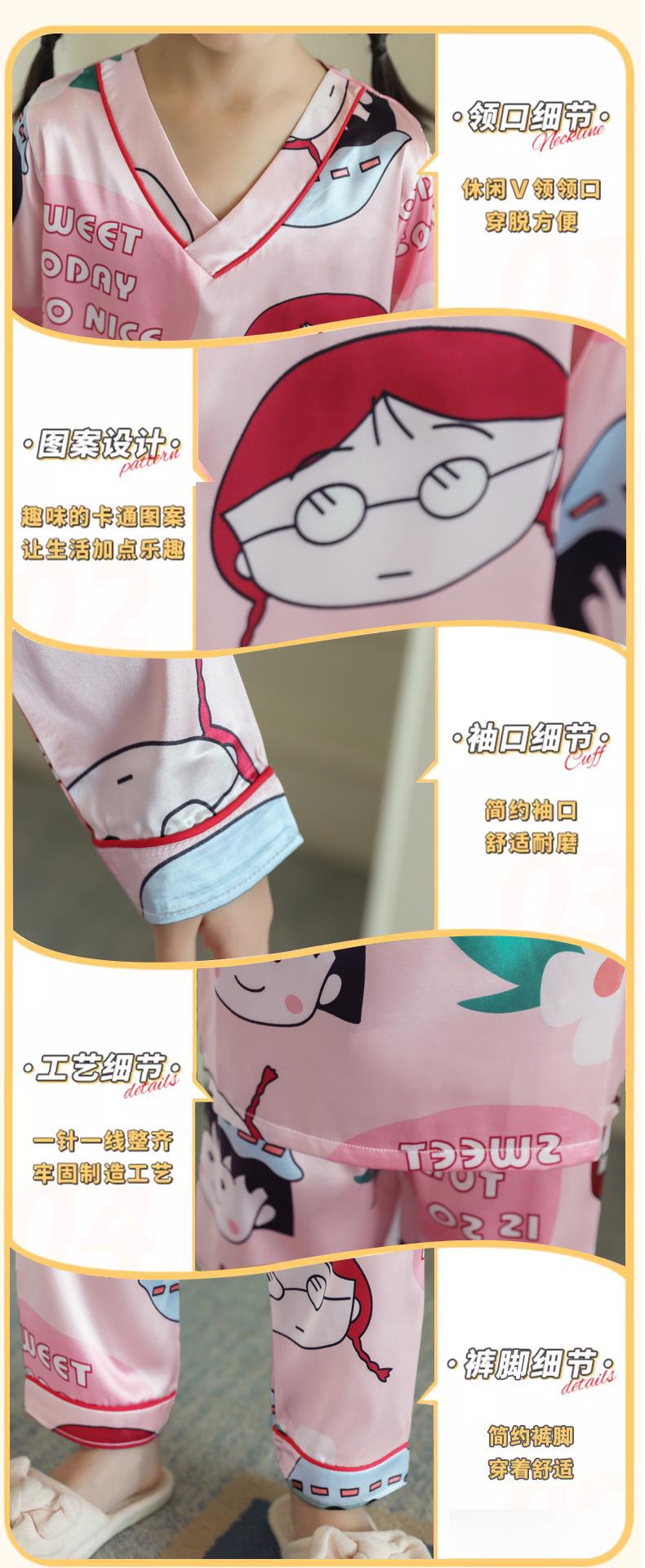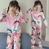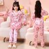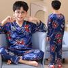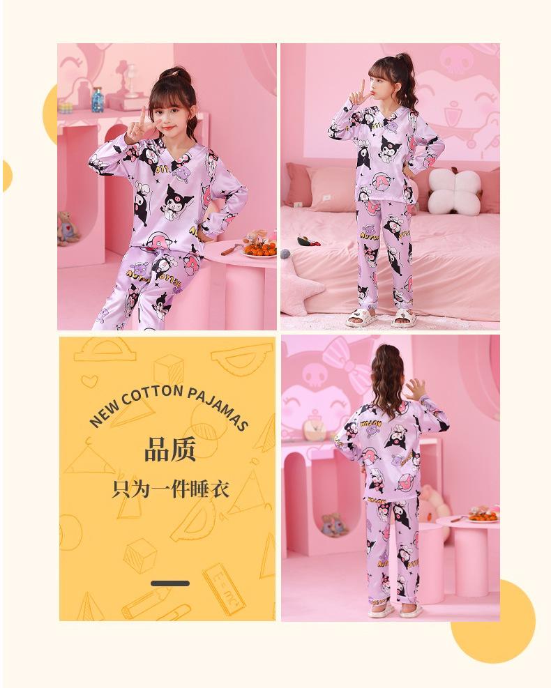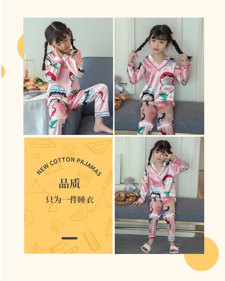2025 Nuevo Primavera y Otoño Cuello en V Seda de Hielo Manga Larga Pijamas para Niños Niños y Niñas Dibujos Animados Traje Ropa de Casa Verano