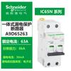 Interruptor automático de protección contra fugas integrado Schneider IC65N, interruptor de aire 2P 63A, para uso doméstico abierto con protección contra fugas.