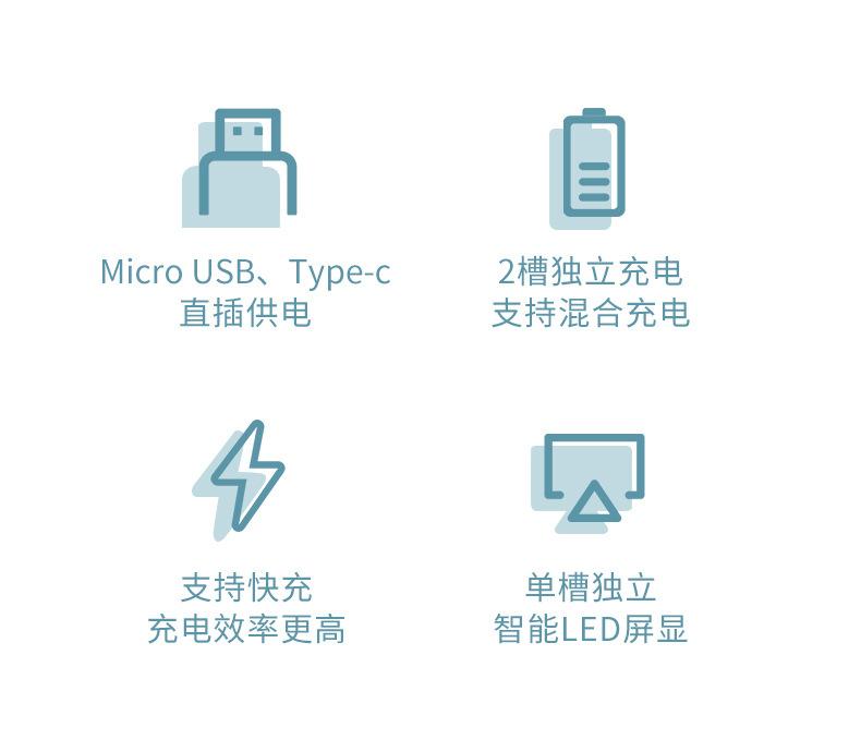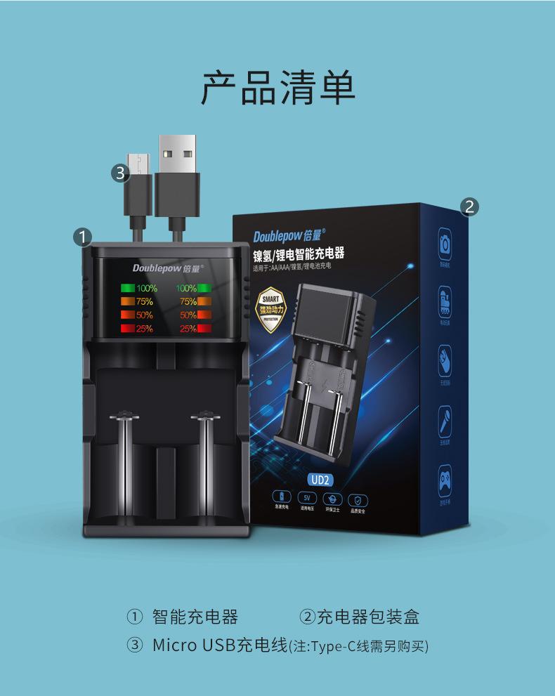 Cargador de Pantalla Inteligente Recargable Múltiple No. 5 No. 7 Batería de Litio Ni-Mh 3.7V USB y Tipo-C