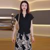 Camisa elegante de nicho chic con cuello en V francés, manga larga y malla bordada tridimensional pura y exquisita para mujer, primavera y otoño
