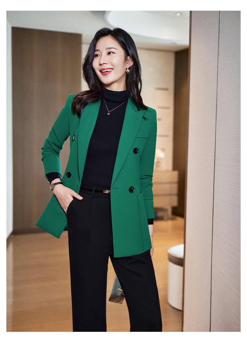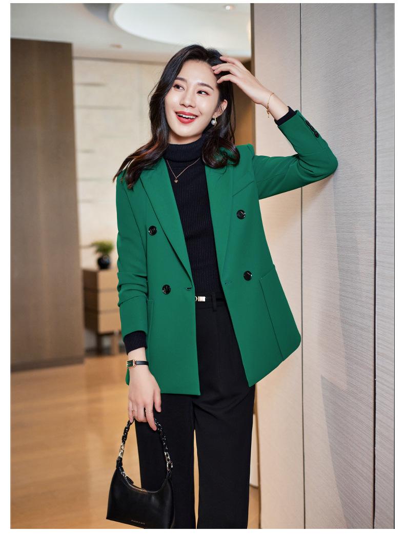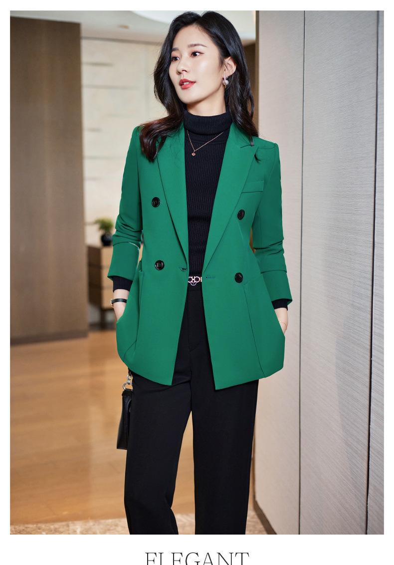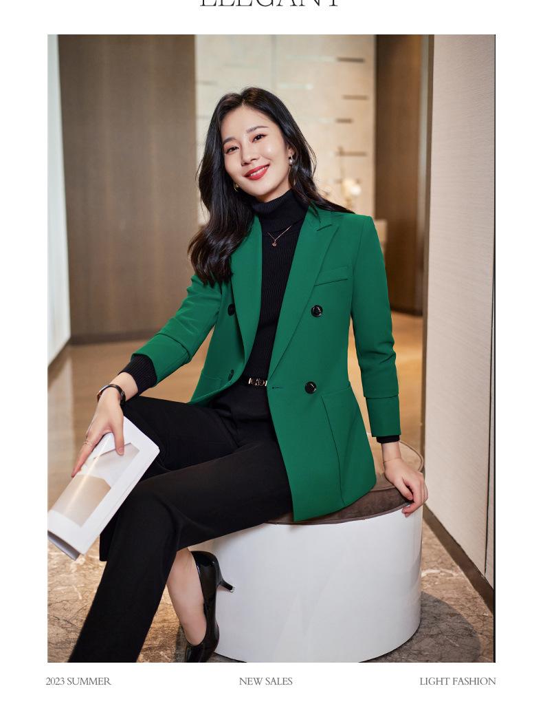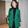 Abrigo de cuello pequeño de manga larga sencillo, informal, elegante, profesional, verde, para otoño e invierno de 2023 para mujer