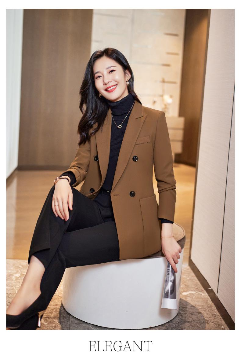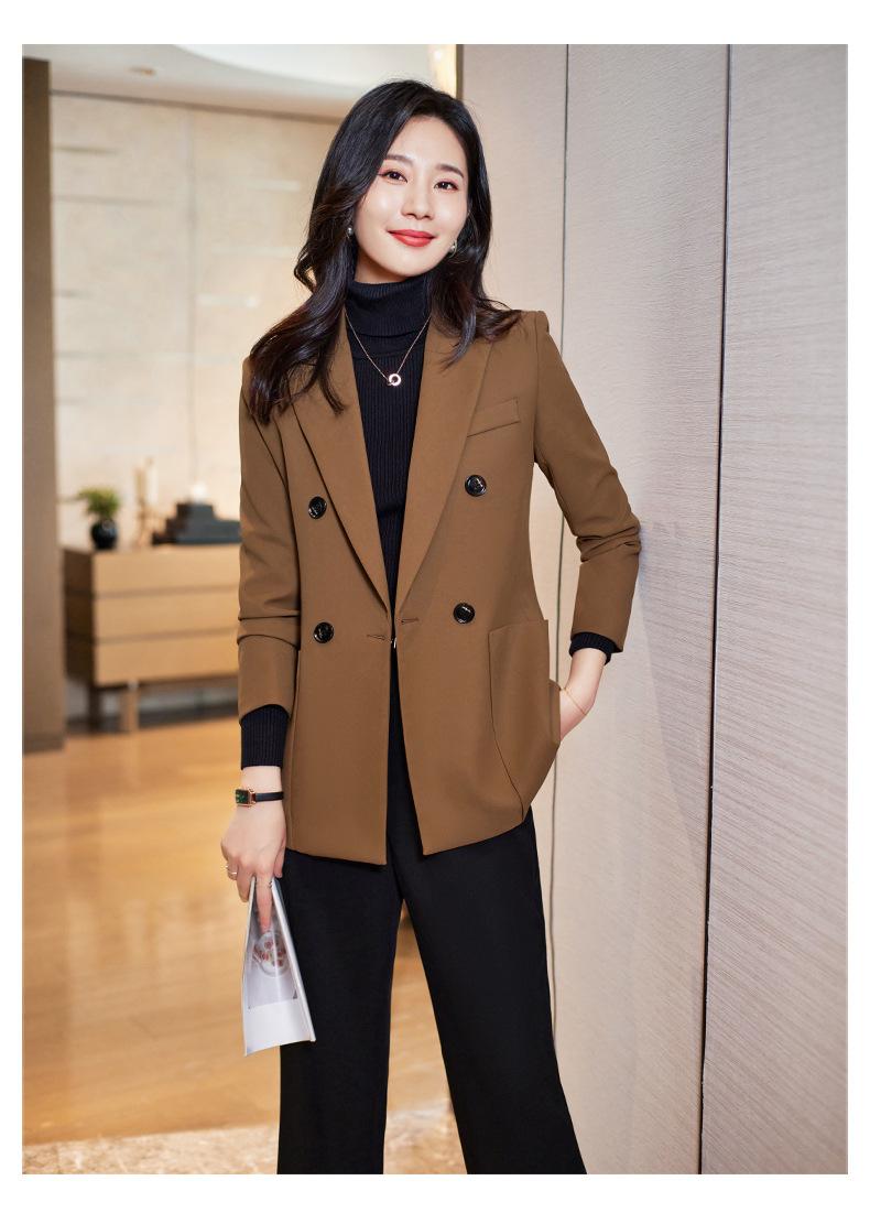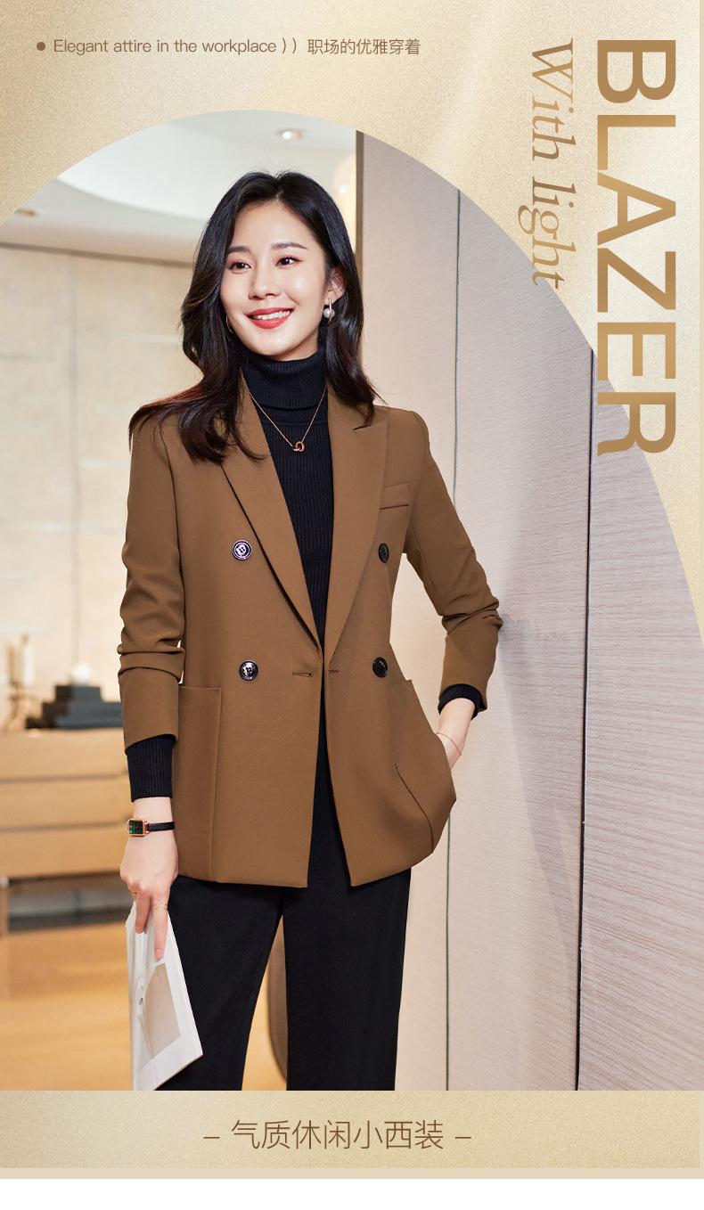 Abrigo de cuello pequeño de manga larga sencillo, informal, elegante, profesional, verde, para otoño e invierno de 2023 para mujer