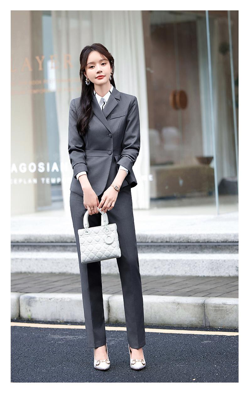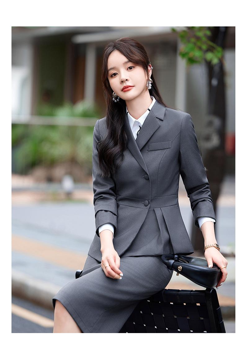 Traje gris profesional de manga larga para mujer, primavera, otoño e invierno, 24 años, abrigo, camisa, pantalones, falda, traje de unidad de negocios