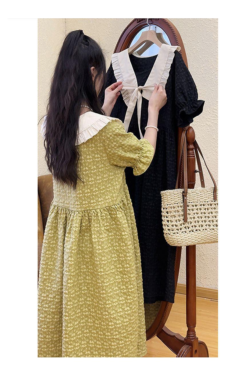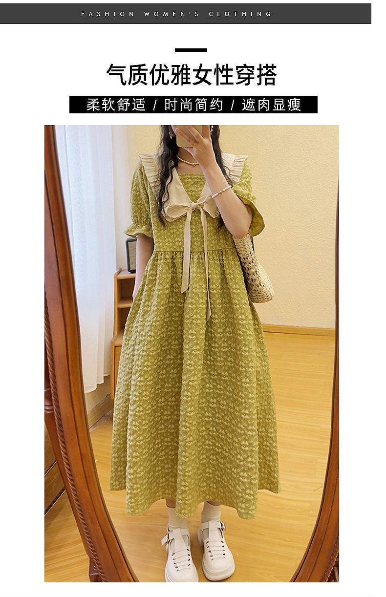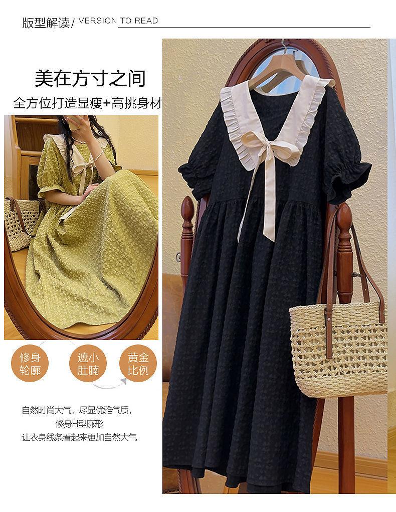 Dulce Vestido Jacquard Francés con Cuello de Muñeca Talla Grande Cubre la Carne y Cubre la Entrepierna para Hacerte Delgada y a la Moda Falda Sobre la Rodilla 2025 Verano Nuevo