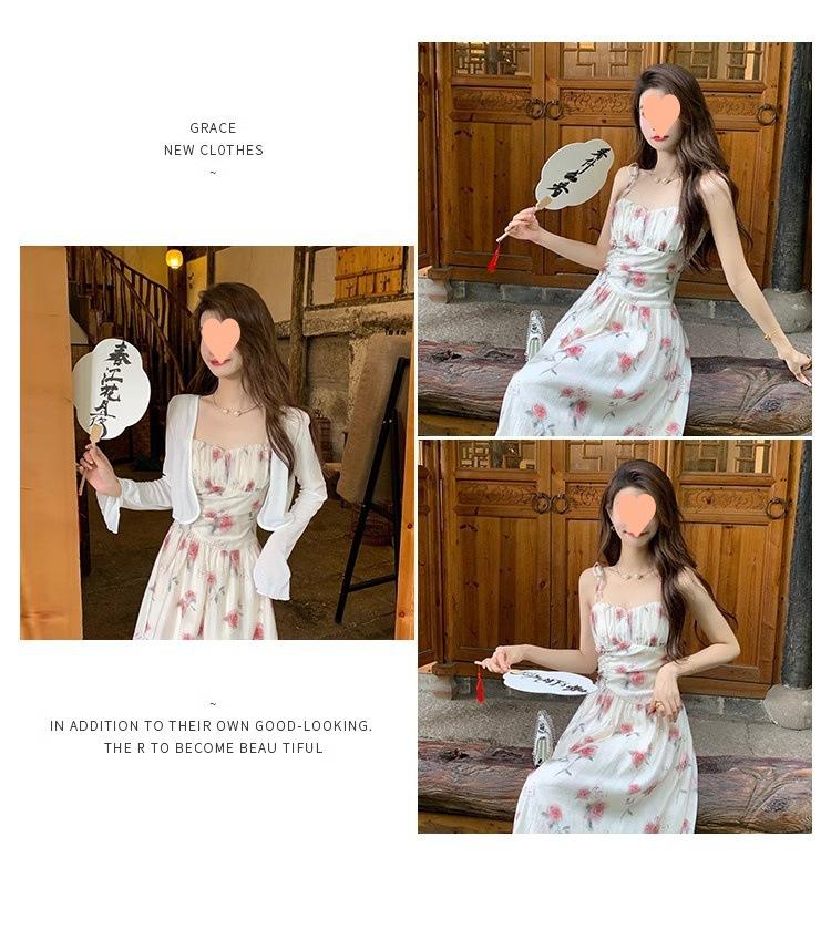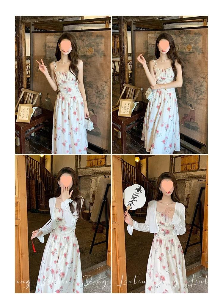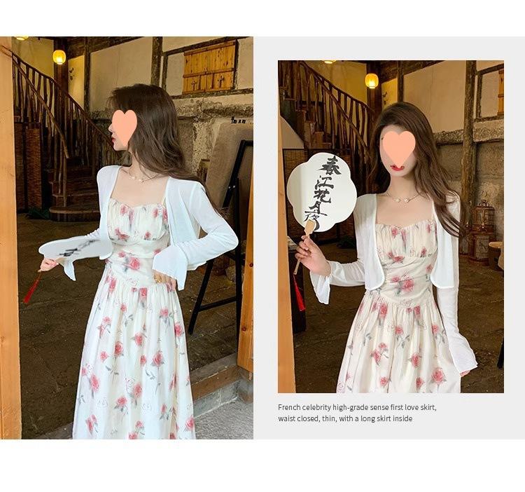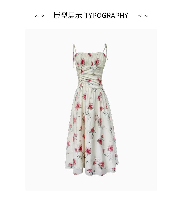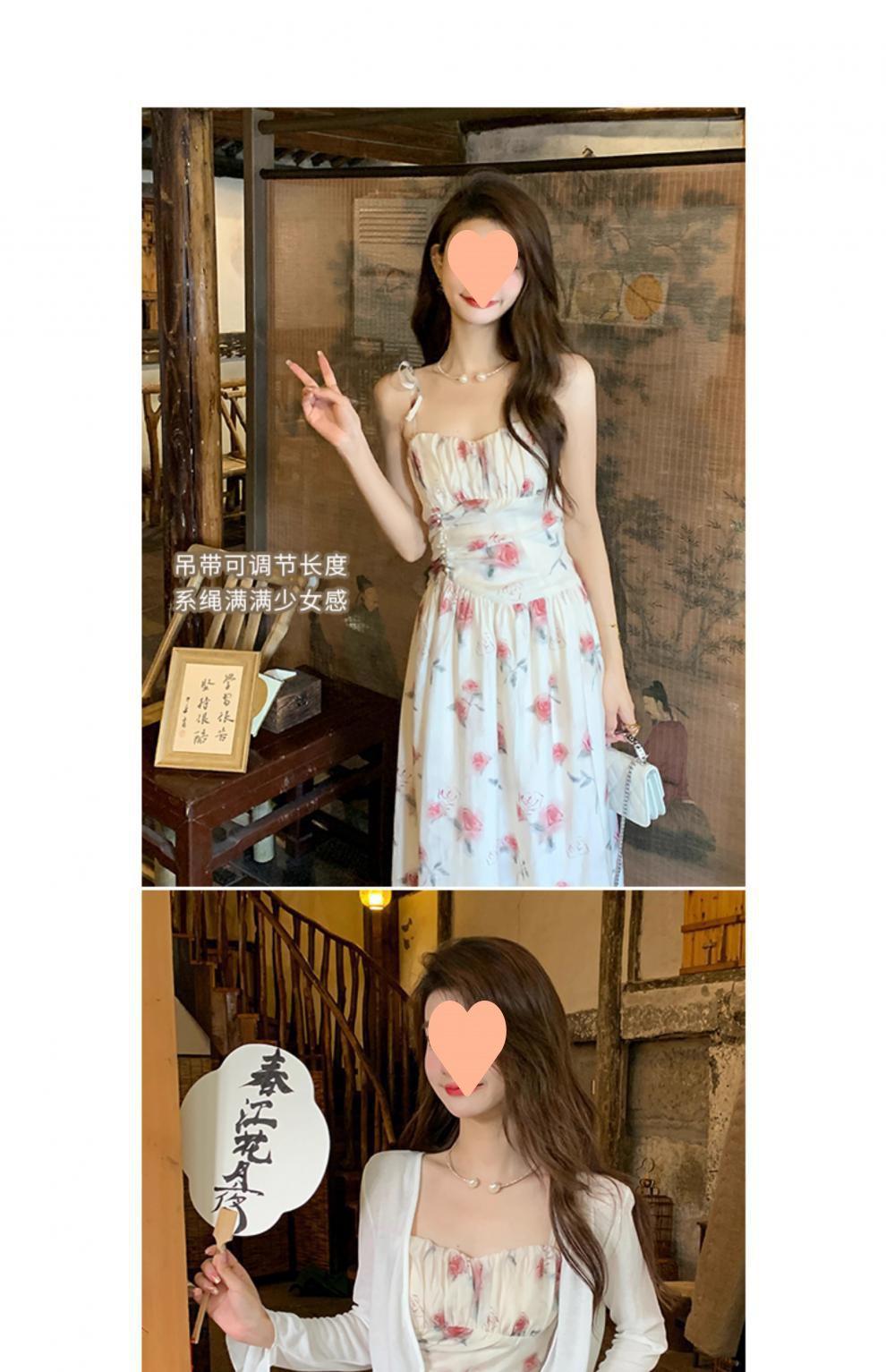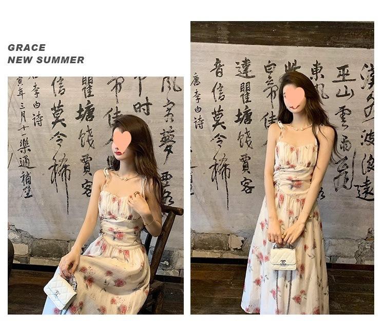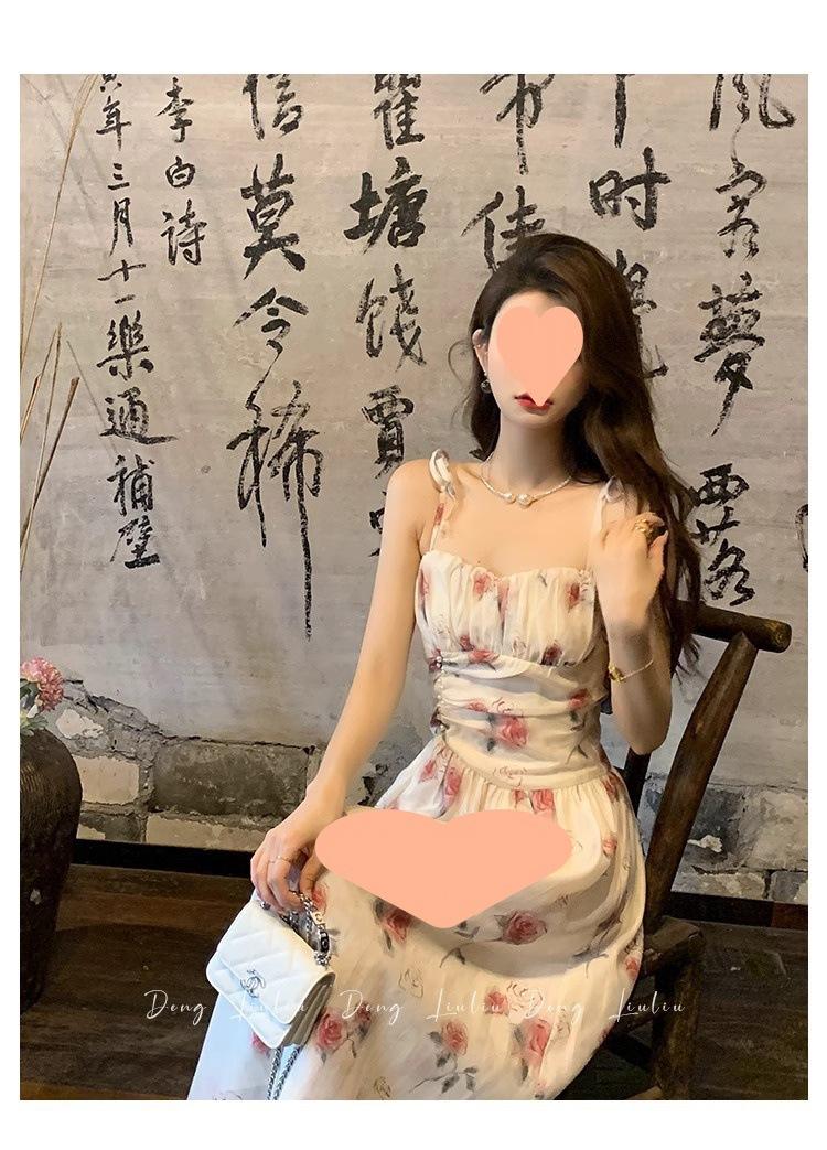 Vestido romántico para el descanso del té, verano, nuevo, con tirantes, rosa, cintura francesa, floral, para vacaciones en la playa, falda de hada