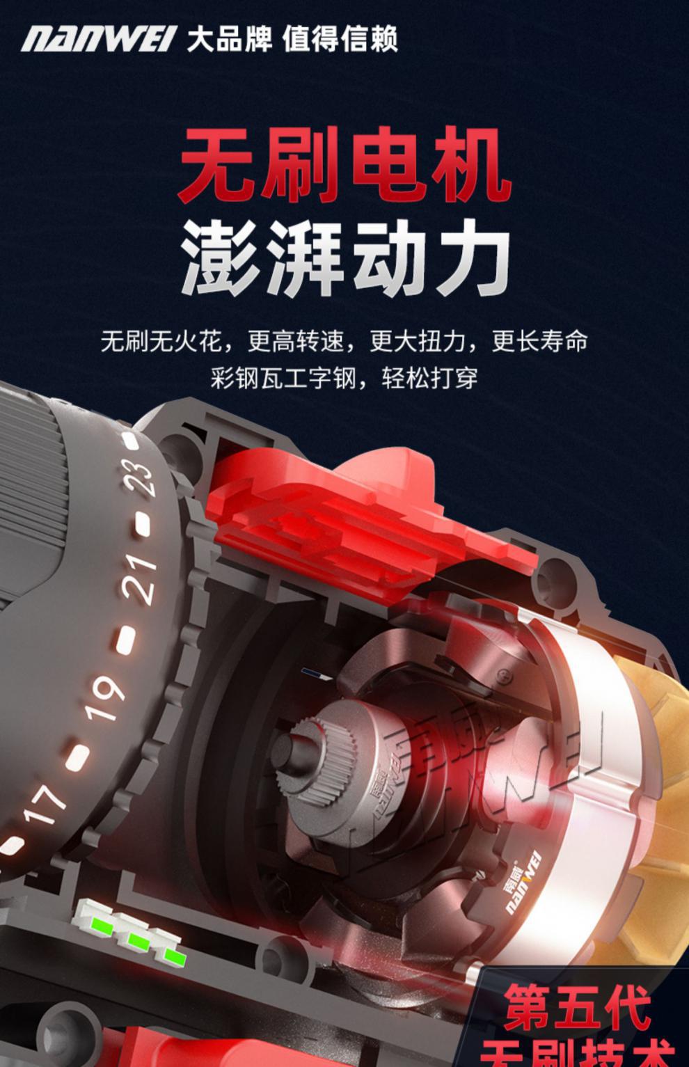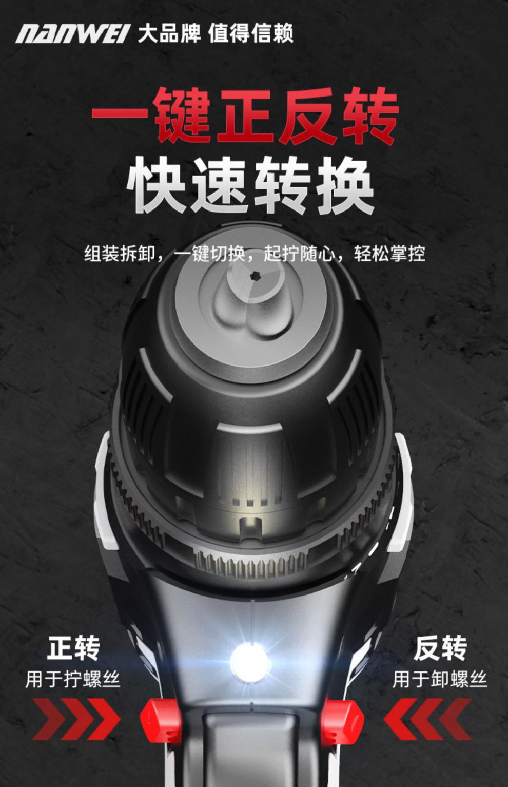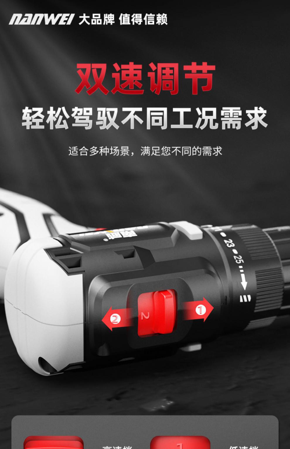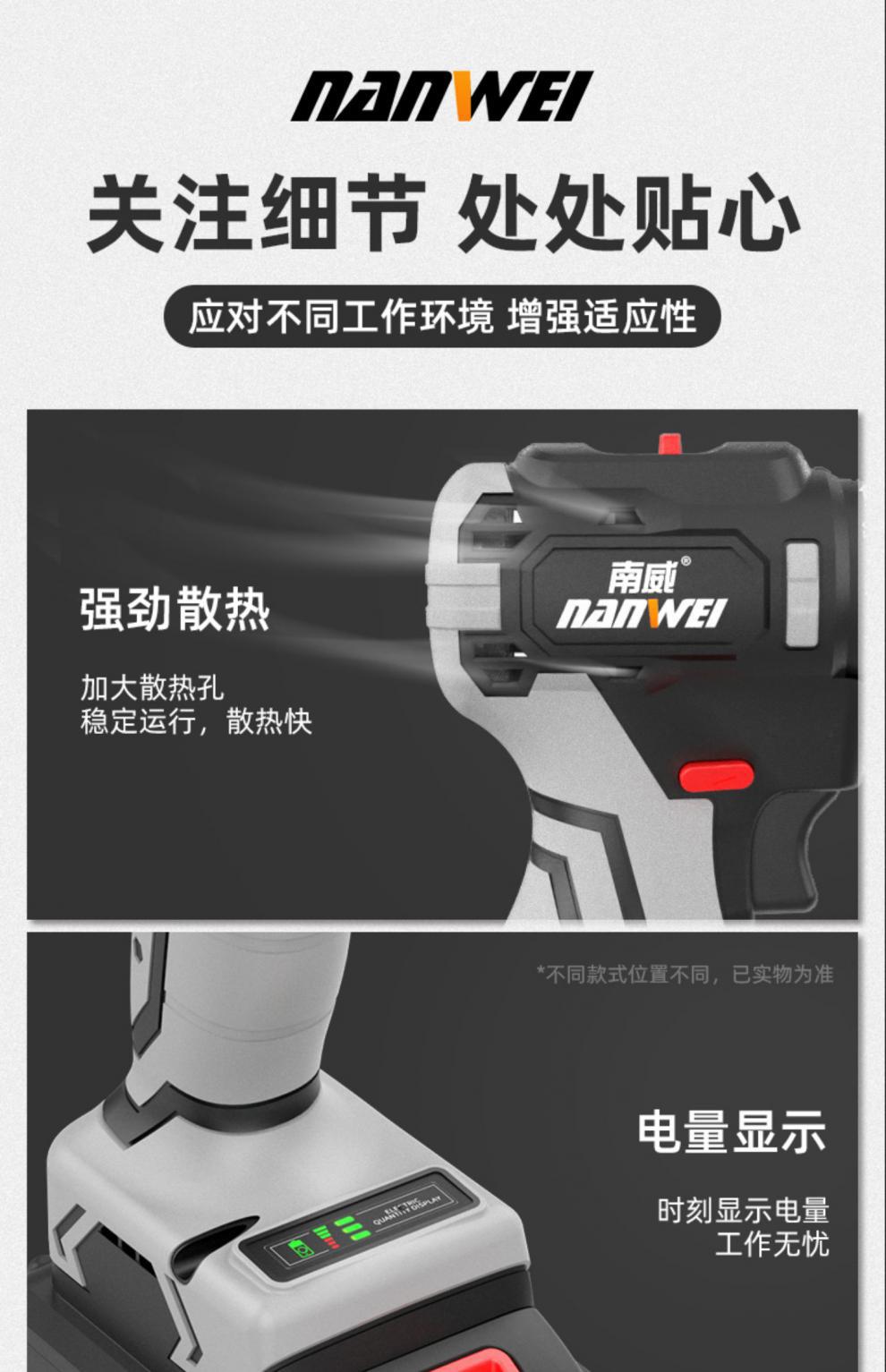 Taladro Eléctrico de Litio Inalámbrico sin Escobillas Nanwei Taladro de Mano Doméstico Atornillador Eléctrico Taladro de Pistola Recargable Multifunción Taladro Eléctrico de Litio
