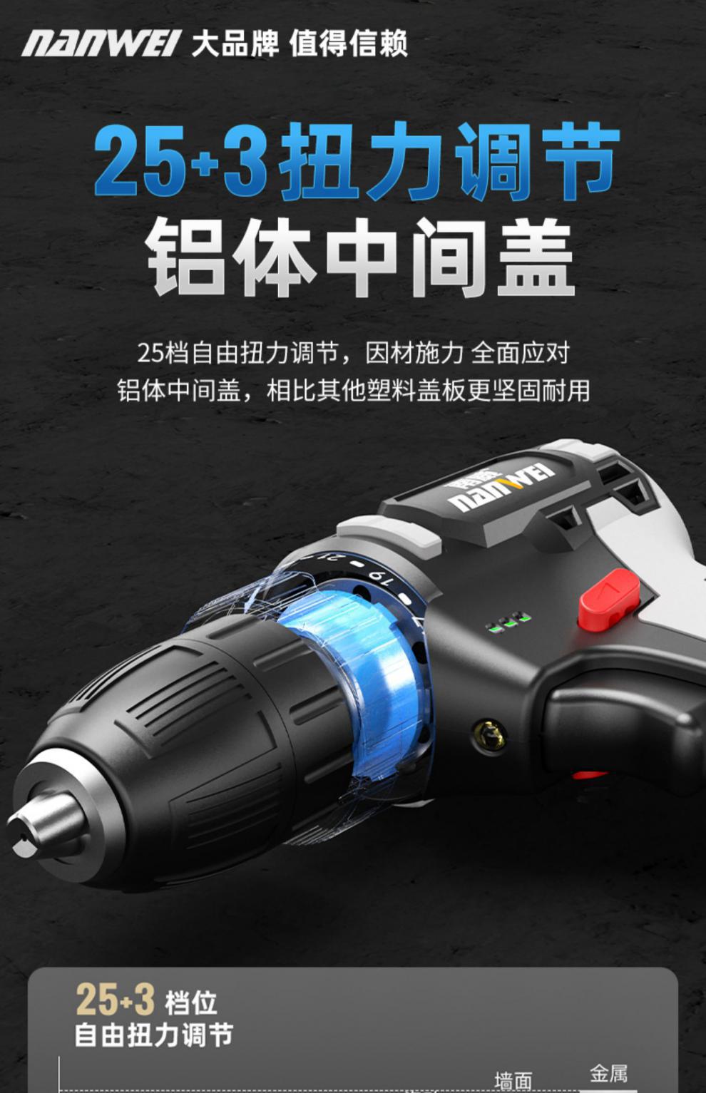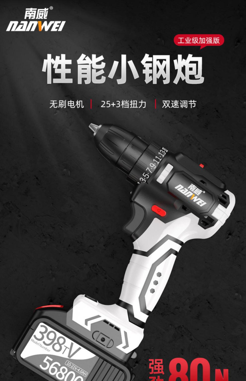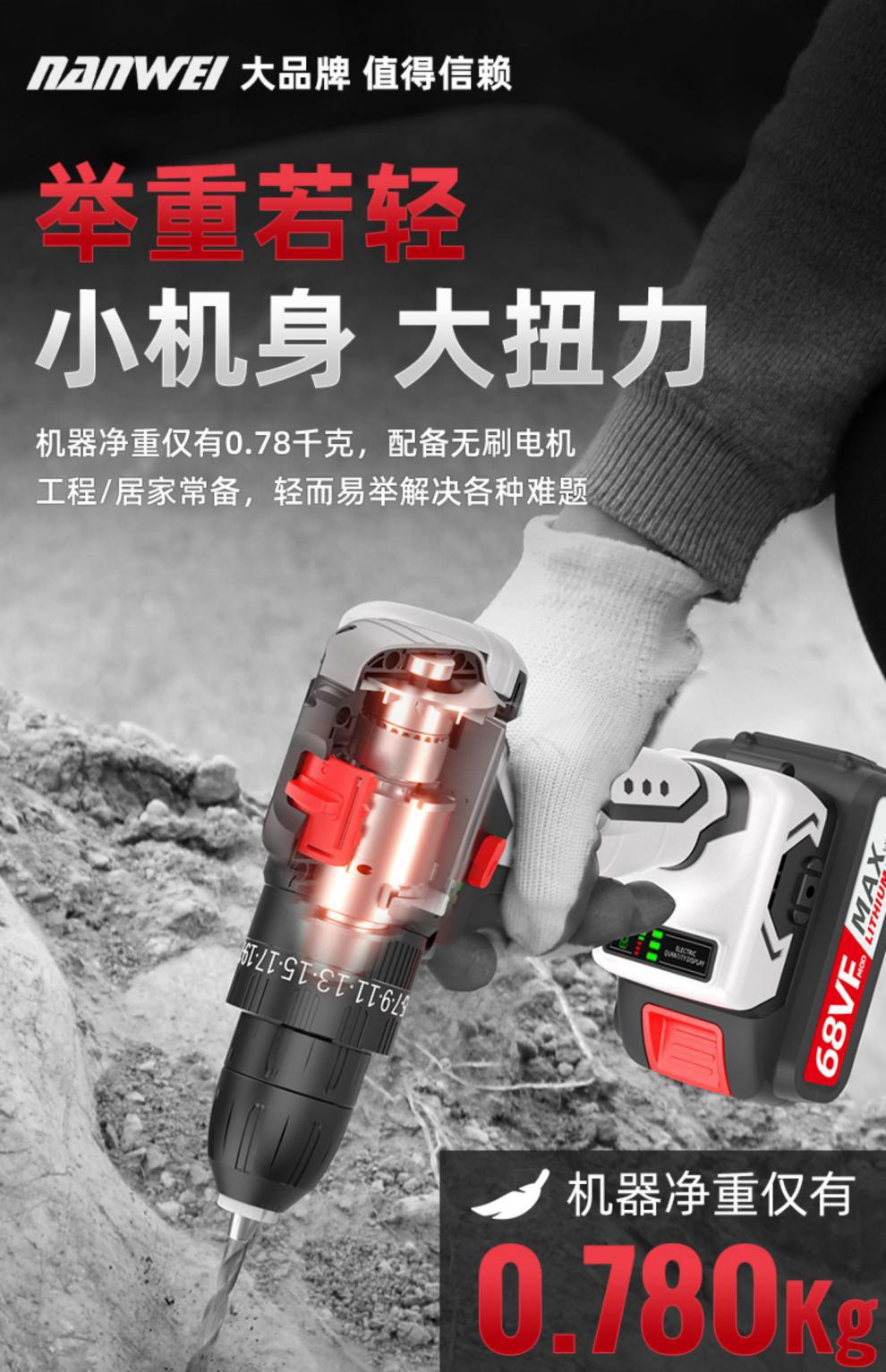 Taladro Eléctrico de Litio Inalámbrico sin Escobillas Nanwei Taladro de Mano Doméstico Atornillador Eléctrico Taladro de Pistola Recargable Multifunción Taladro Eléctrico de Litio