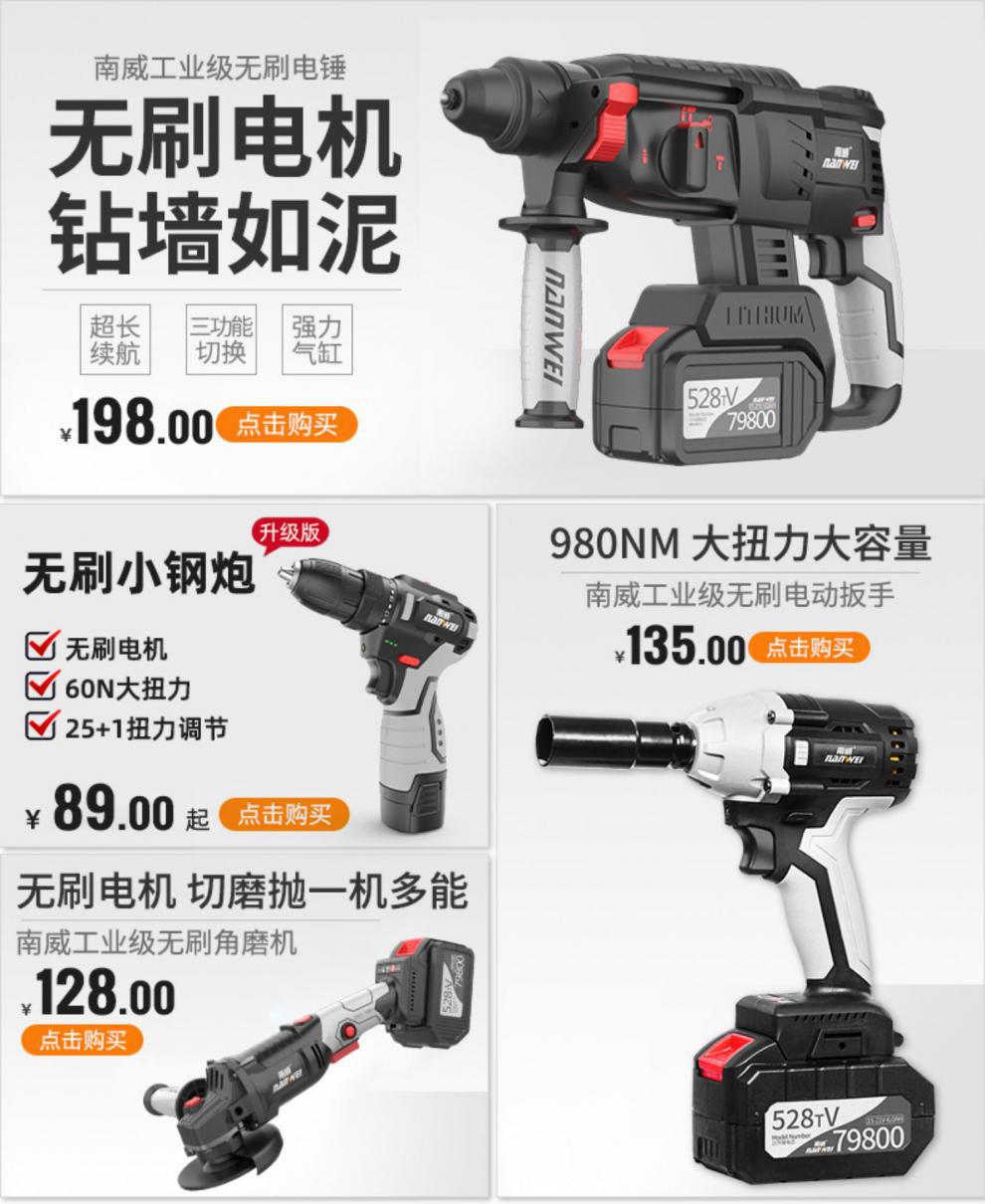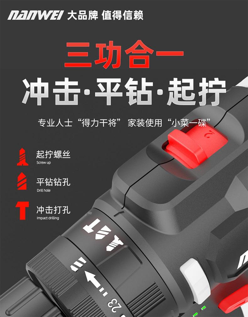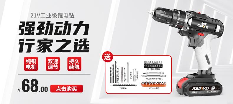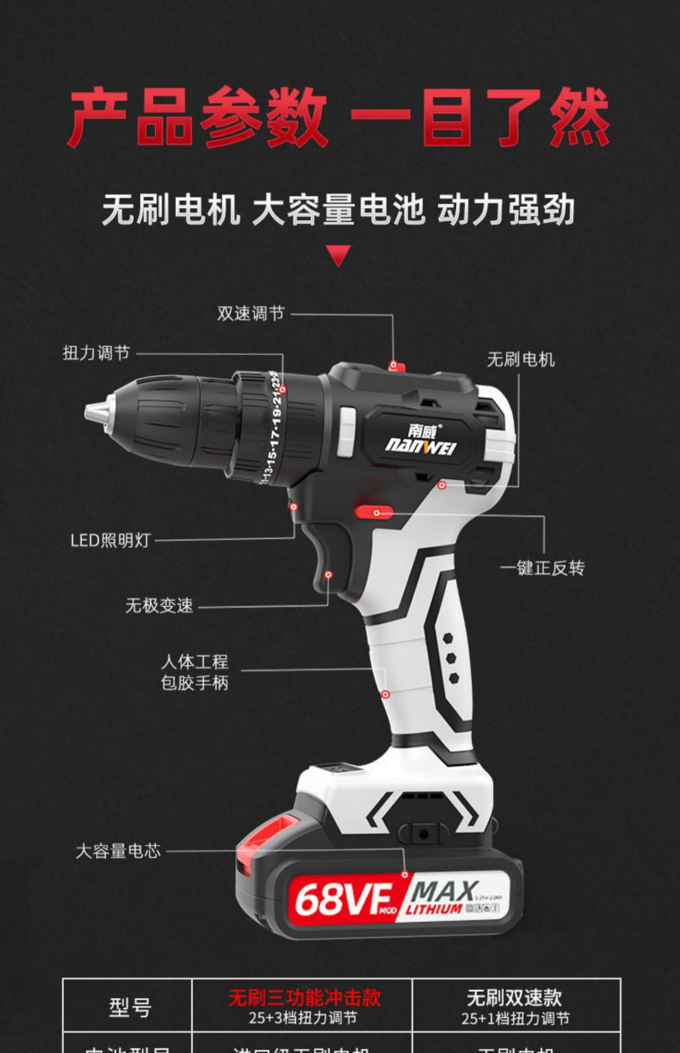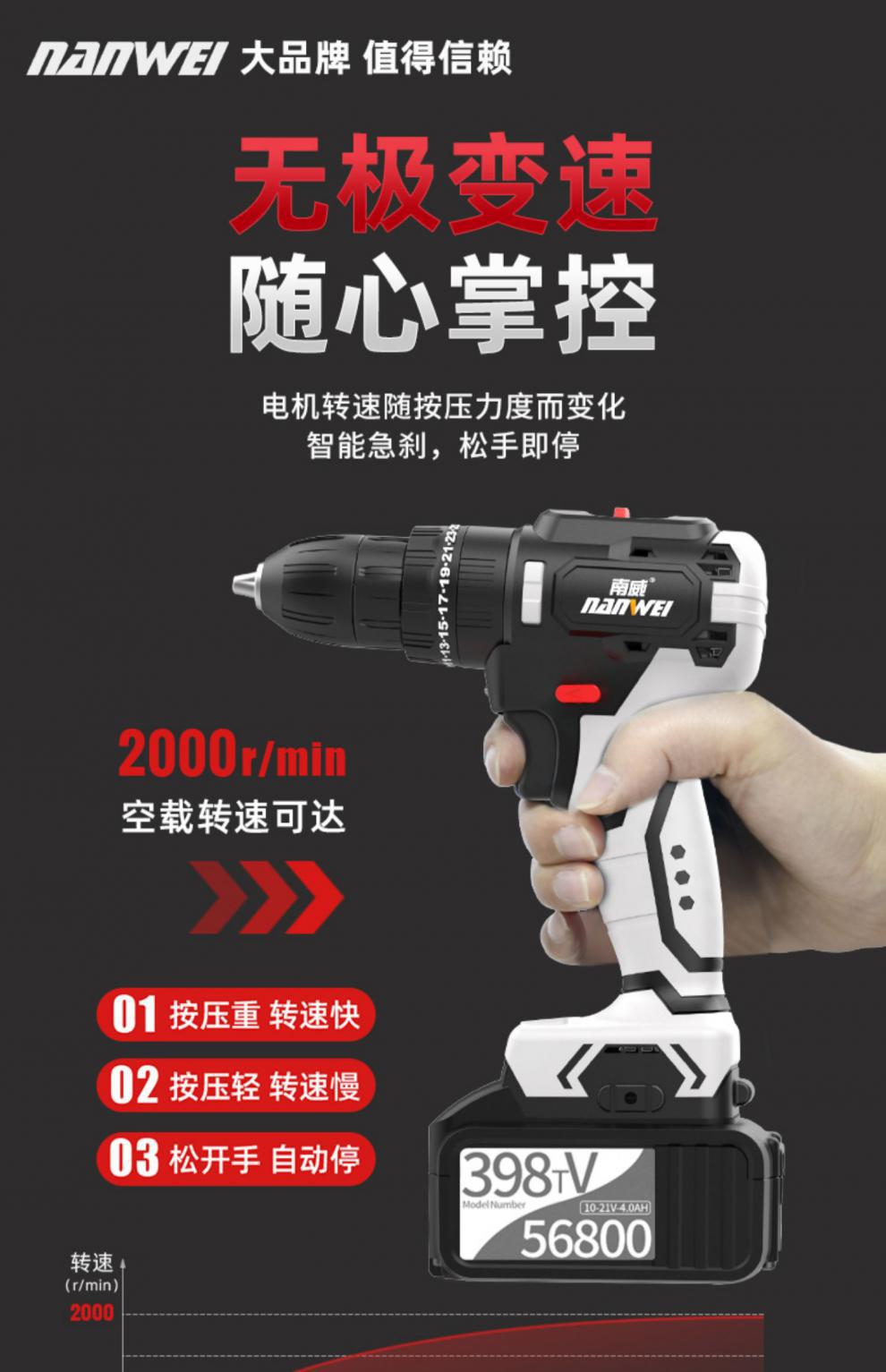 Taladro Eléctrico de Litio Inalámbrico sin Escobillas Nanwei Taladro de Mano Doméstico Atornillador Eléctrico Taladro de Pistola Recargable Multifunción Taladro Eléctrico de Litio