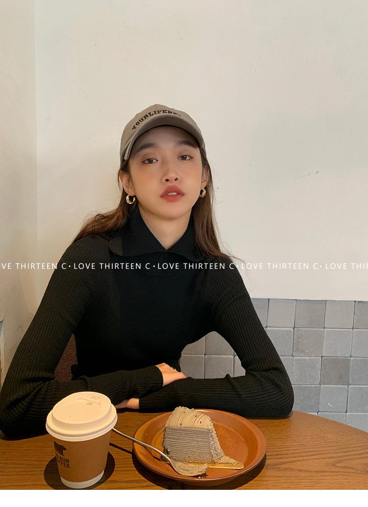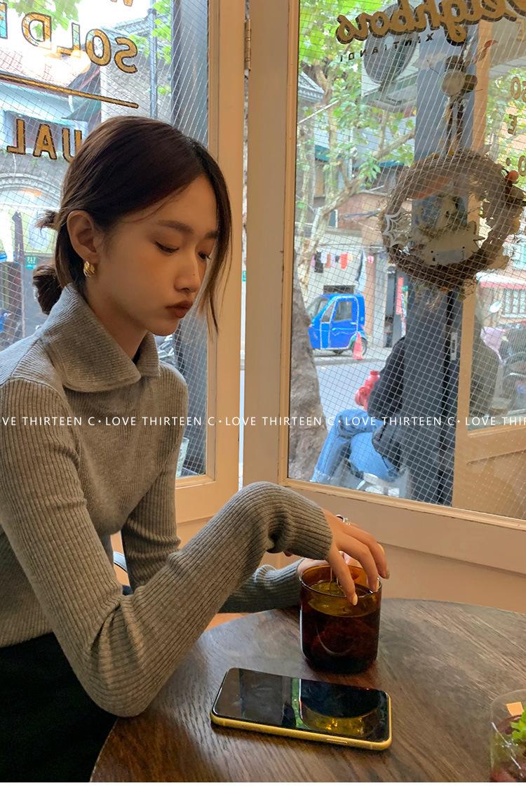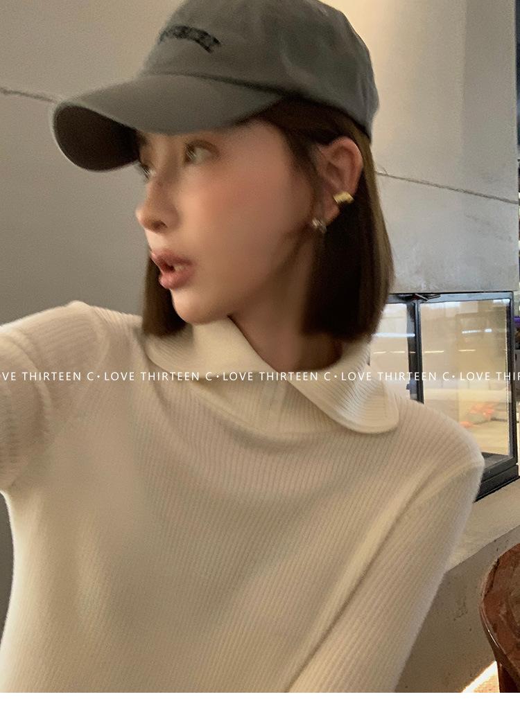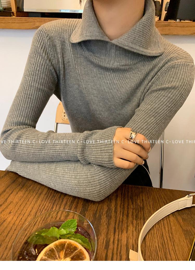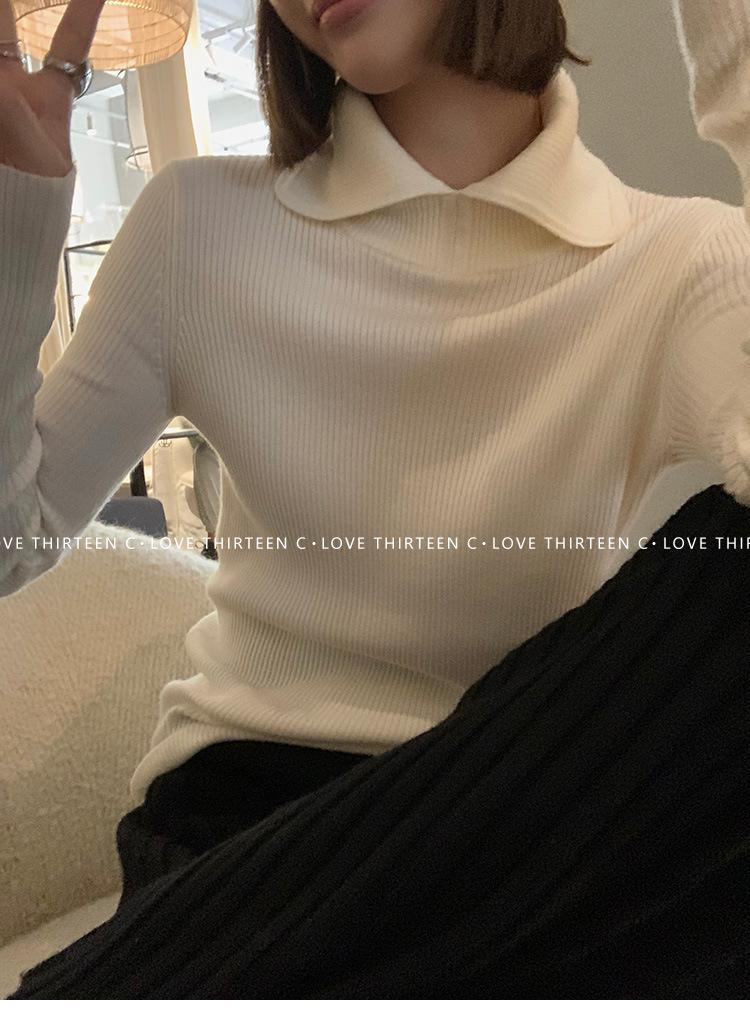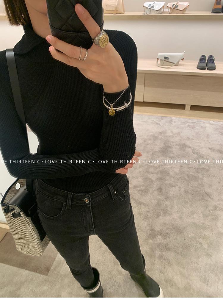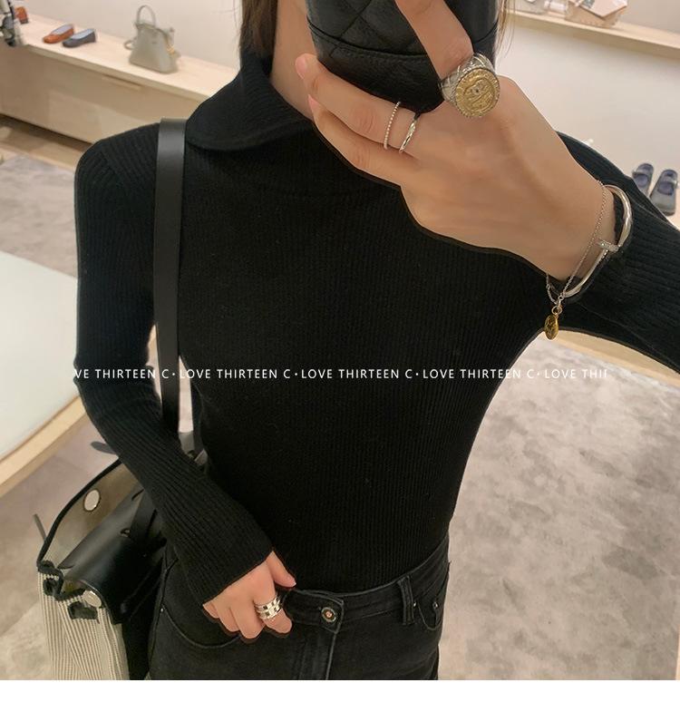En stock/13 Camiseta Base Tejida de Solapa para Mujer Otoño e Invierno Nueva Combinación Total Ajustada Básica de Lana Jersey Top