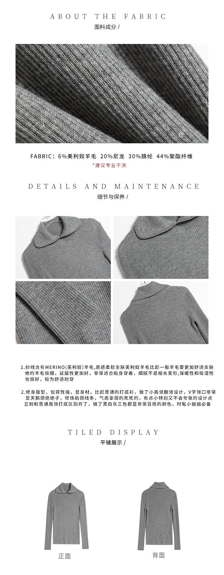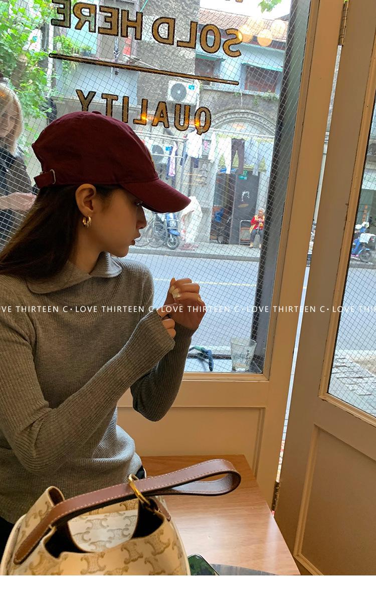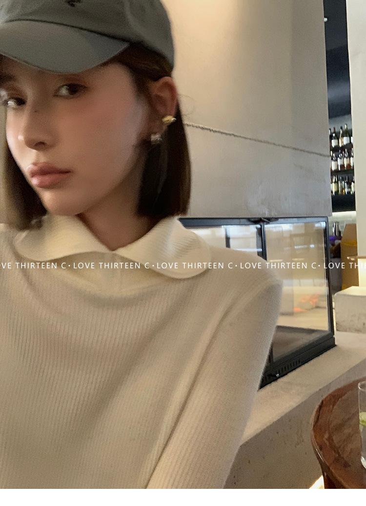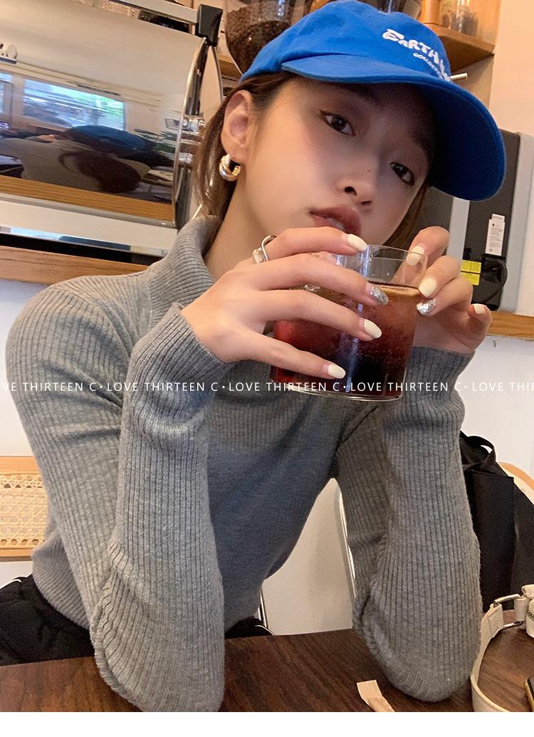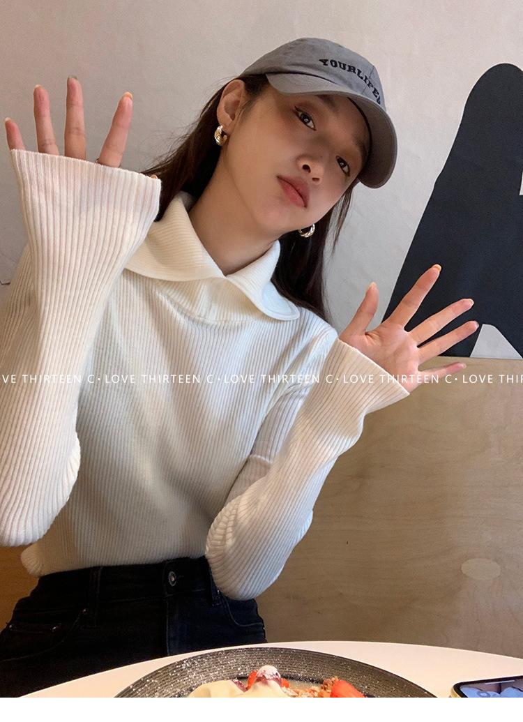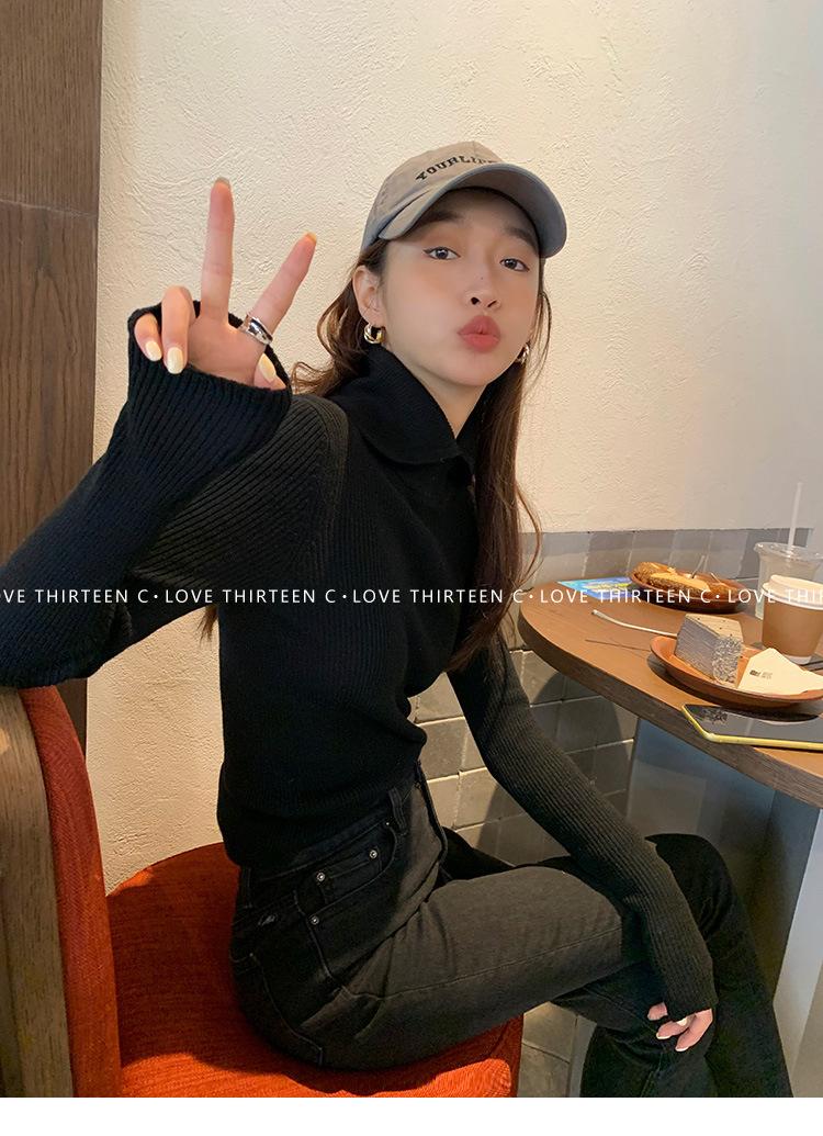 En stock/13 Camiseta Base Tejida de Solapa para Mujer Otoño e Invierno Nueva Combinación Total Ajustada Básica de Lana Jersey Top