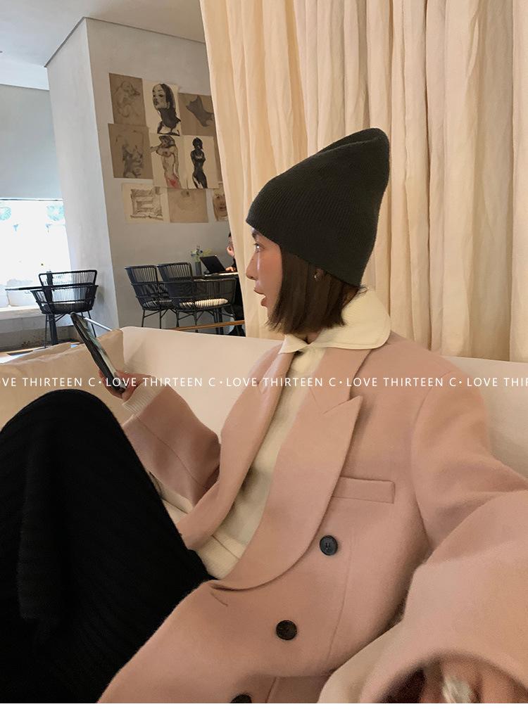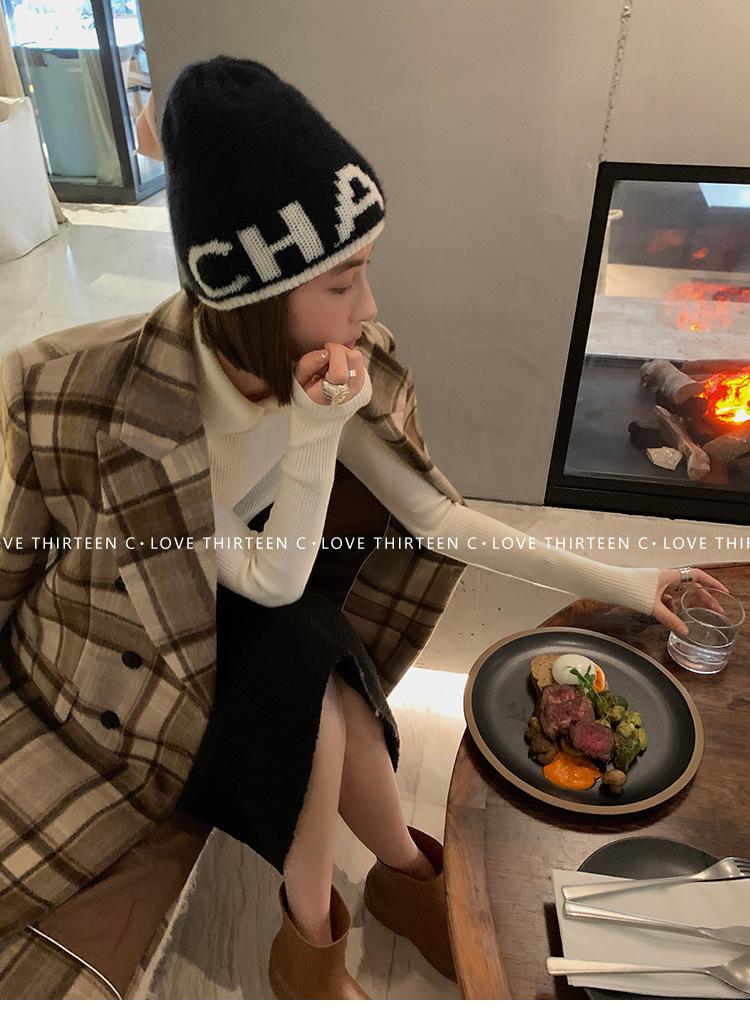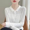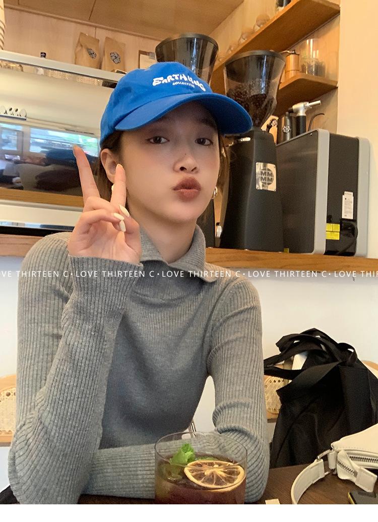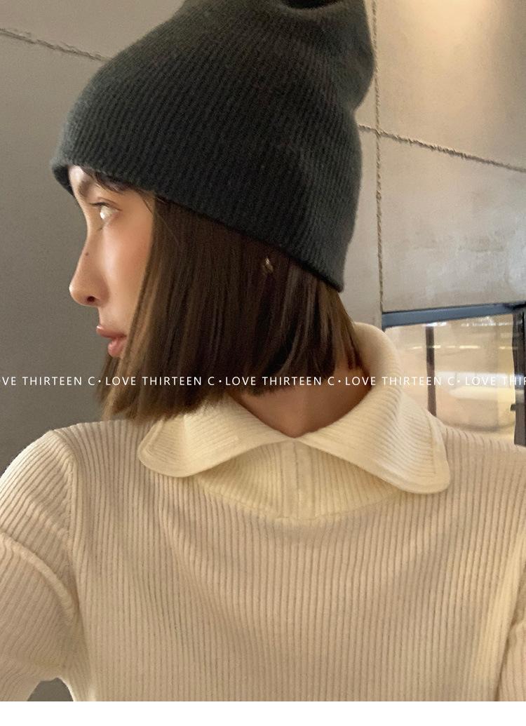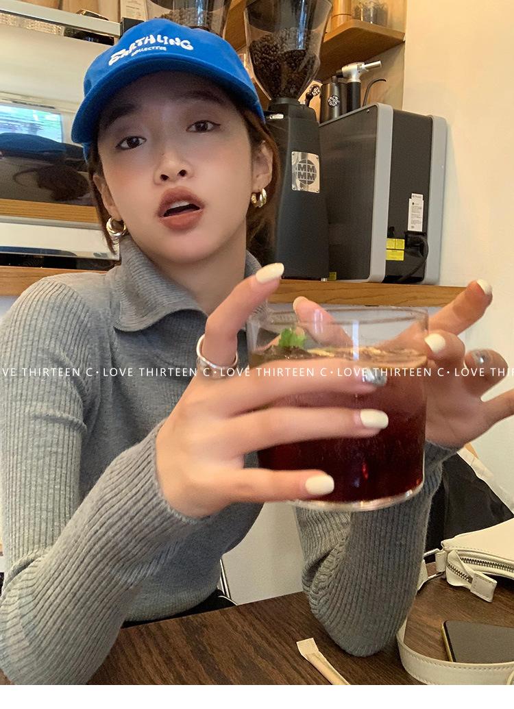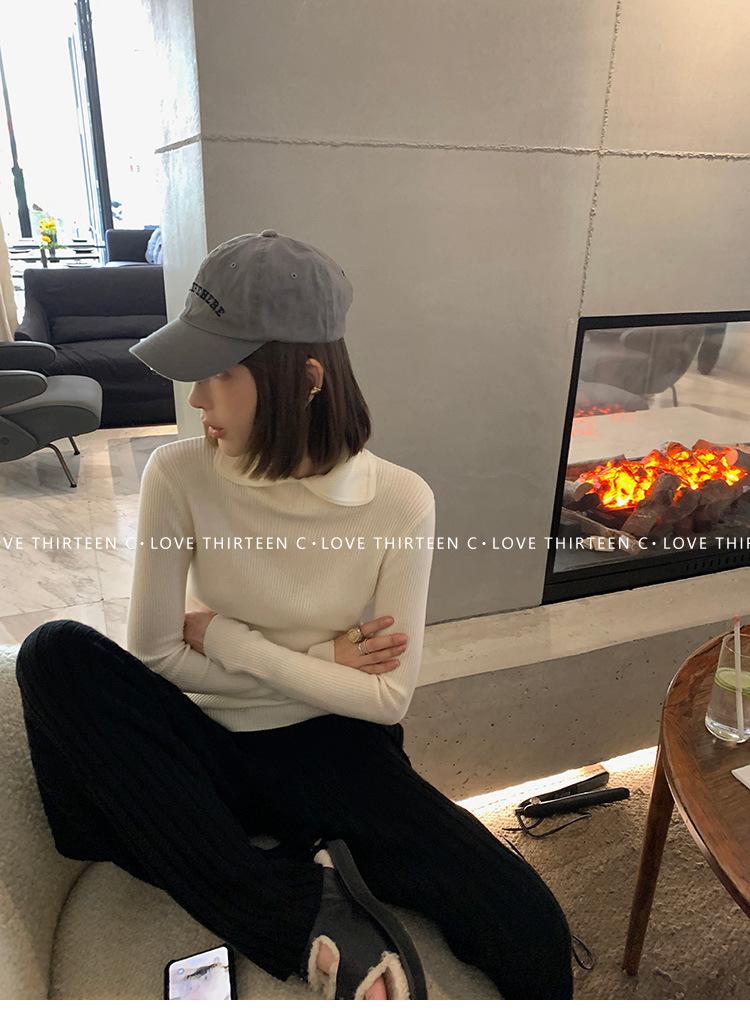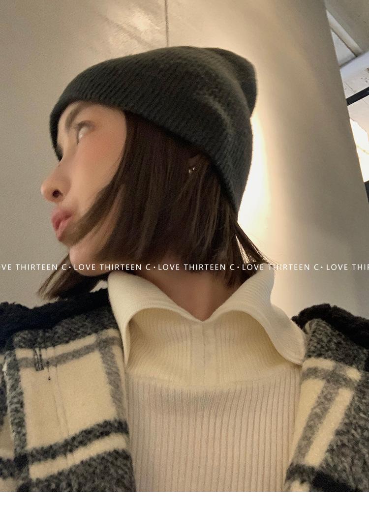 En stock/13 Camiseta Base Tejida de Solapa para Mujer Otoño e Invierno Nueva Combinación Total Ajustada Básica de Lana Jersey Top