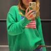 Amazon Europeo y Americano Transfronterizo Otoño e Invierno Aliexpress Nuevo Suéter de Punto Versátil de Talla Grande con Patrón de Cuello Redondo Suelto