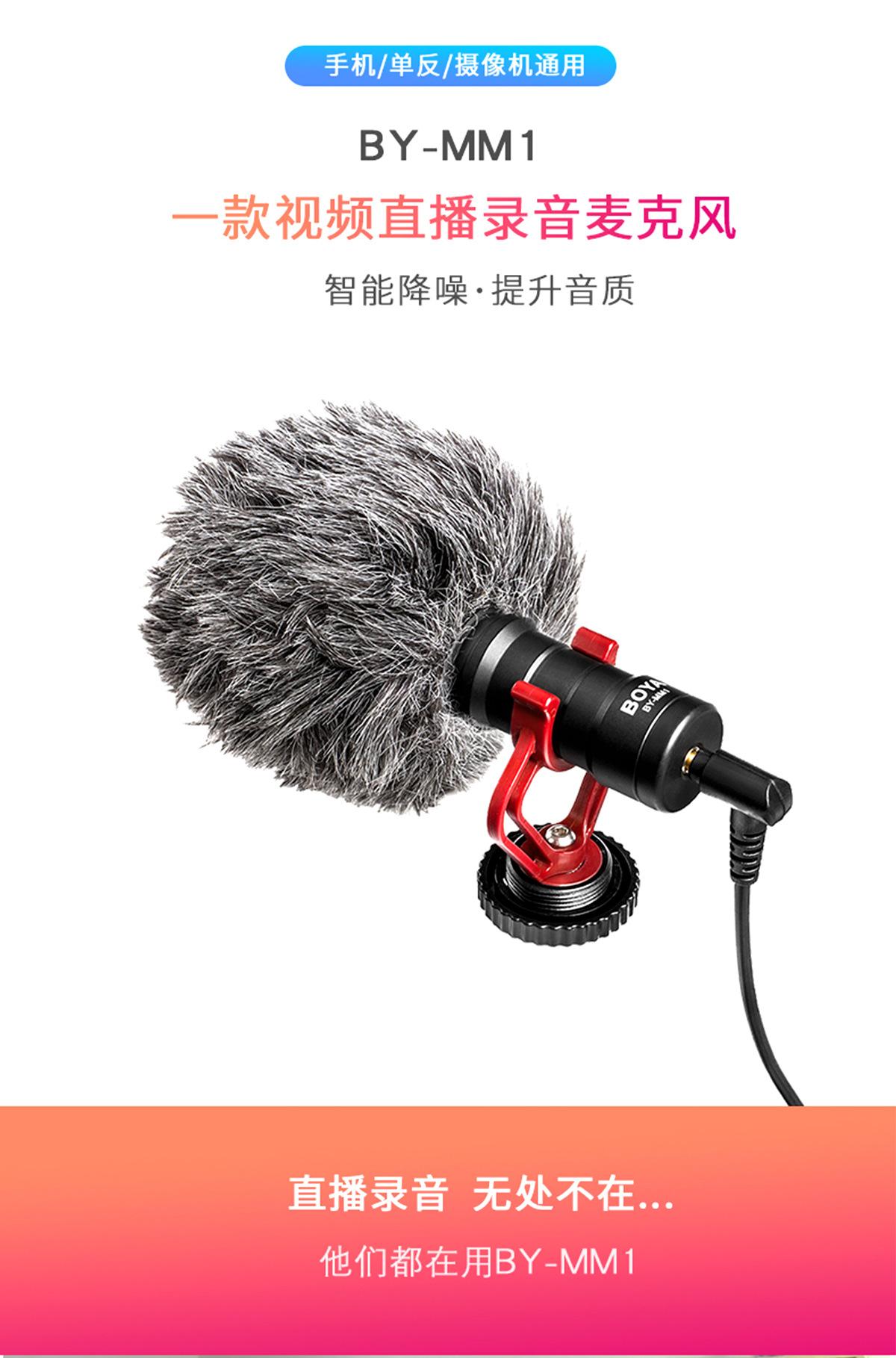 BOYA BY-MM1 Cámara móvil BOYA en vivo adecuada para entrevistas SLR, grabación con micrófono, micrófono de condensador