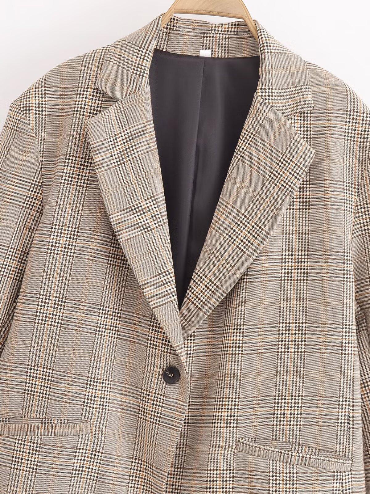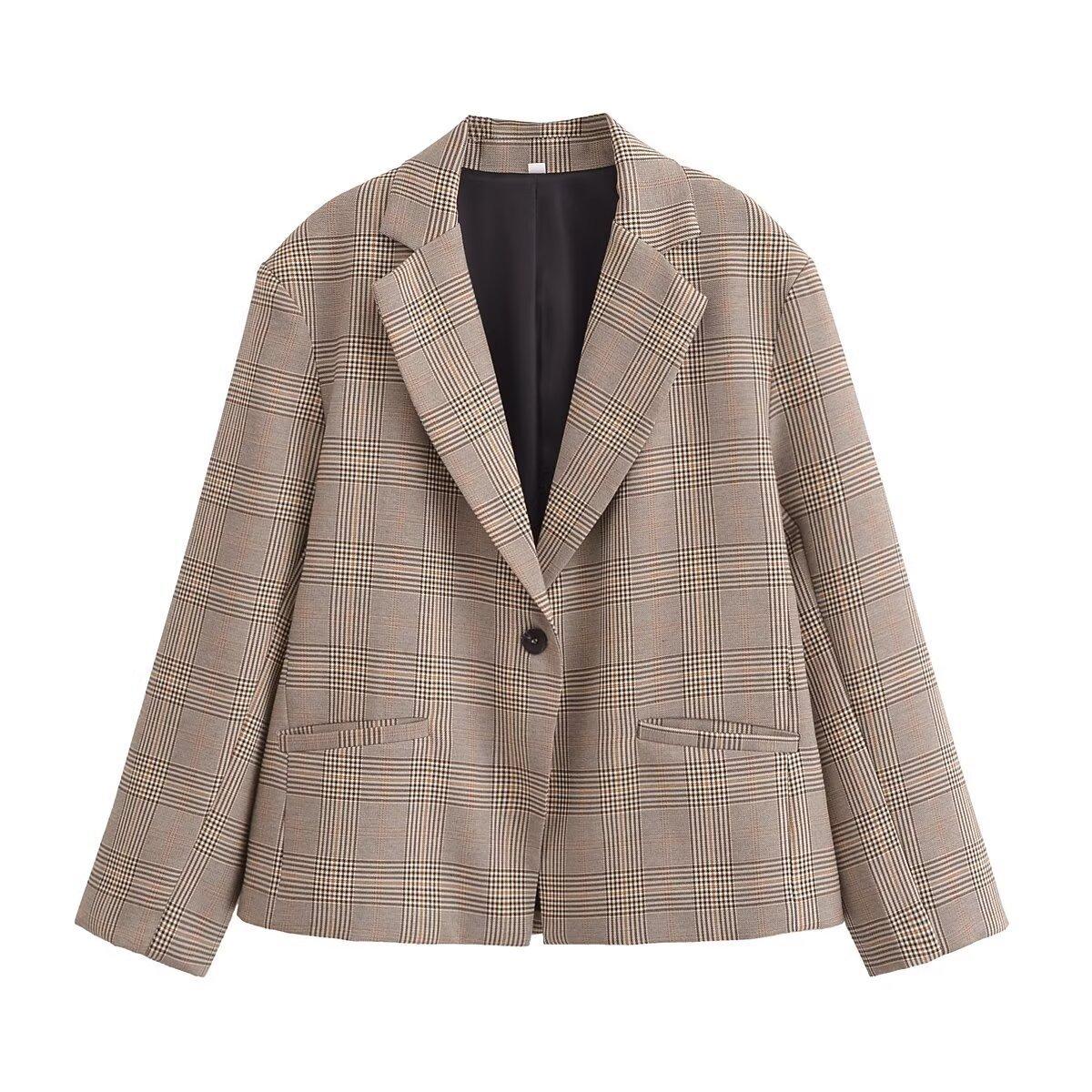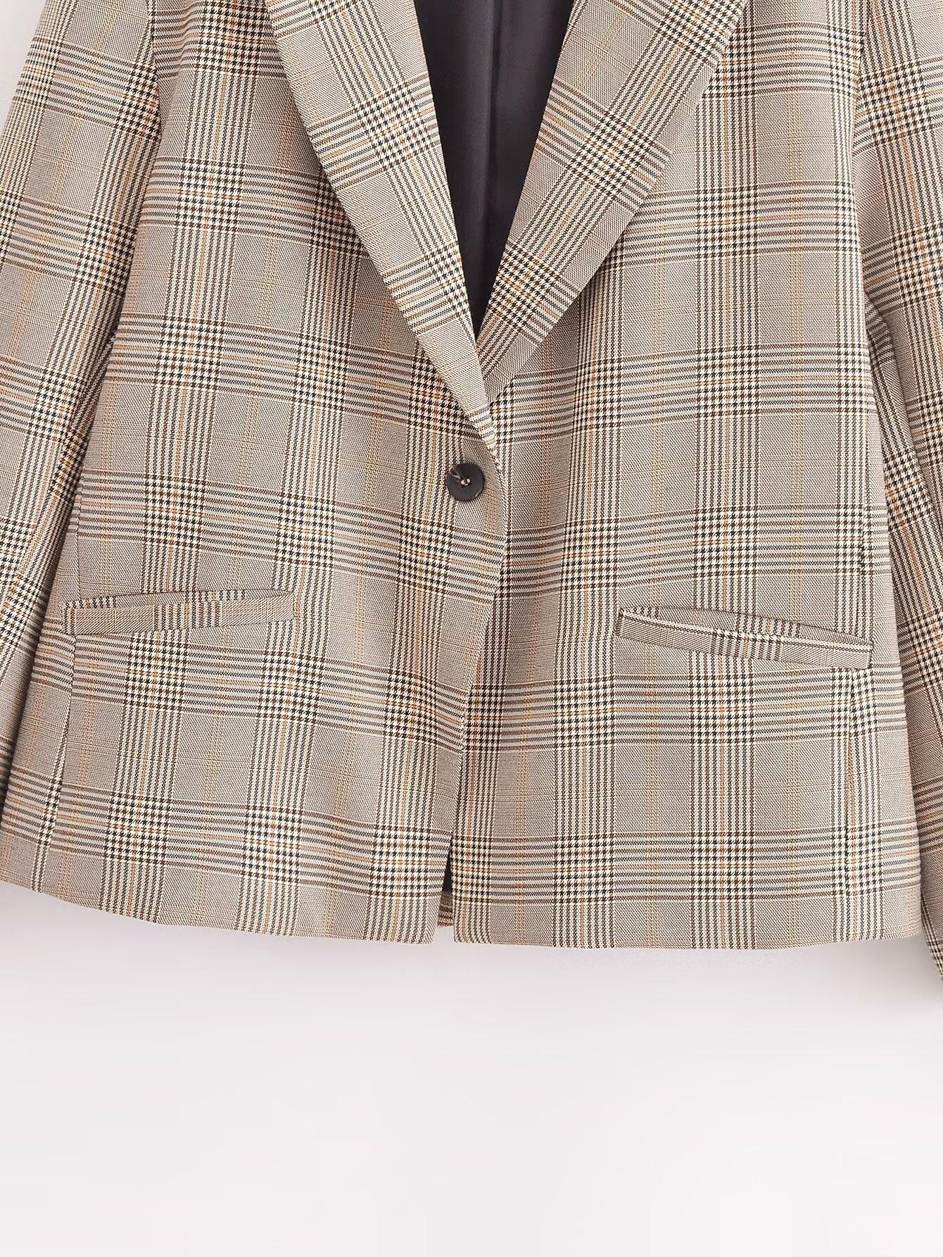2024 Invierno para Mujer Nuevo Estilo Europeo y Americano Moda Cuadros Blazer de Un Botón + Falda Corta