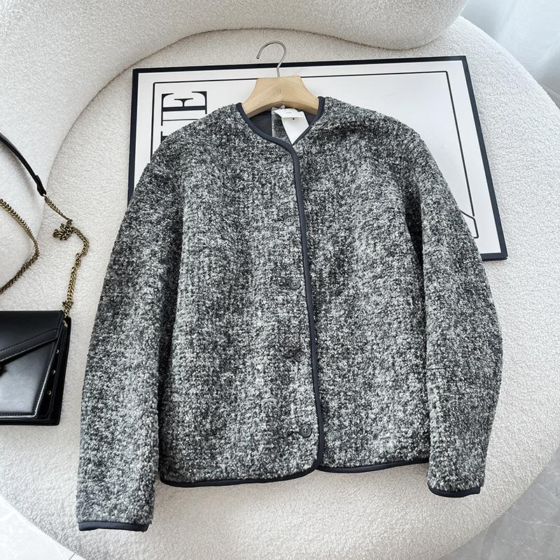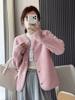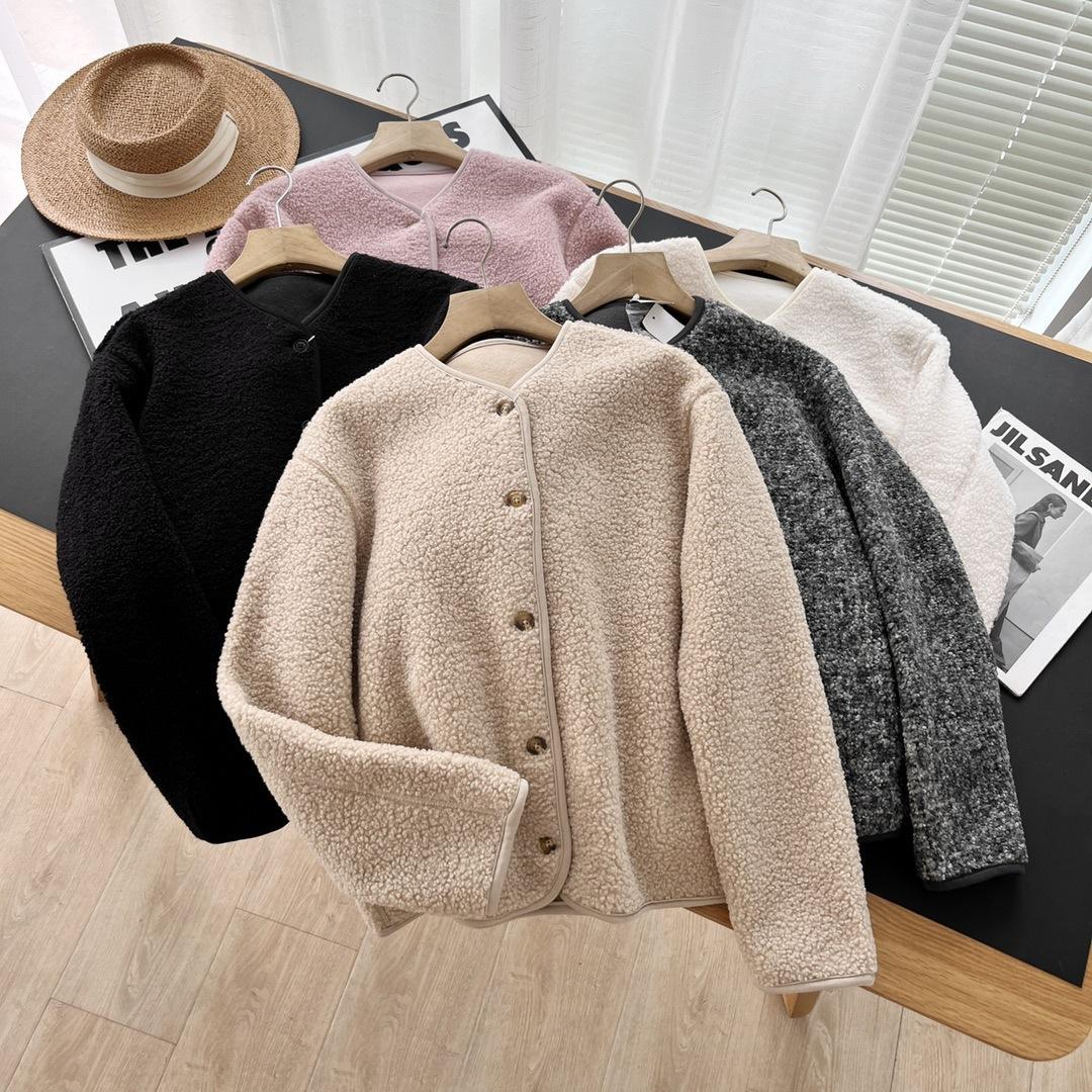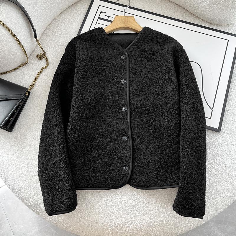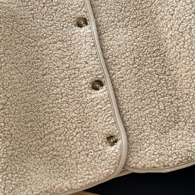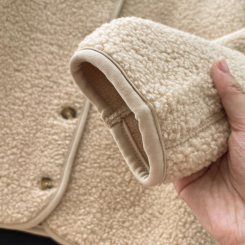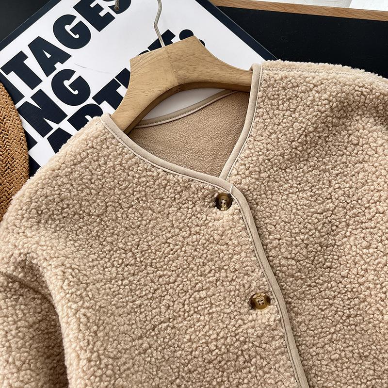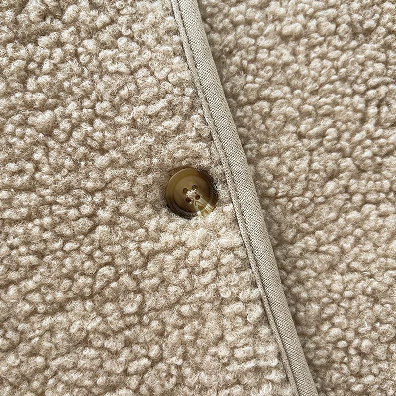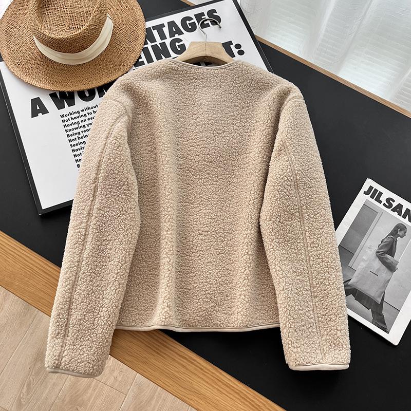 Cárdigan de Felpa Polar de Imitación de Borrego para Mujer Otoño e Invierno 2023 Cuello Redondo Manga Larga Chaqueta Cálida 461660